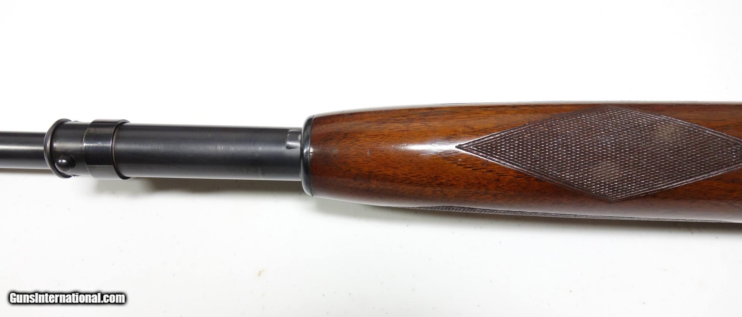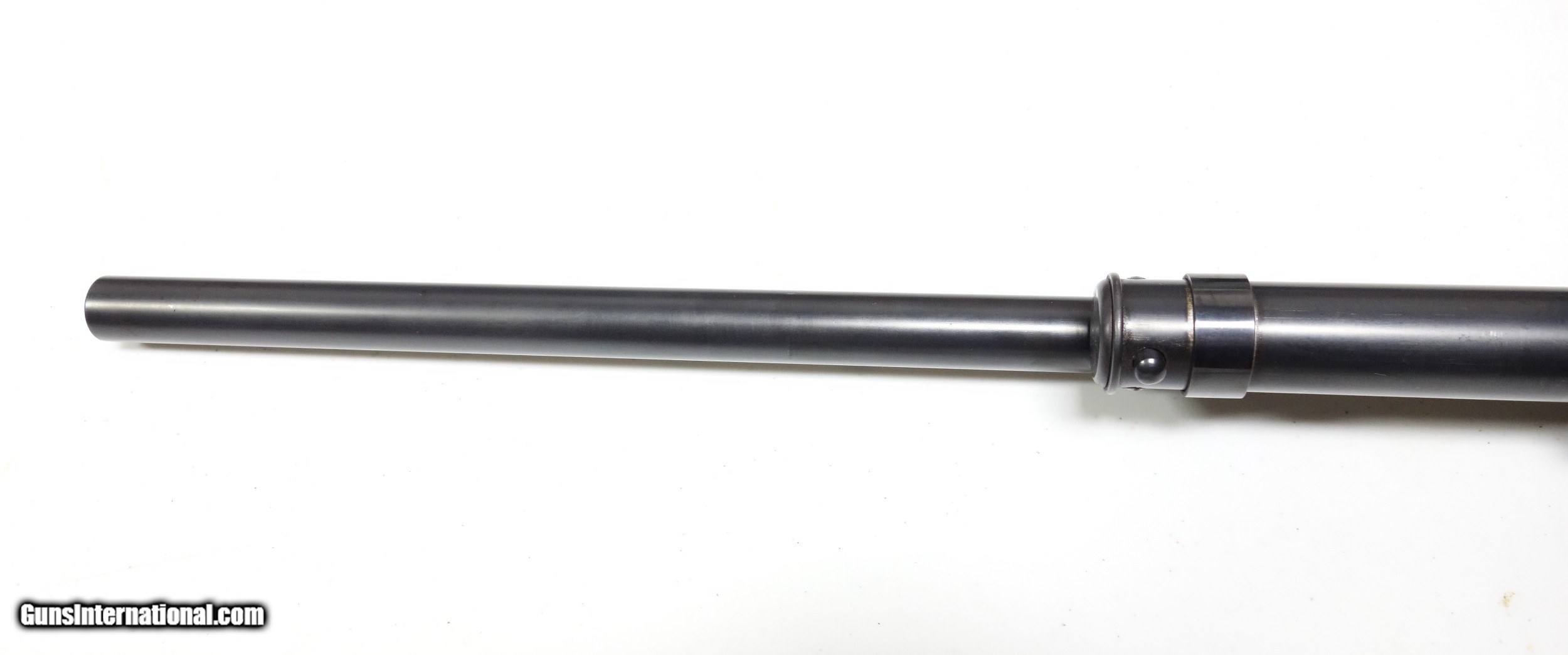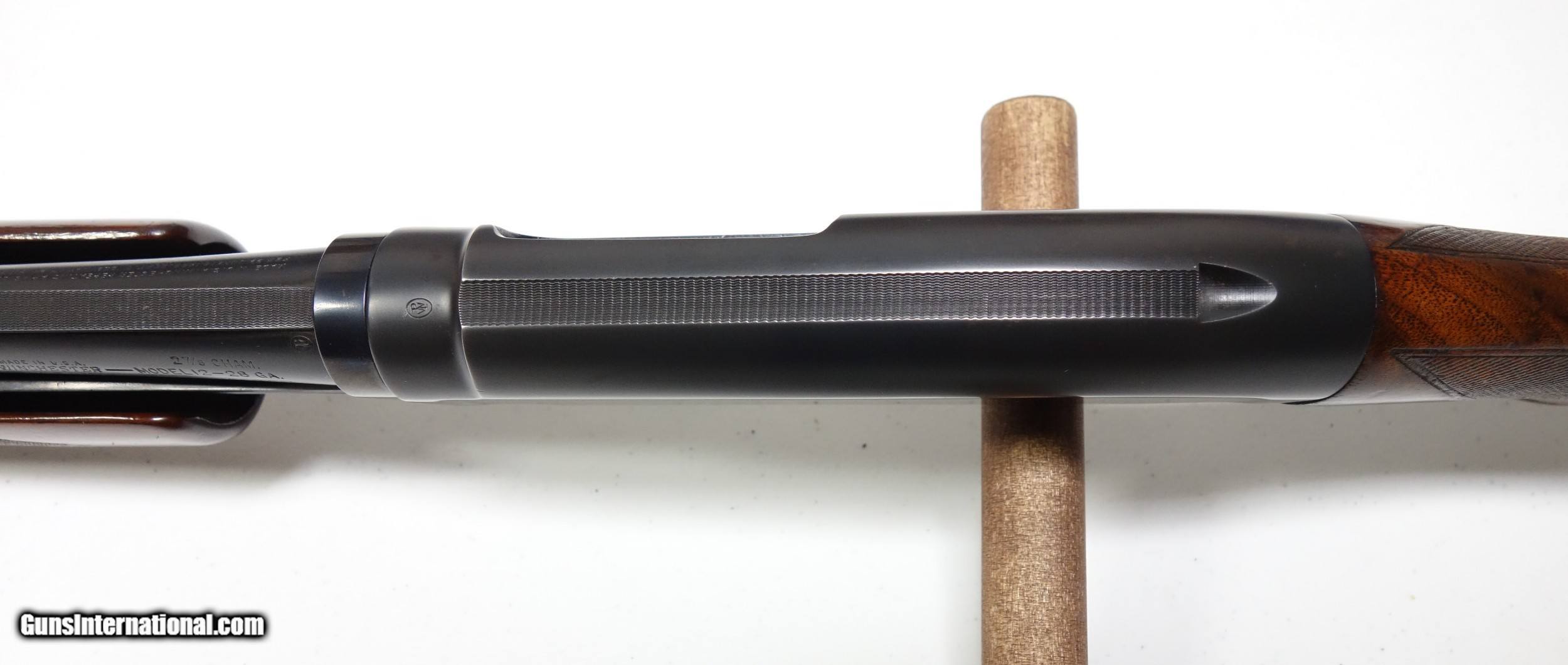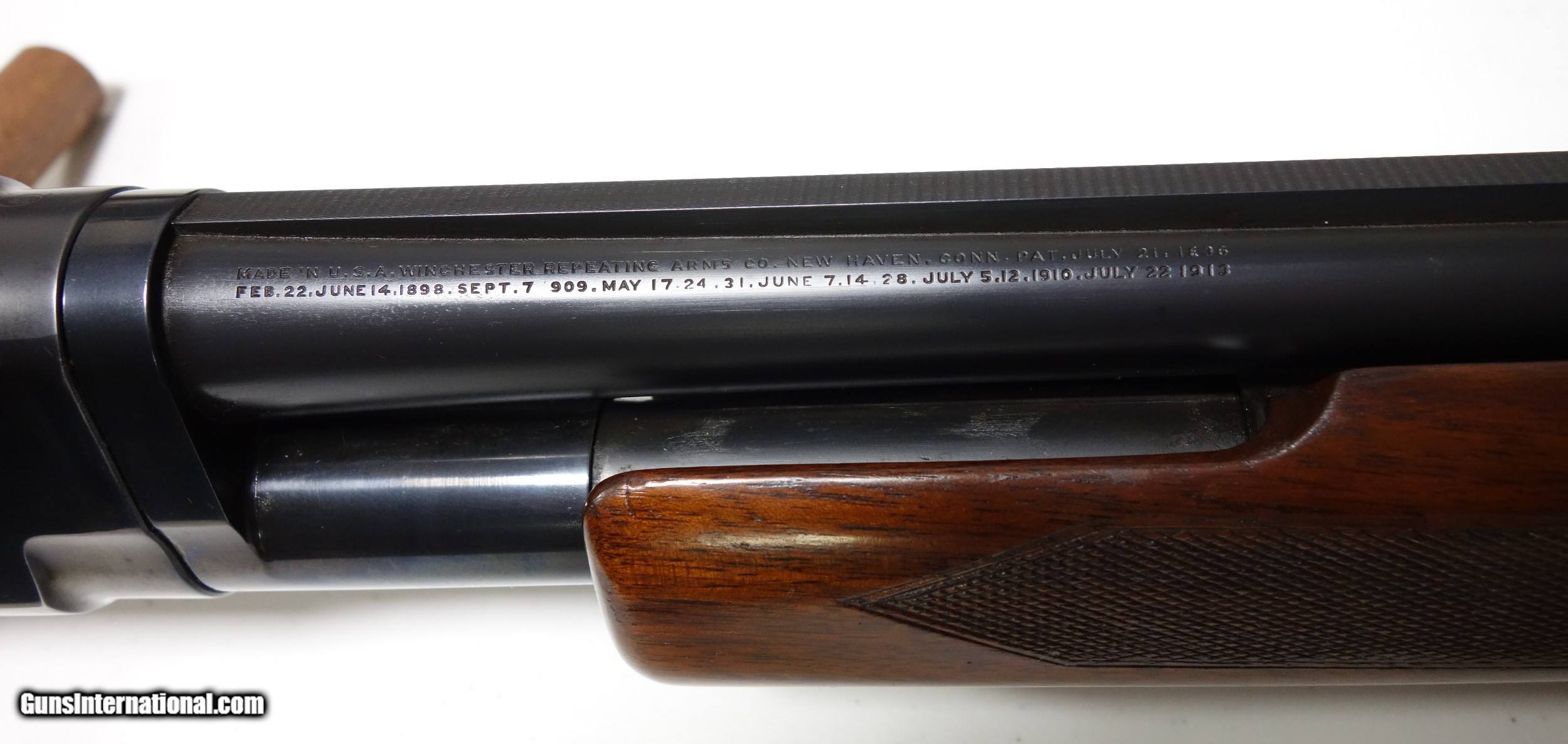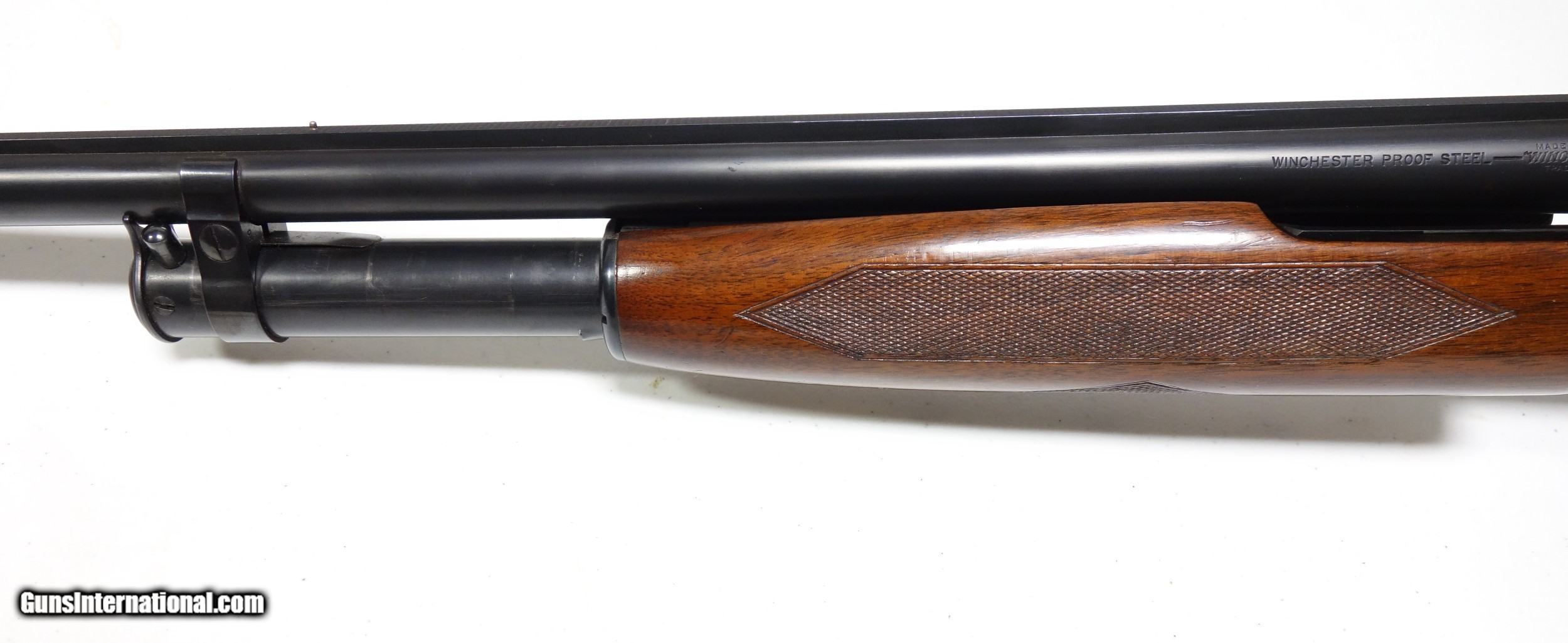 Description: Excellent condition Pre War Winchester Model 12 Skeet Grade in ultra rare 28 gauge! S/N 749269 made in 1937. 98% Blue, 97% Varnish. Most desirable 26" Solid Rib barrel choked SKEET. 2 7/8" chamber. Receiver is marked SKEET. Front magazine tube clamp is stamped "20" which occured frequently on original 28 gauges. I have carefully examined all of the internal and external components unique to genuine 28 gauge Model 12s, along with the various metal stampings and all appear positively correct and uncontrived. Special features of the 28 gauges included unique shell cut off (factory stamped "28"), high walled and differently shaped magazine follower, back of receiver stamped "28", bottom of magazine tube has different crimp than all other gauges. This shotgun is the real deal and one of the few chances you will ever have to add one of these to your collection! SOLD Curio/Relic: Yes |