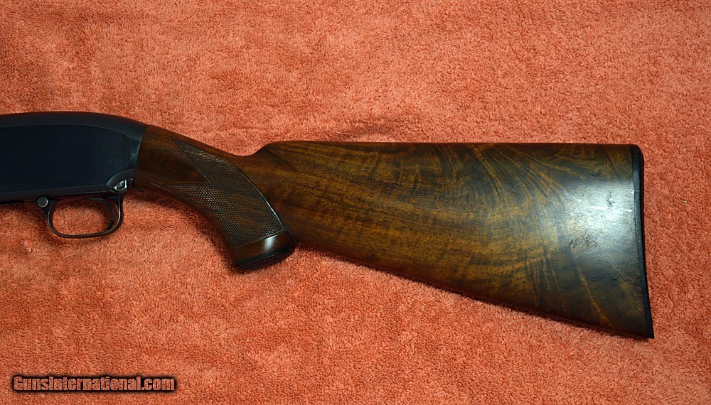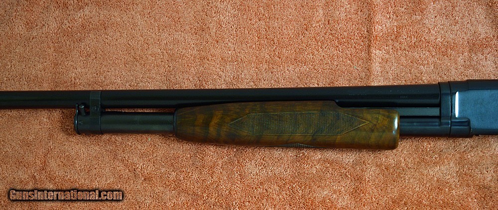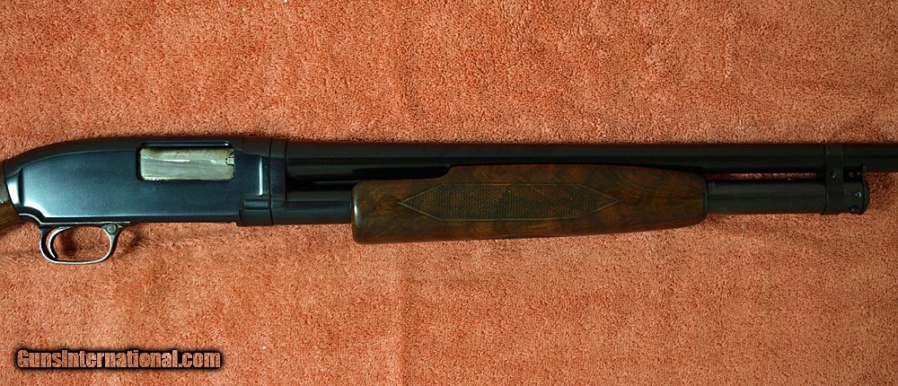 Description: Winchester Model 12. SN# 933191. Up for sale is a clean Winchester Model 12 built during the 1940s. This unique shotgun carries nicely figured stock and forearm with factory checkering and Winchester grip cap. The shotgun is equpped with the 30" barrel and choked FULL. Add 35.00 freight and insurance. No Calif buyers please. SOLD Curio/Relic: Yes |