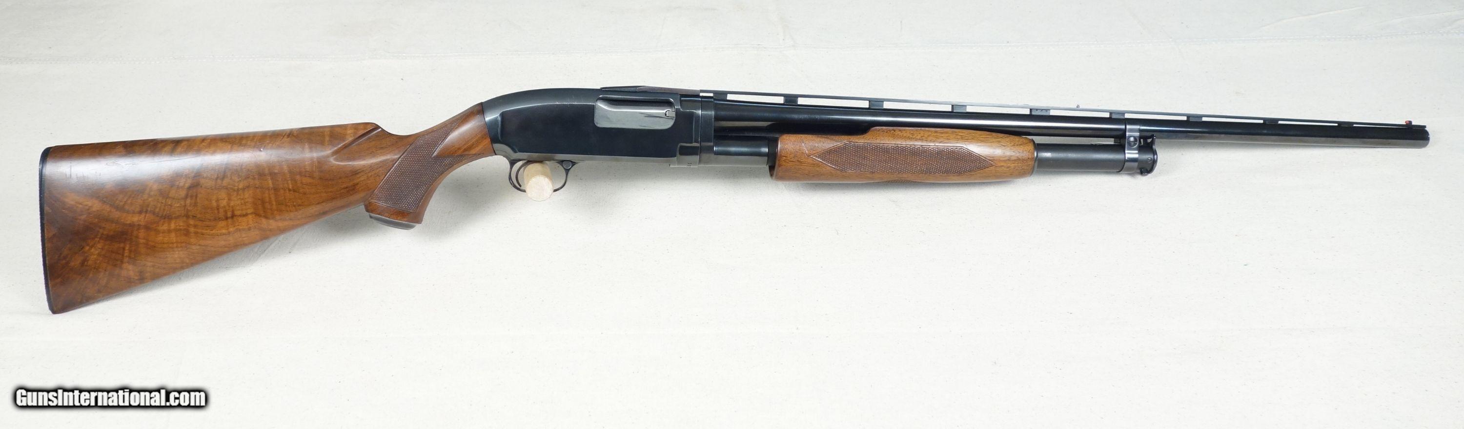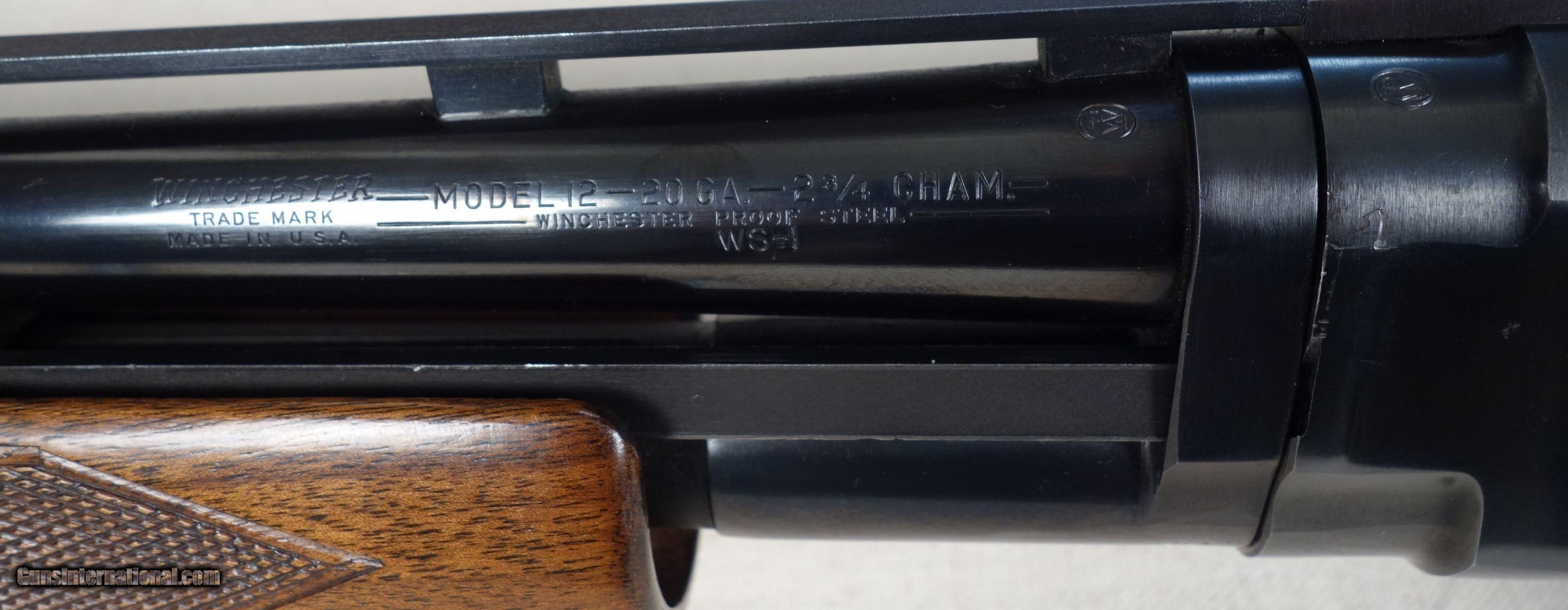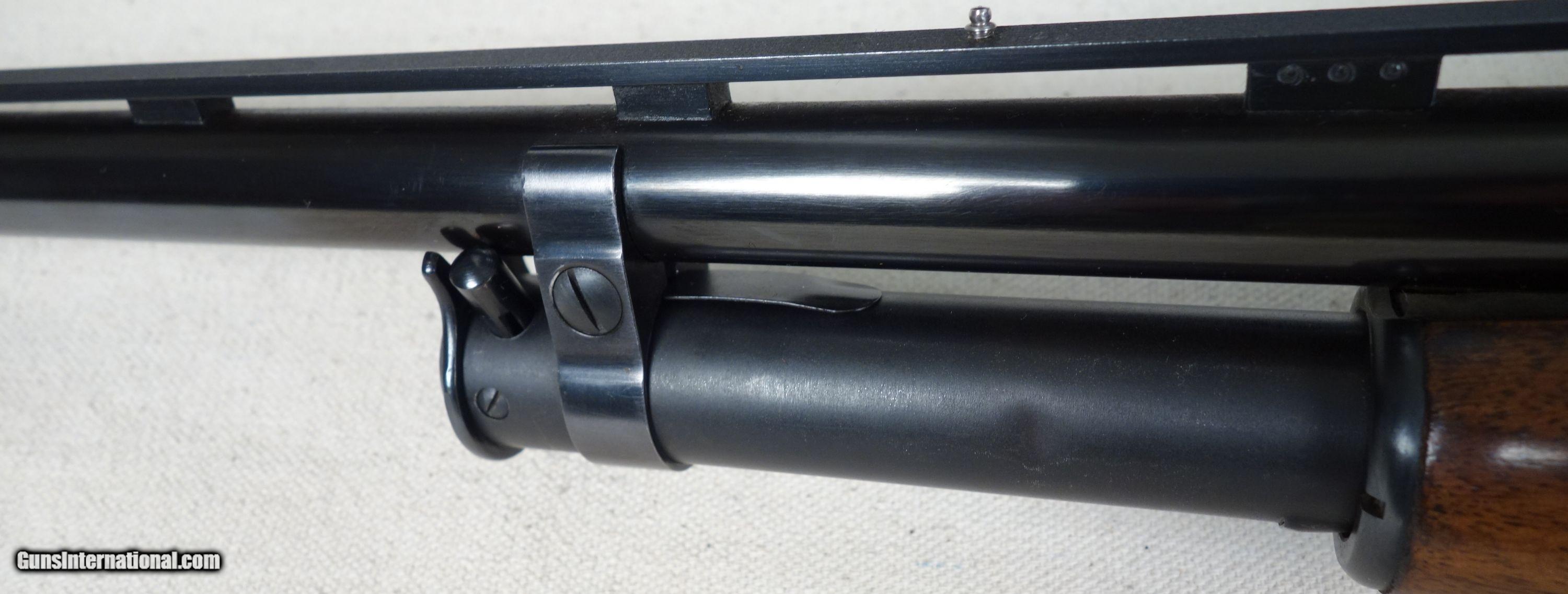 Description: Excellent Winchester Model 12 Skeet grade 20 gauge shotgun. 26" WS-1 choked barrel with factory 3 pin ventilated rib. 2 3/4 chamber. S/N 1919*** Mfg. 1961. 98% original finishes with only a few insignificant marks and a tiny dent in magazine tube. The wood figure is magnificent. Mechanics and bore are excellent. A gorgeous example of the world's greatest ever pump action shotgun. SOLD Curio/Relic: Yes |
