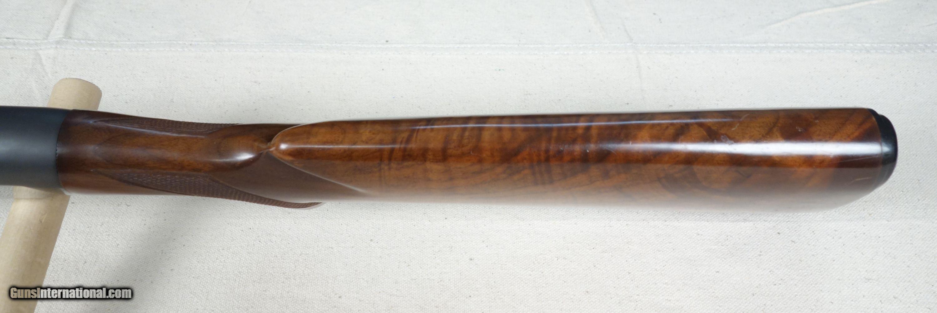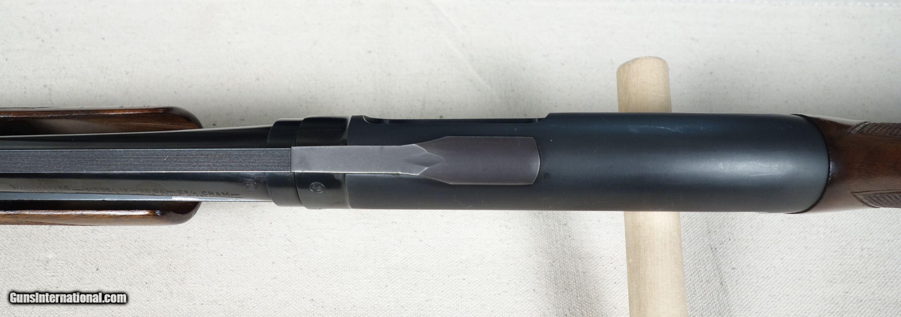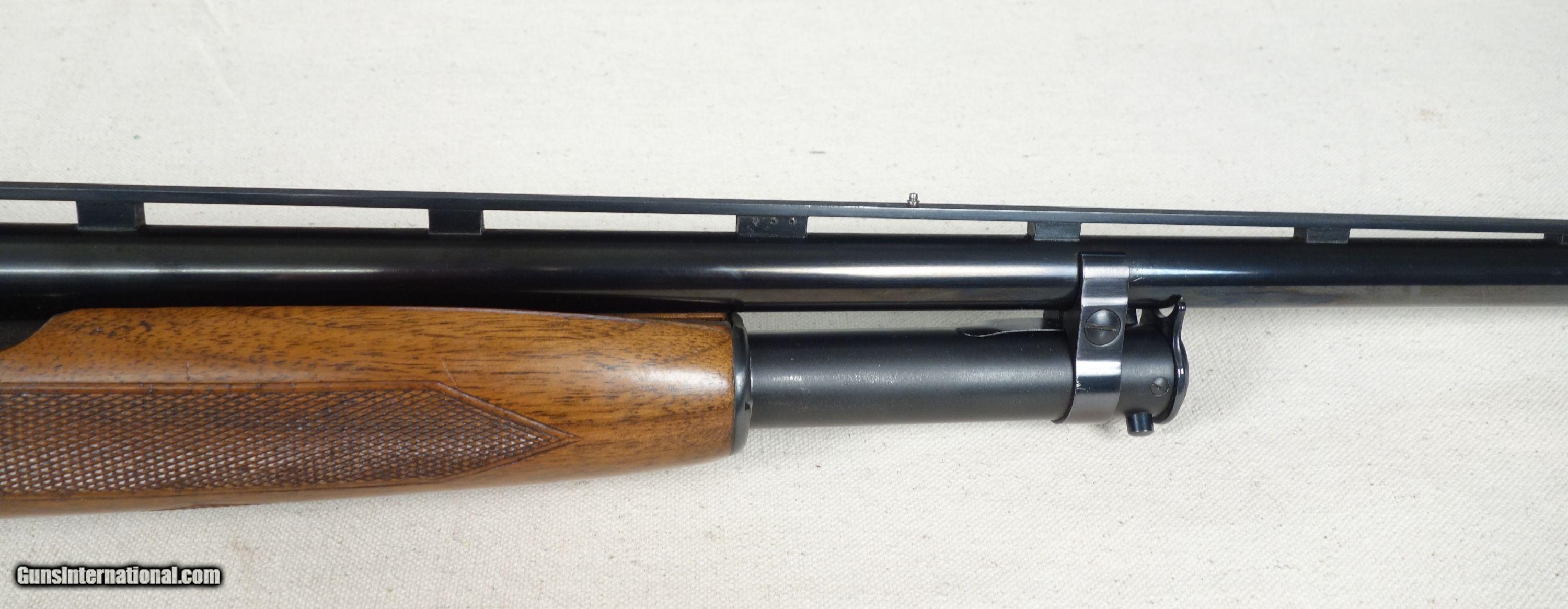 Description: Excellent Winchester Model 12 Skeet grade 20 gauge shotgun. 26" WS-1 choked barrel with factory 3 pin ventilated rib. 2 3/4 chamber. S/N 1919*** Mfg. 1961. 98% original finishes with only a few insignificant marks and a tiny dent in magazine tube. The wood figure is magnificent. Mechanics and bore are excellent. A gorgeous example of the world's greatest ever pump action shotgun. SOLD Curio/Relic: Yes |