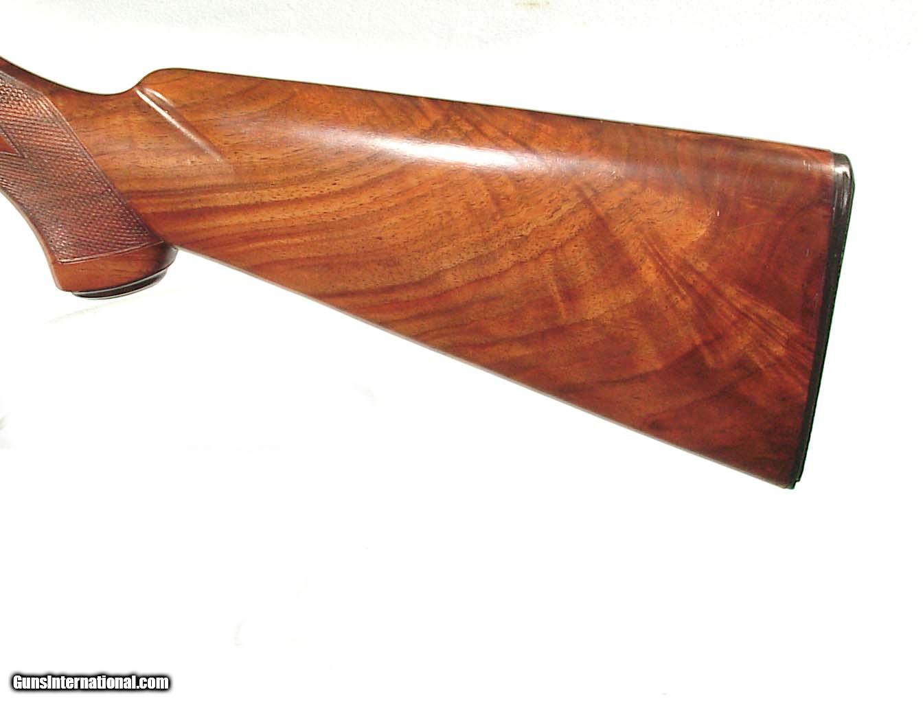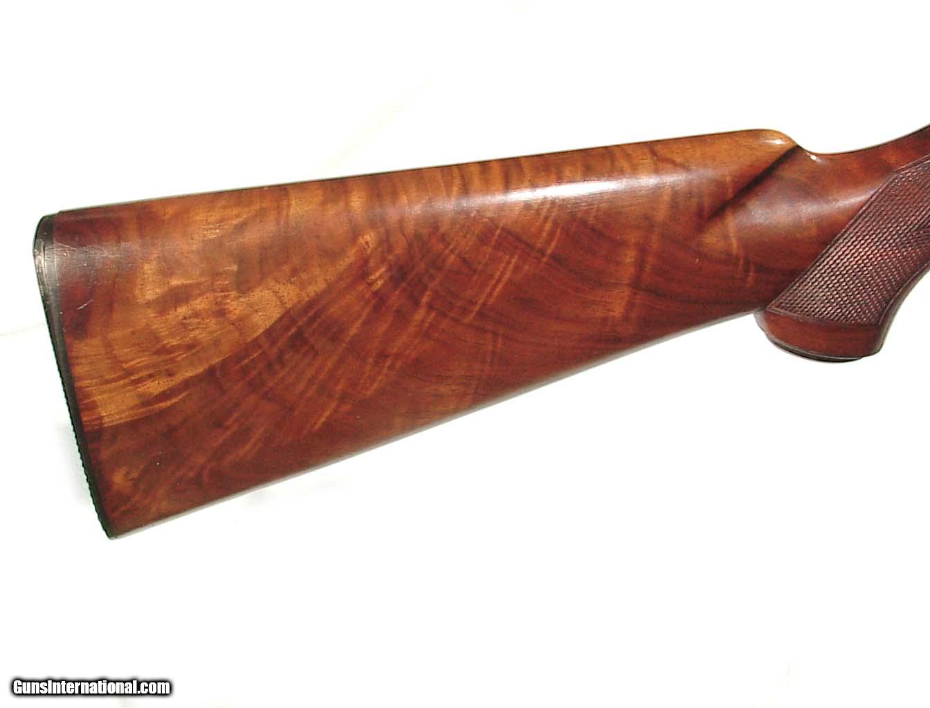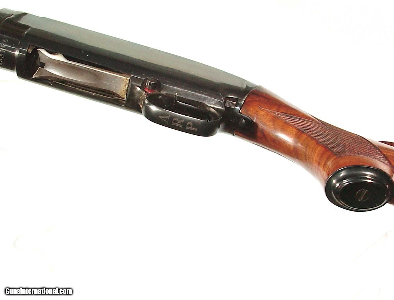 Description: 12 gauge, 26" vent rib barrel choked "skeet". Deluxe checkered forend and pistol grip buttstock measuring 14" to factory buttplate. In beautiful near new original condition retaining all of blue on the barrel and receiver. The trigger guard has the initials "ARP" engraved on the bow. Super deluxe wood and checkering. 1964 mfg. SOLD Curio/Relic: Yes |