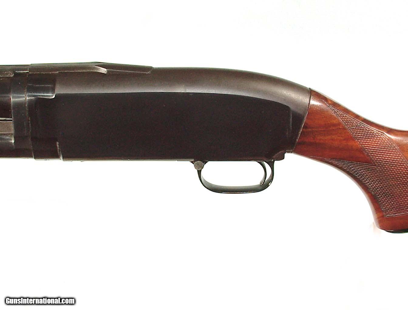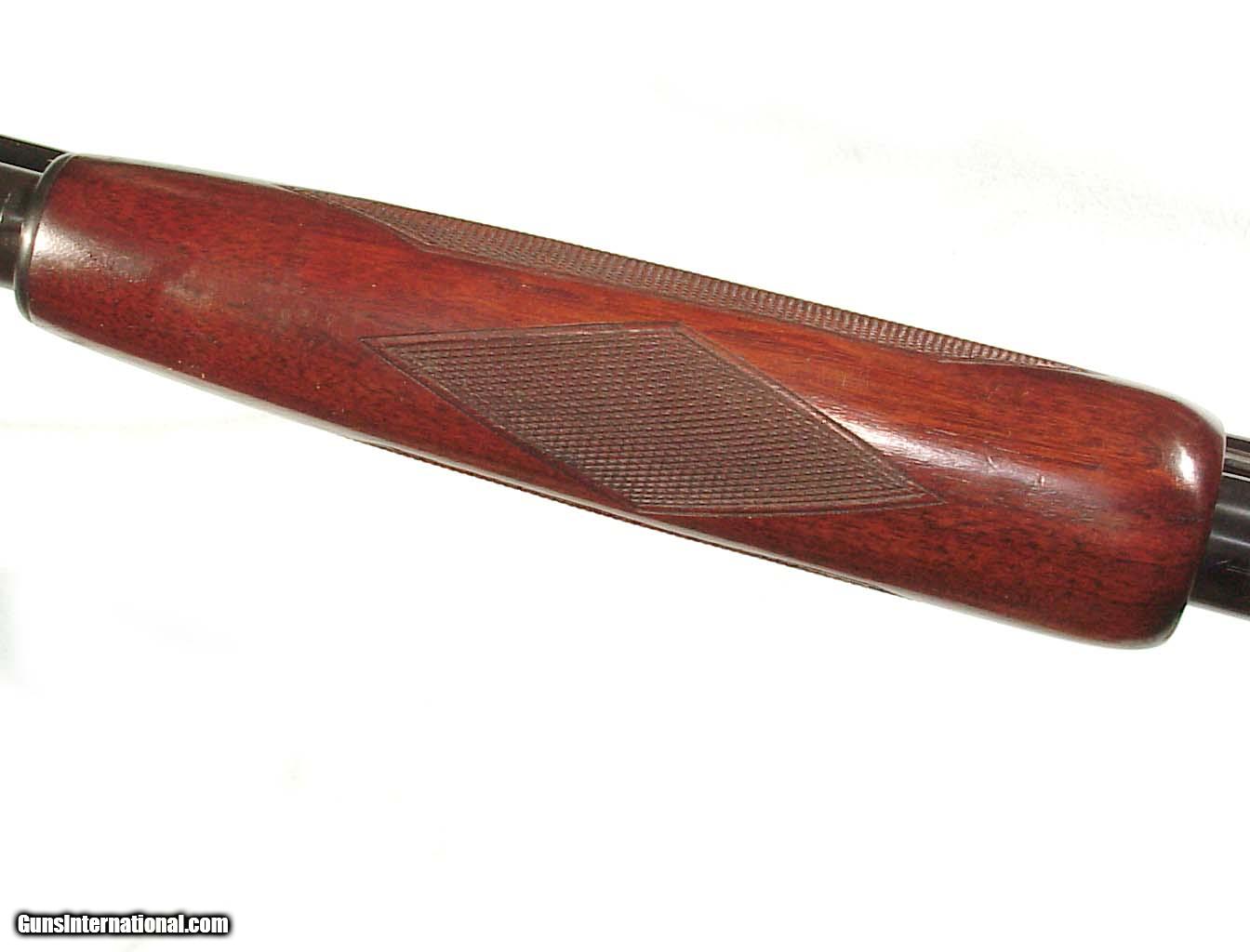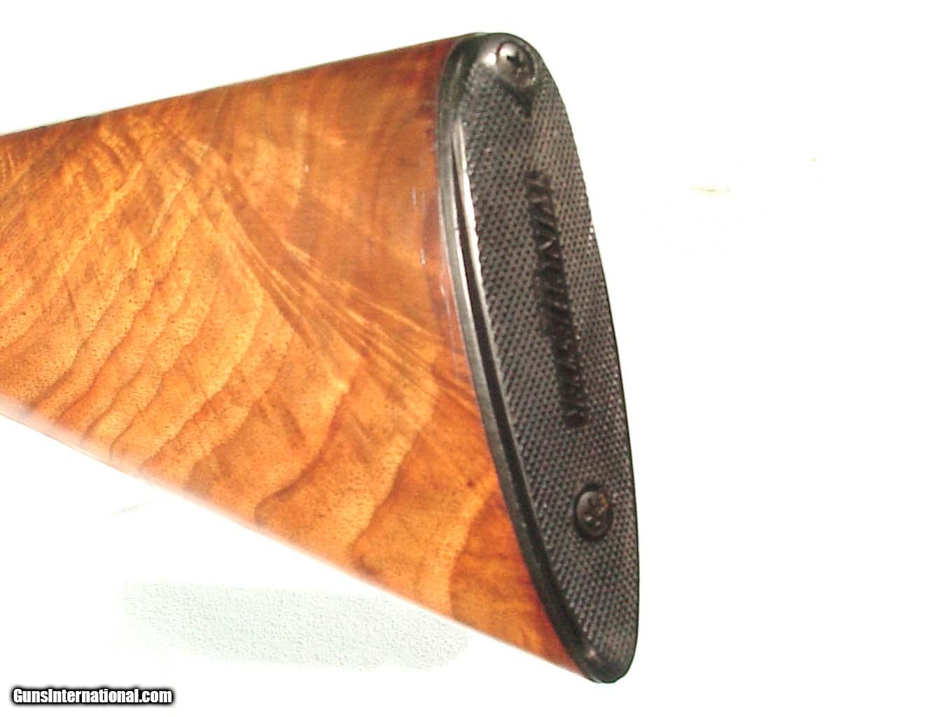 Description: 12 gauge, 26" vent rib barrel choked "skeet". Deluxe checkered forend and pistol grip buttstock measuring 14" to factory buttplate. In beautiful near new original condition retaining all of blue on the barrel and receiver. The trigger guard has the initials "ARP" engraved on the bow. Super deluxe wood and checkering. 1964 mfg. SOLD Curio/Relic: Yes |