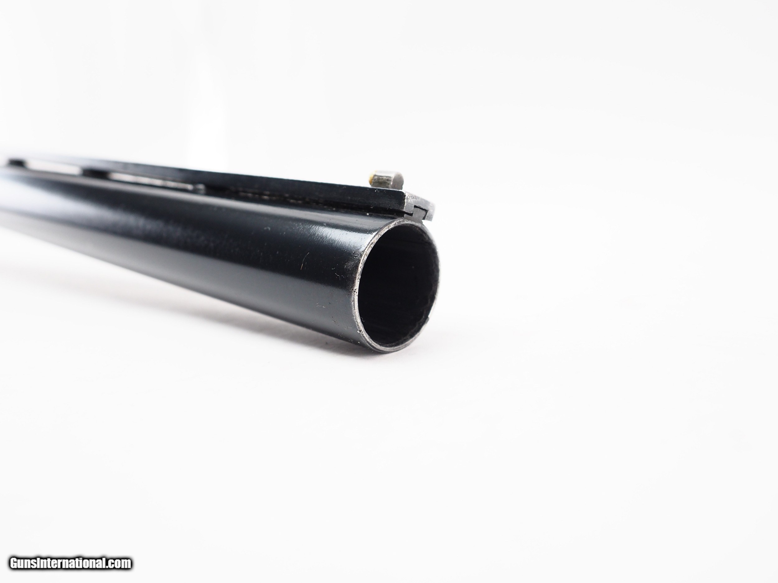 Description: Book #2199. Price: $1500.00 Very clean Model 12 with factory donut post rib. The wood is obviously not original, but the metal has its original finish and rollmarks which have not been messed with. Gun is in good mechanical condition. See photos for further details. Make: Winchester Model: 12 Hand: right handed Barrel length: 30" Barrel style: factory rib with donut posts Bore: .734" Constriction: .029" fixed choke (marked Imp. Mod.) LOP: 14.75" Case: none SOLD |