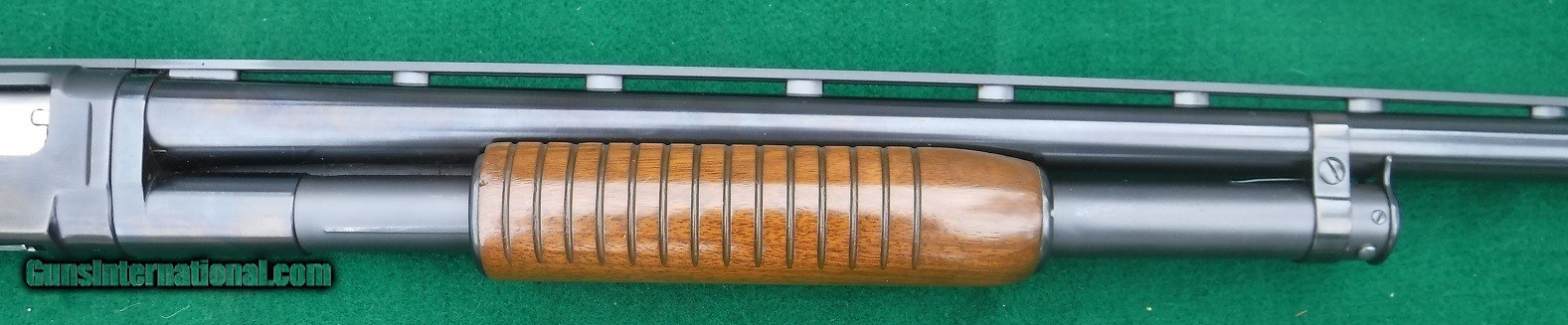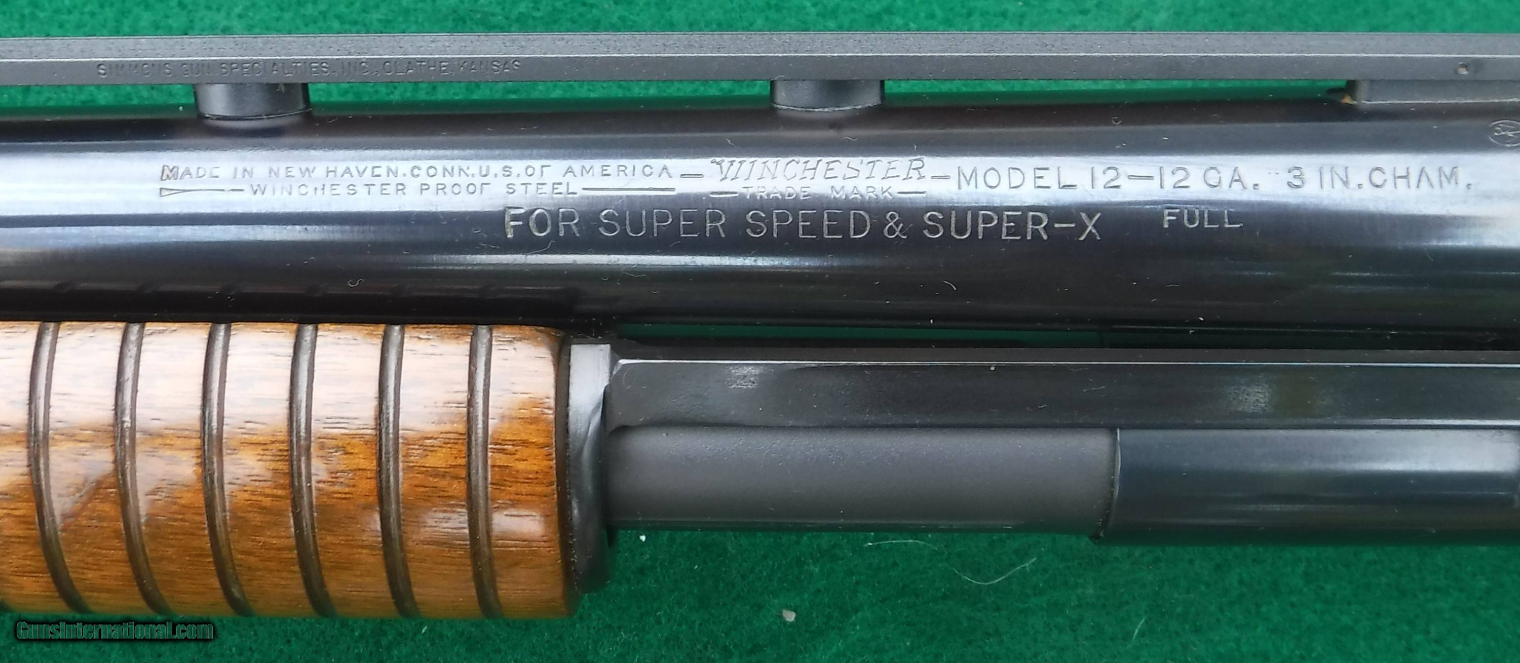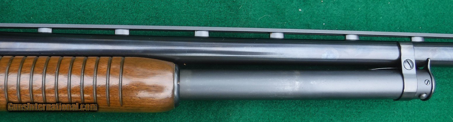 WINCHESTER MODEL 12 HEAVYDUCK - 12 GA. 32 INCH FULL CHOKE VENT RIB BARREL - AS NEW - NO BOX - 3" CHAMBER WITH PROPER SIMONS VENT RIB - WHITE BRADLEY BEAD FRONT SIGHT - FIELD STOCK L.O.P. 13 5/8" OVER RED WINCHESTER SOLID PAD - 14 RING FLAT BOTTOMFOREND - BLUE IS99.9% -GUN IS LIKE NEW- LOTS OF 30" BRLS .SEEN, BUT FEW IN 32".