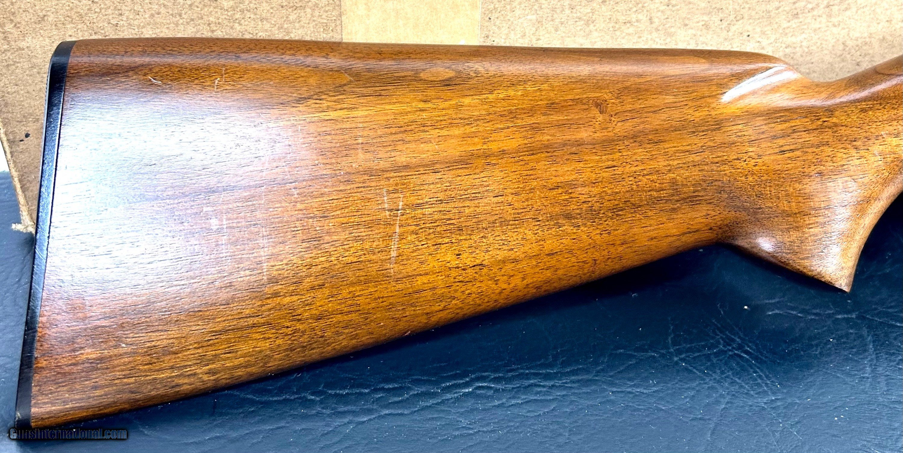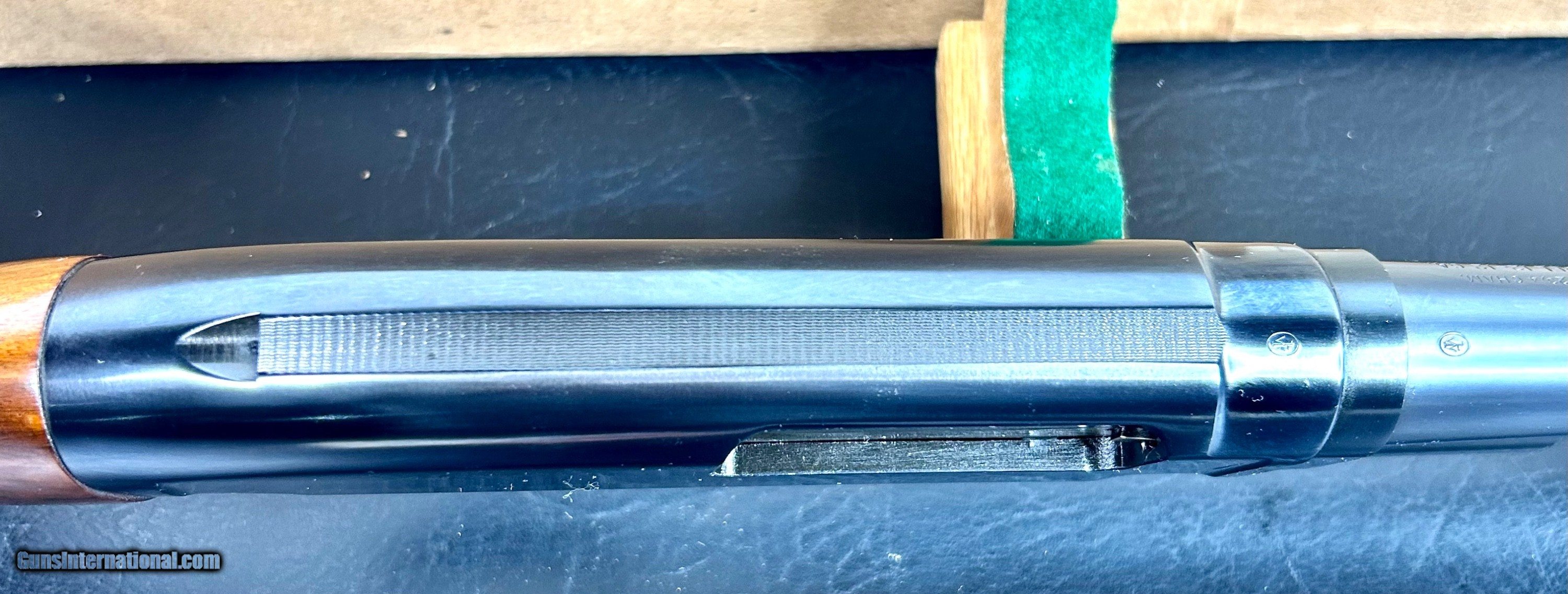 Description: *****SOLD****Up for sale I have a very rare Winchester Model 12 riot gun that is NIB. This little shotgun is untouched 100% original and has the beautiful dark pre war bluing that is 100%. The wood is 99.9% with a couple of light, light handling marks to the butt stock on the right side from just being in the box (it's pictured). There is factory cosmoline still on the gun in some places, but mainly the bolt and the loading gate. It has a factory 20" CYL bore barrel. This little gun was made in 1942 and has remained unused since. This is a very rare gun to find in this condition so don't let it get away. Please don't hesitate to ask any questions or request anymore photos. Shipping and ins will be $99 and to FFL or C and R holder only. SOLD |