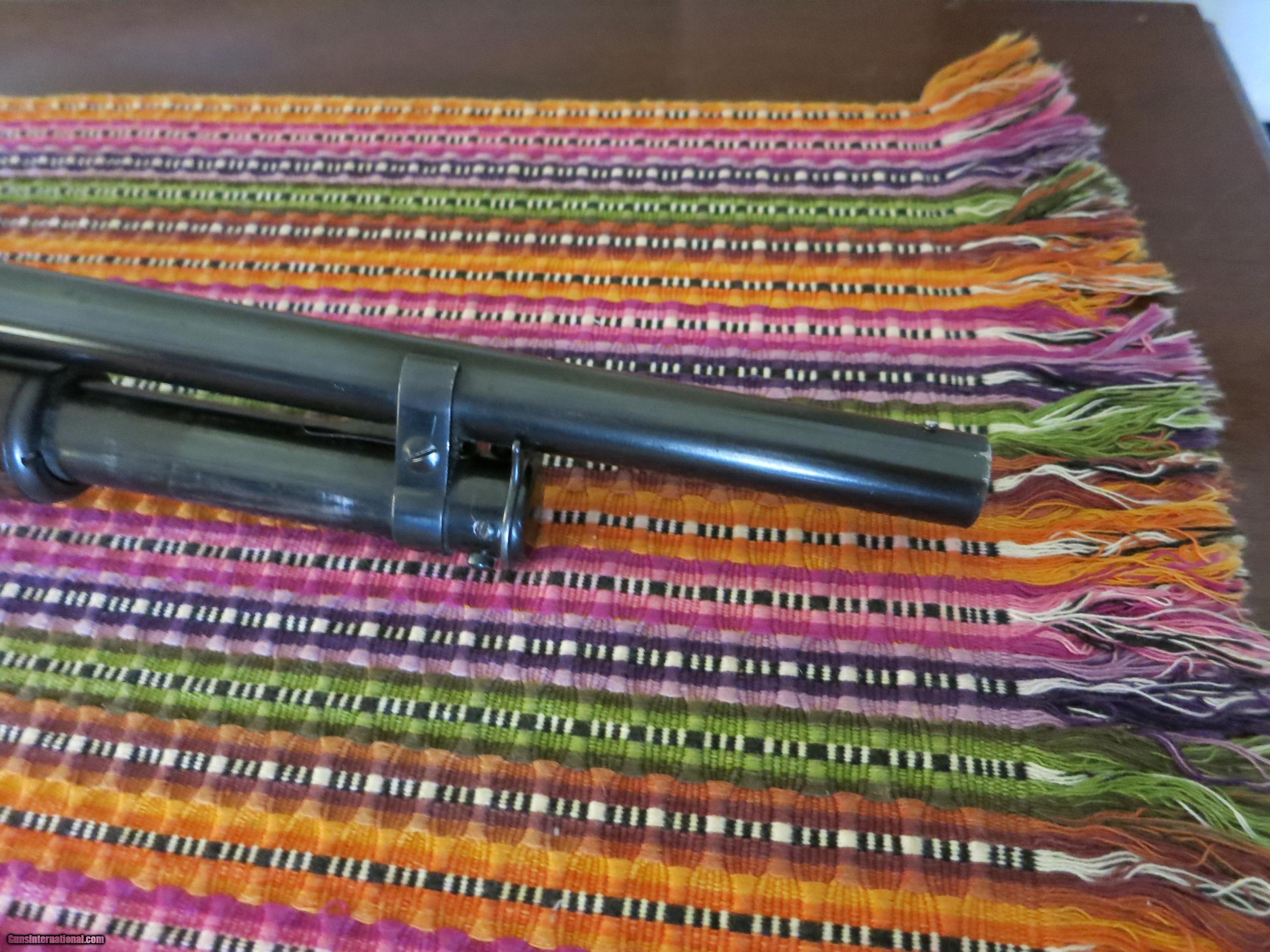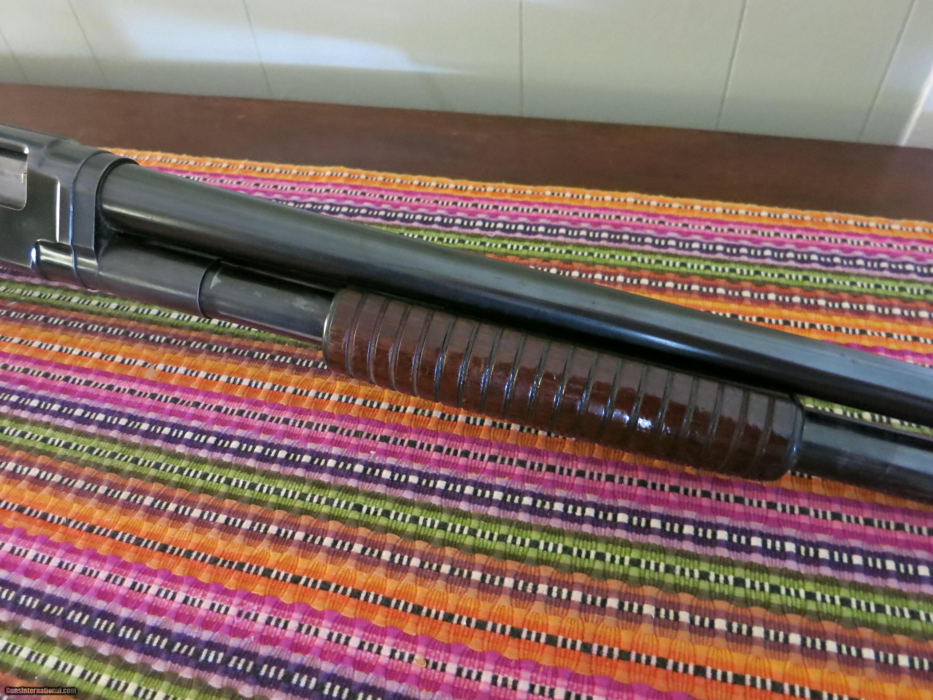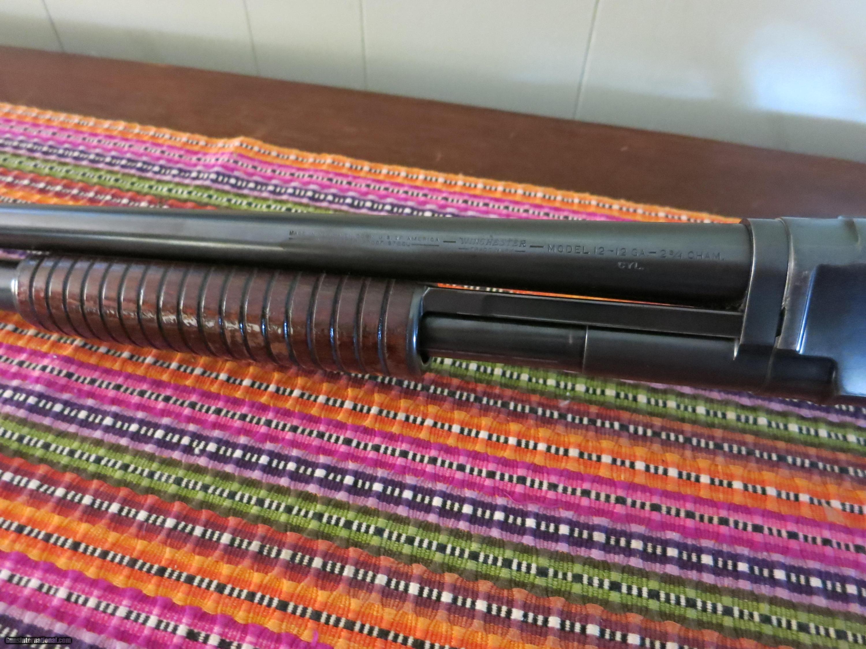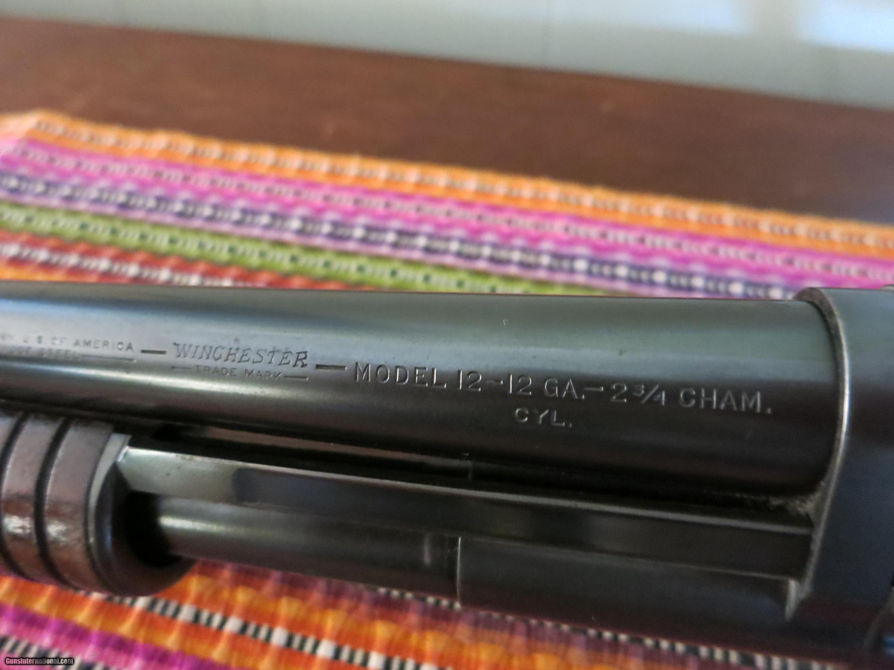 Description: "SALE PENDING" WINCHESTER MODEL 12 RIOT GUN. 12 ga. WITH CYL. CHOKE. VERY GOOD CONDITION. BLUE VERY GOOD. MINOR WEAR, MOSTLY ON SLIDE. NO CRACKS OR DINGS IN WOOD. WOOD HAS HAD A LIGHT COAT OF VARNISH PUT ON IT. STAMP (WB) IS STILL VERY READABLE ON STOCK. NICE & HARD TO FIND WIN. MODEL 12 RIOT. CALL OR E-MAIL WITH QUESTIONS. SOLD |