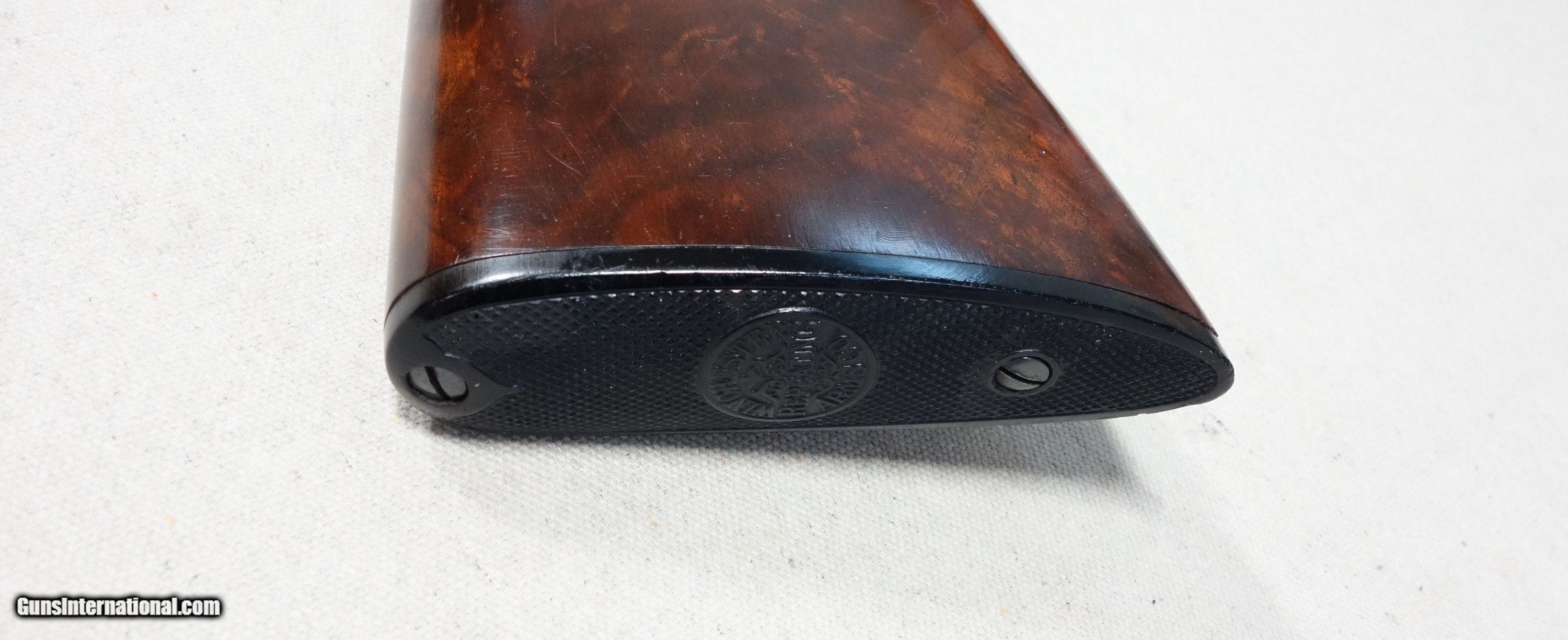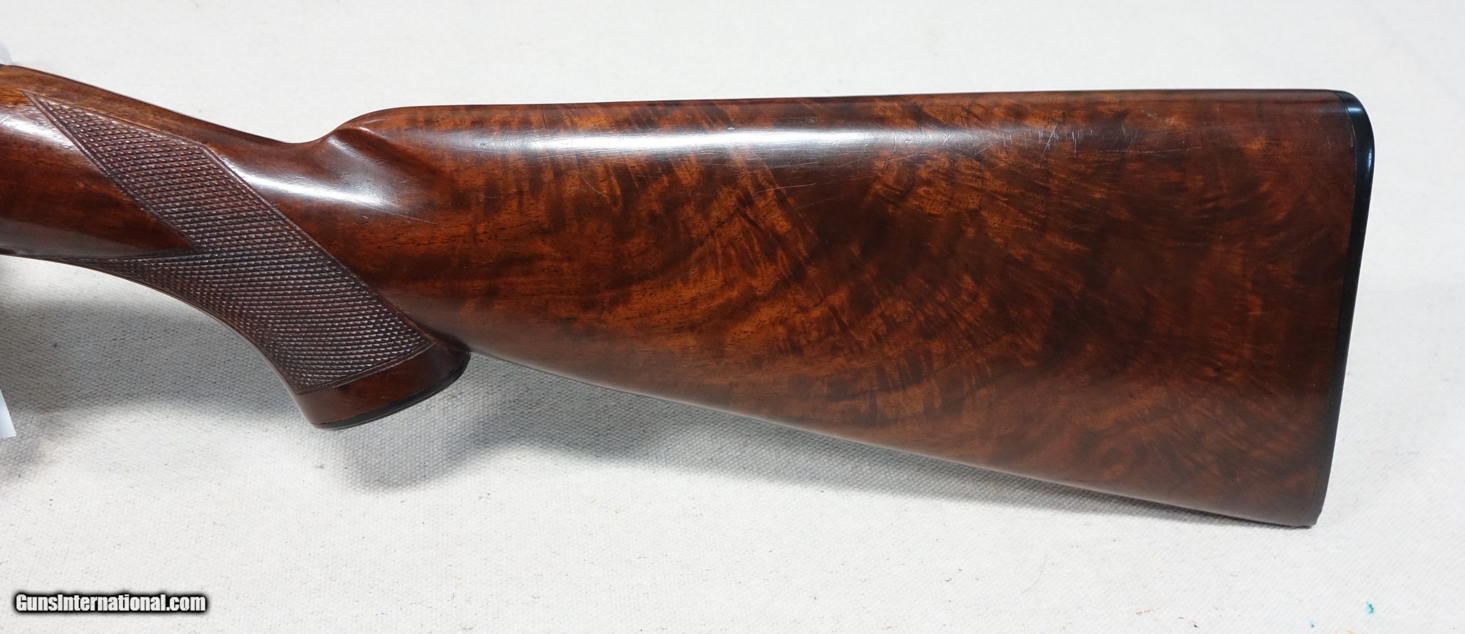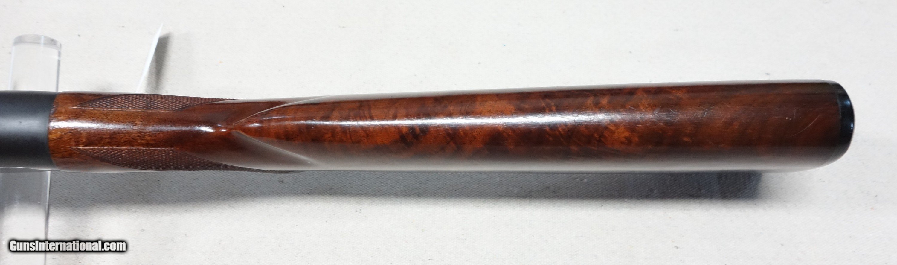 Description: ***SALE PENDING*** Perhaps the most popular and collectible of all legitimate Model 12s produced in terms of vintage, configuration and gauge, along with being a factory two barrel set which practically never surfaces. This is an absolutely stunning Model 12 SKEET grade in the scarce and highly desirable 20 gauge. This is also a matching S/N two barrel set, with both front halves wearing matted SOLID RIB BARRELS. S/N 1149378 made during the golden age of gunmaking shortly after WWII in 1948. The currently installed barrel assembly is a 26" WS-1 choke with solid rib and mirror bore. The 2nd barrel assembly is a 28" Modified choke, also with a solid rib and mirror bore. Note that this 2nd barrel assembly was ordered with a standard ribbed forearm, probably for planned field use. Overall condition is fantastic, showing 98%+ original finishes throughout on both wood and metal. There is a spot of minor surface oxidation along one of the receiver's high edges, but otherwise nothing worth noting. The wood grain, especially through the buttstock, is truly impressive with some beautiful flame figure not frequently seen on these earlier guns compared to some of the later period Skeet grades with vent ribs. This is about as good as it gets in the "real" M12 world with very few exceptions, some of those being quite suspect to say the least. Please add $100 for expedited and fully insured shipping from Alaska. SOLD Curio/Relic: Yes |