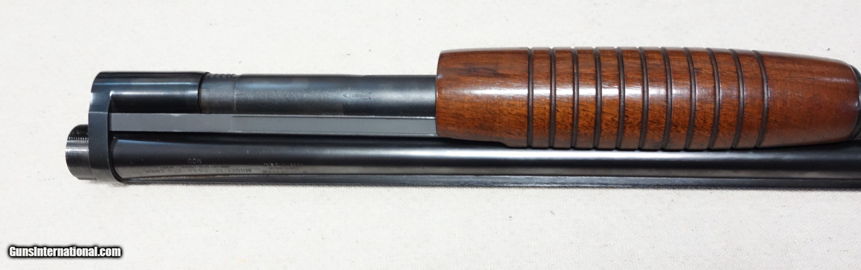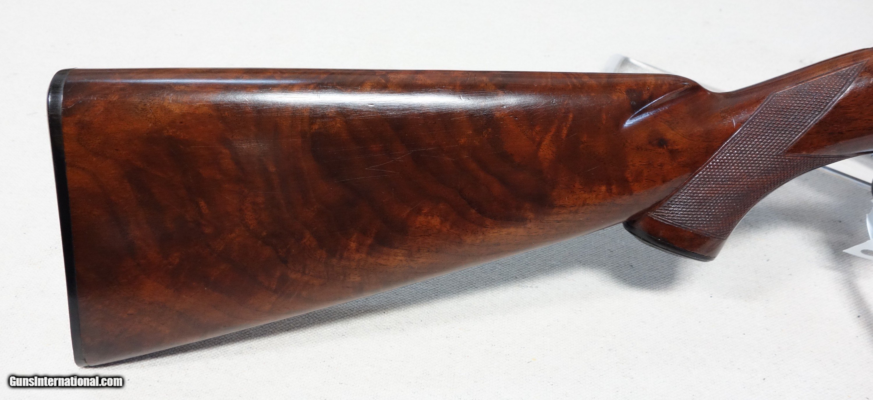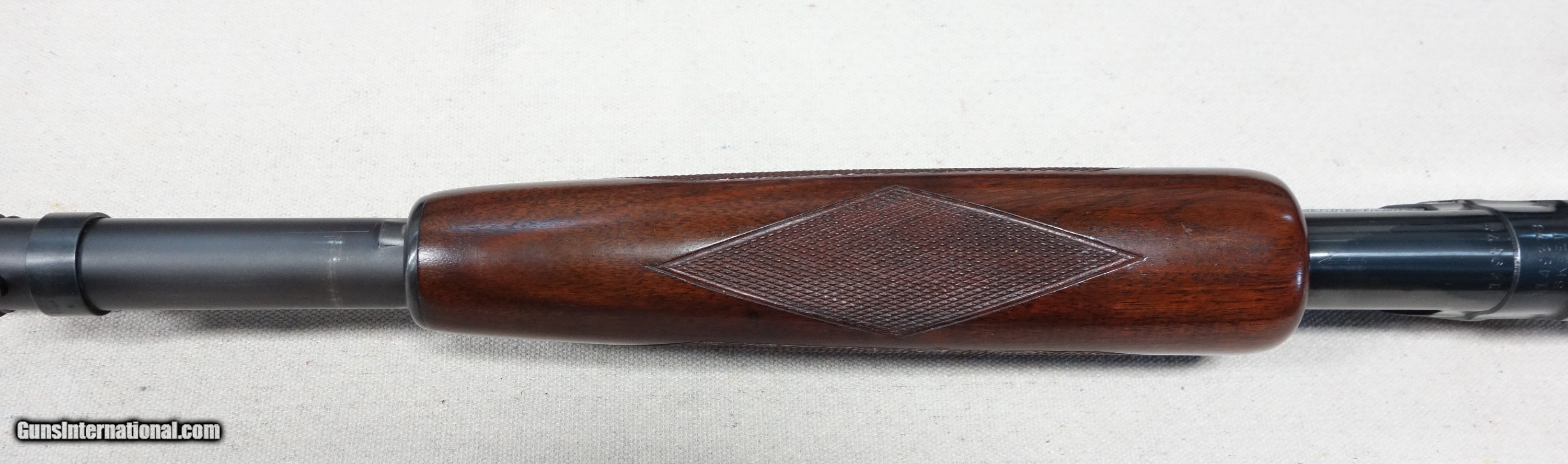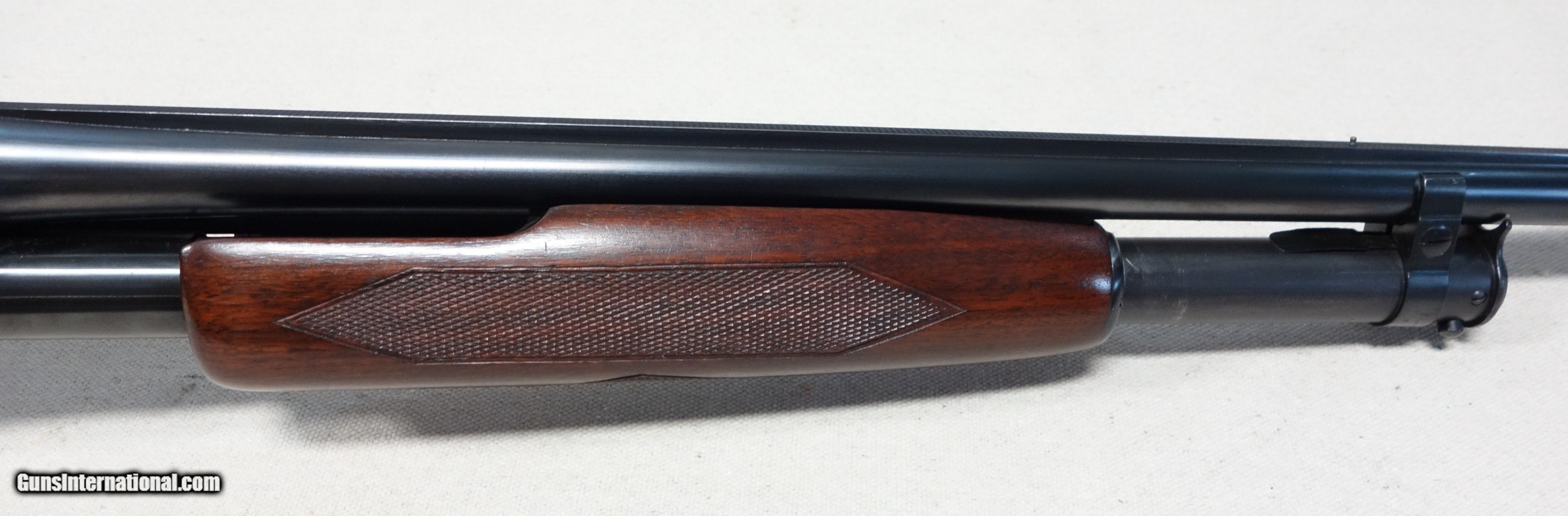 Description: ***SALE PENDING*** Perhaps the most popular and collectible of all legitimate Model 12s produced in terms of vintage, configuration and gauge, along with being a factory two barrel set which practically never surfaces. This is an absolutely stunning Model 12 SKEET grade in the scarce and highly desirable 20 gauge. This is also a matching S/N two barrel set, with both front halves wearing matted SOLID RIB BARRELS. S/N 1149378 made during the golden age of gunmaking shortly after WWII in 1948. The currently installed barrel assembly is a 26" WS-1 choke with solid rib and mirror bore. The 2nd barrel assembly is a 28" Modified choke, also with a solid rib and mirror bore. Note that this 2nd barrel assembly was ordered with a standard ribbed forearm, probably for planned field use. Overall condition is fantastic, showing 98%+ original finishes throughout on both wood and metal. There is a spot of minor surface oxidation along one of the receiver's high edges, but otherwise nothing worth noting. The wood grain, especially through the buttstock, is truly impressive with some beautiful flame figure not frequently seen on these earlier guns compared to some of the later period Skeet grades with vent ribs. This is about as good as it gets in the "real" M12 world with very few exceptions, some of those being quite suspect to say the least. Please add $100 for expedited and fully insured shipping from Alaska. SOLD Curio/Relic: Yes |