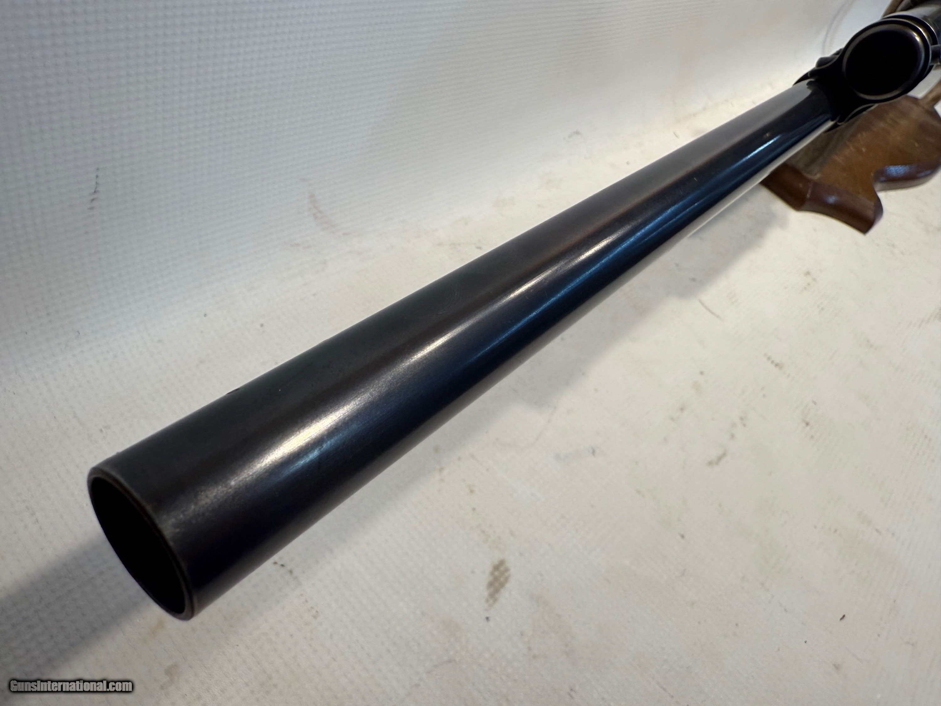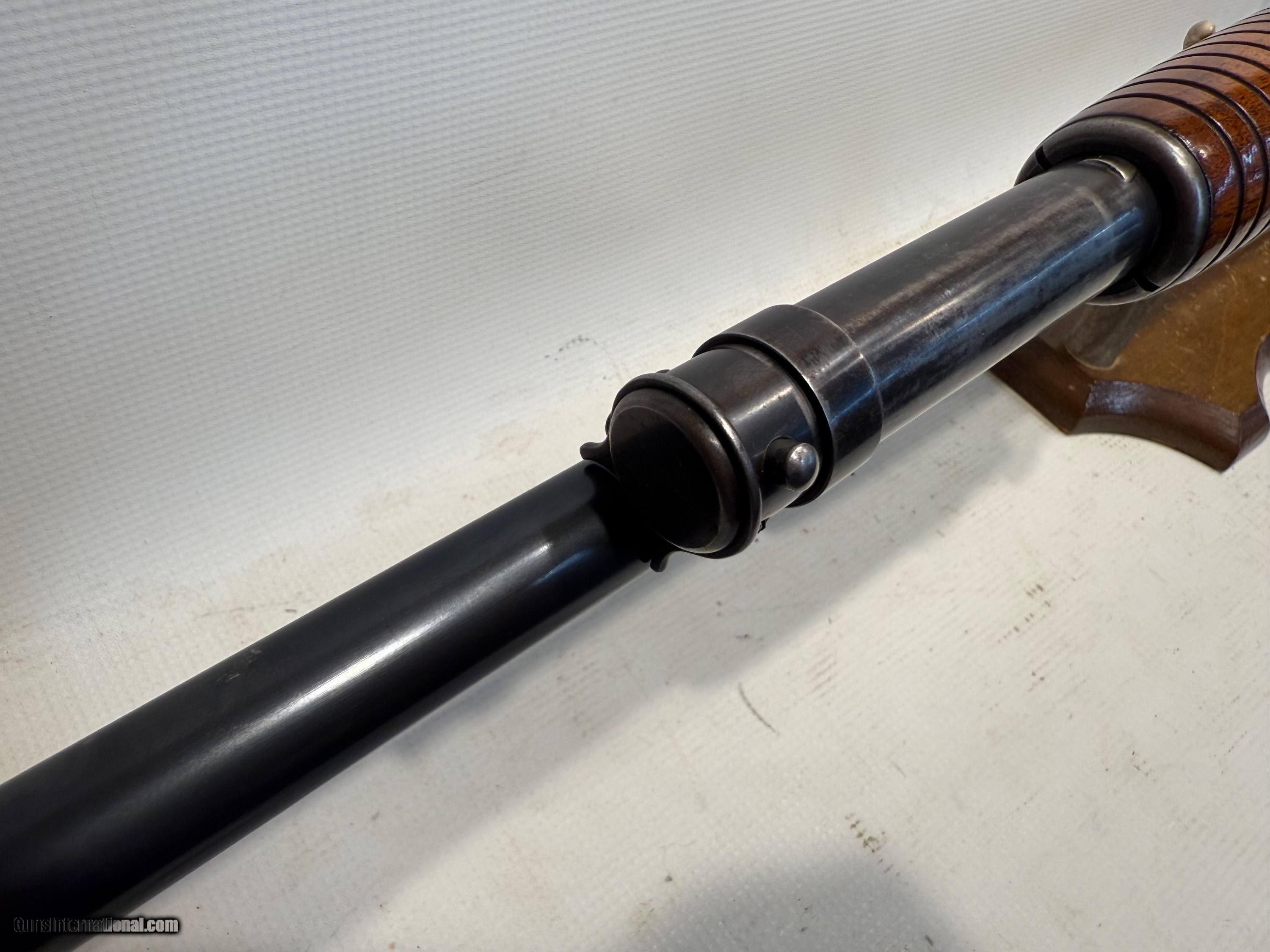 Description: Here we have a Winchester Model 12 Slide Action chambered in 12 Ga. This gun features a 28 in. nickel steel barrel with solid rib, 2 3/4 (became standard 1927) chamber, 6 shot, blue metal, modified choke, hammerless, plain pistol grip walnut stock and forearm, 14 in. LOP, manufactured in 1927. Nickel steel barrel Model 12s (mfg. 1912-1931) have become very popular in recent years, and some collectors are actually specializing on nickel steel Model 12s only. This gun is in great condition! The stock is in great shape with a few imperfections. The stock is in 85% +/- condition. The barrel and reciever are in great condition with some wear marks. They are rated at 85% +/- condition. The bore looks good and is in 85% +/- condition! Overall, this gun is in 85% +/- conditon. Please call us with questions before purchasing. Shotgun Gauge: 12 Gauge Manufacturer: Winchester Model: 12 Serial Number: 508446 Barrel Length: 28” Condition: 85% +/- Metal Condition: 85% +/- Wood Condition: 85% +/- Bore Condition: 85% +/- Barrel Type: Nickel Steel Action: Slide Action LOP: 14” Manufacture Date: 1927 Chokes: Modified Price: $585.00 Buy Now Contact Seller |
