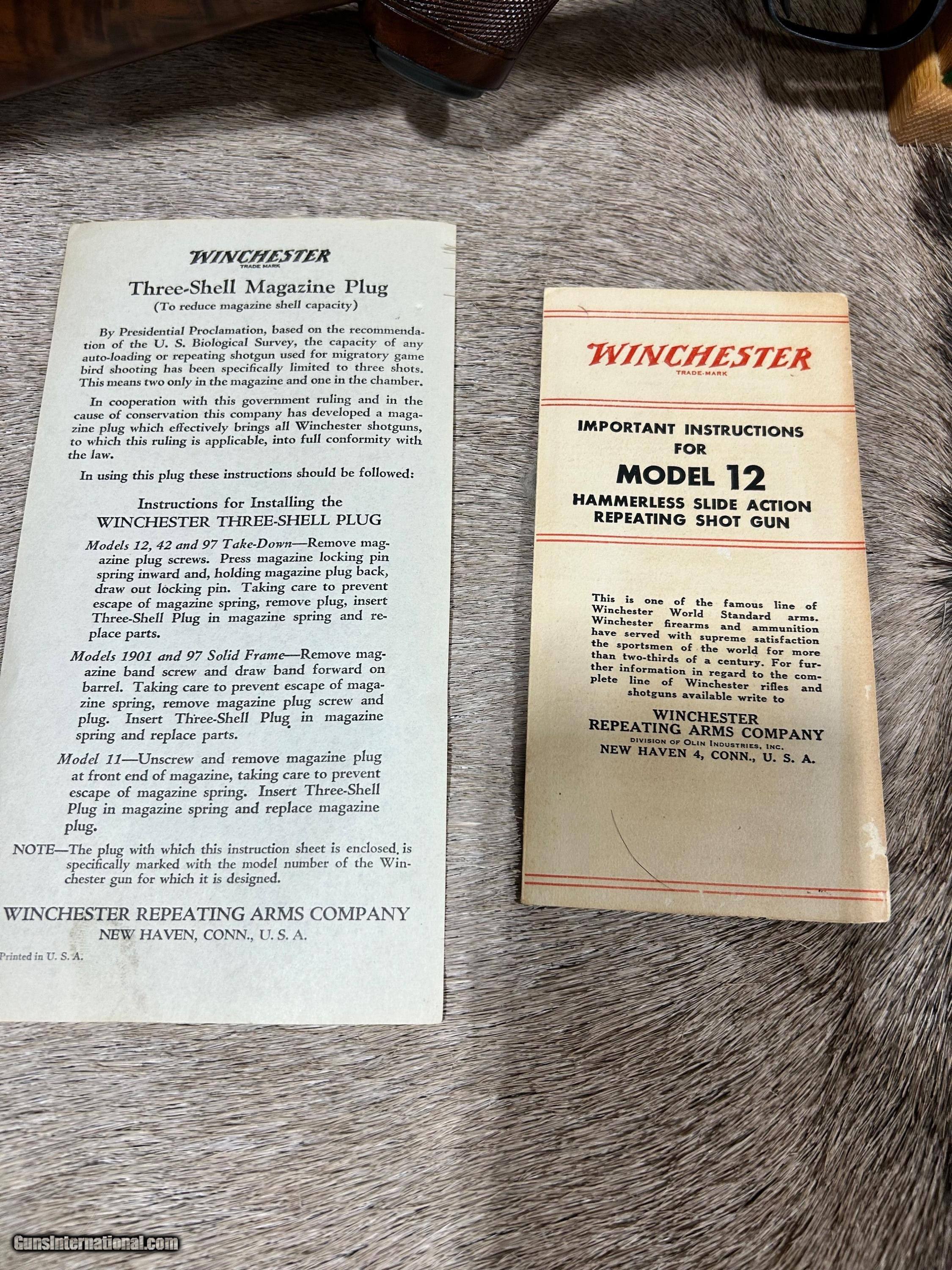 Description: ****Sold*****Up for sale I have a Winchester model 12 skeet grade 12 ga that is brand new in box made in 1957. This shotgun has a 26" solid rib barrel with a ws1 choke. The wood on this shotgun is absolute killer and approximately 1 out of 2500 Winchesters get a piece of wood like this on them. To find this gun new in the box with the original hang tag and manuals is absolutely almost next to impossible. Shipping and ins will be $99 and to FFL or C and r License holder only. SOLD |