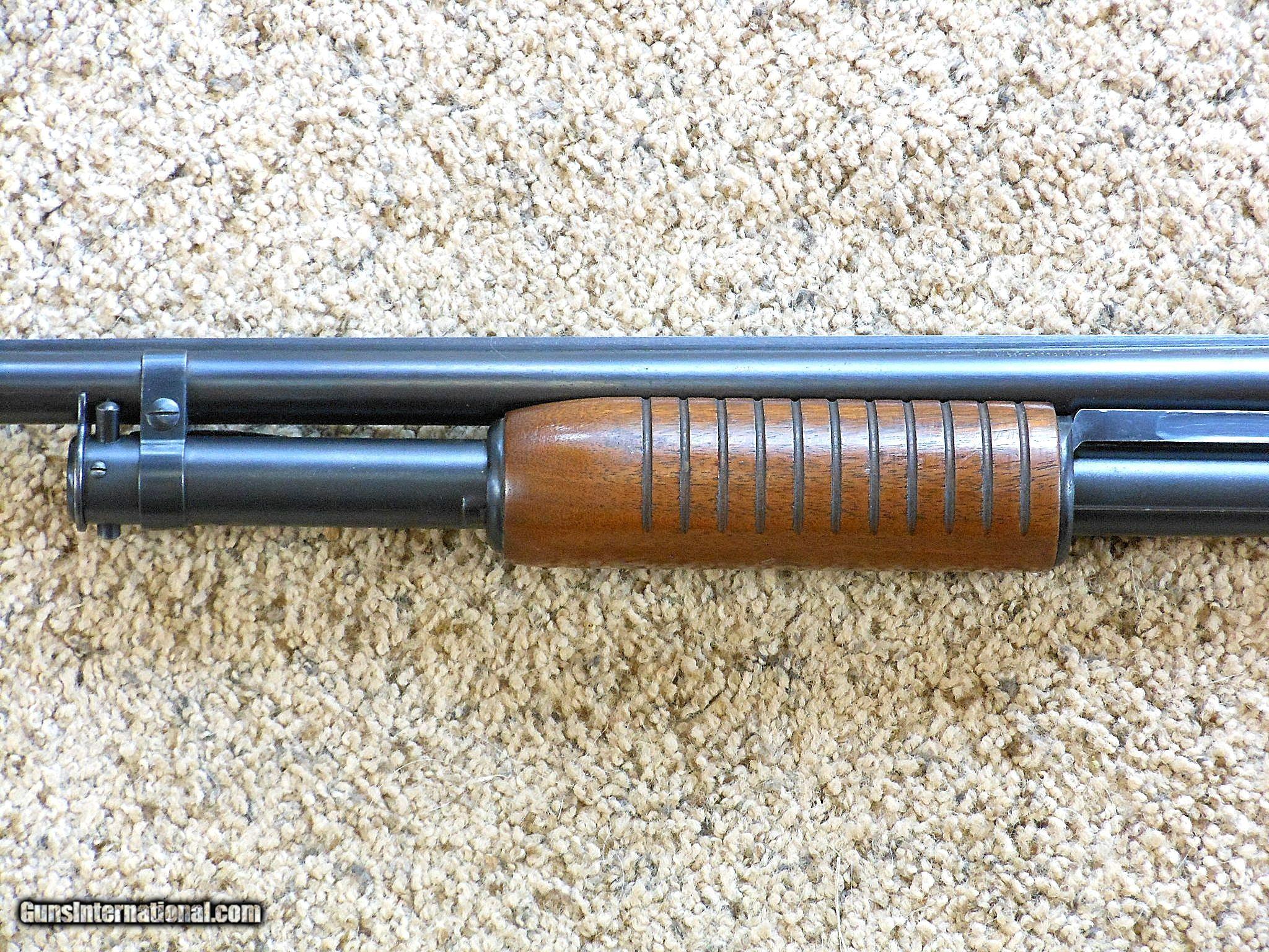 Description: This Winchester was produced in 1950. The shotgun's serial number is 1232990. The barrel is a 28 inch full choke with a solid rib. It has the late flat bottom forend. The pull is 13 3/4 inches. The stock and forend have the original factory finish. The butt plate is original to the stock. The bore is bright with no frosting. The take down feature is tight with no play. The action is smooth. The original bluing would rate a 95% condition. The reciever on the left side has some light freckling. This shotgun has been well cared for and is a nice honest Winchester for the shooter collector. It is chambered for the 2 3/4 inch 16 gauge shell. Search for hlvfineguns on google for more details. Curio&Relic WLL Consn. (3) F. No. 373 18 SOLD Curio/Relic: Yes Manufacturer: Winchester Model: 12 Standard Field Serial Number: 1232990 Condition: 95% Overall Bore Condition: Very Fine Barrels: 28 Inch Barrel Type: Solid Rib Action: Pump Gauge Info: 16 Gauge Stock Dimensions: Factory Standard Fore End: Flat Bottom Grooved Butt Pad: Factory Plastic LOP: 13 3/4 Inches Rib: Solid Rib Finish: Blued Manufacture Date: 1950 Chokes: Full |