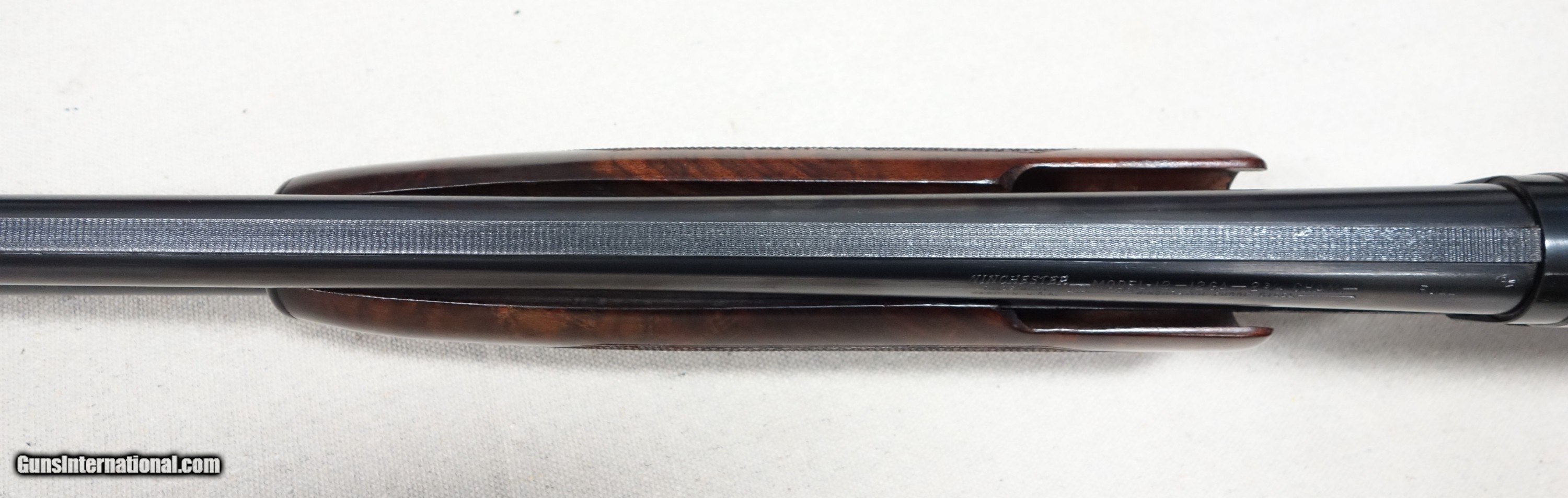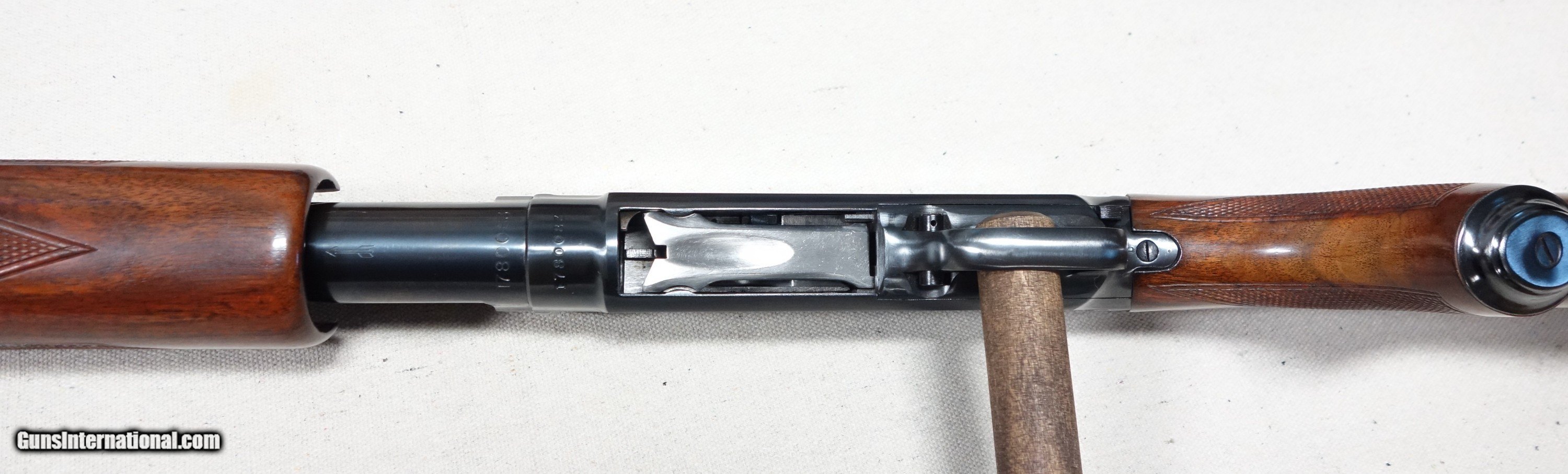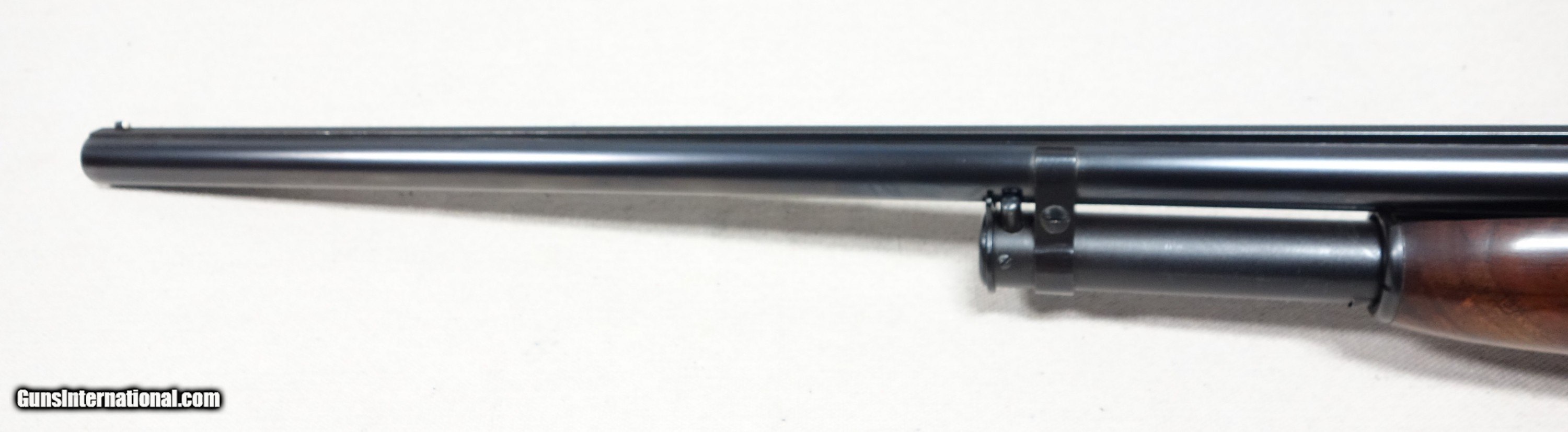 Description: ***SALE PENDING*** Fabulous example of the very scarce Winchester M12 Super Field 12 ga. in near mint condition. S/N 1780083 made in 1958. 30" barrel with perfect mirror bore. Factory solid matted rib. Full Choke. 2 3/4" chamber. 14" LOP. 99% original Blue and Varnish. Beautifully grained wood set. All mechanical functions are working smoothly and properly. An incredible and highly desirable configuration of "The greatest hammerless repeating shotgun ever built". Among the very best you will ever see offered. Please add $100 for expedited and fully insured shipping from Alaska in a custom cut, foam lined box. SOLD Curio/Relic: Yes |