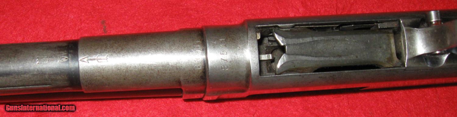 Description: THIS WINCHESTER MODEL 12 IS SERIAL # 87511. IT WAS MANUFACTURED IN 1915 AND THE BARREL IS MARKED NICKEL STEEL-MOD.1912-16GA FULL. THE BARREL SERIAL NUMBER MATCHES THE RECEIVER. IT IS MARKED FULL (CHOKE) BUT MEASURES CYLINDER BORE SO IT MUST HAVE BEEN CUT OR REAMED TO CYL. IT IS 26" IN LENGTH AND IF IT WAS CUT IT WAS DONE PROFESSIONALLY AND THE FRONT SIGHT BEAD WAS CORRECTLY INSTALLED. THE BORE IS SHINY WITH VERY LIGHT SCATTERED SCRATCHING. THE RECEIVER BLUEING HAS FADED AND IS LESS THAN 10%. THE BARREL BLUEING HAS HELD VERY WELL ROUGHLY 80%. THE WOOD IS IN GOOD CONDITION WITH A SMALL CRACK 1 1/2" LONG STARTING AT THE BOTTOM TANG SCREW AREA.IT DOES NOT EXTEND THROUGH THE STOCK TO ANY OTHER SPOT THAT IS VISIBLE. INCLUDED IS IT'S TAKEDOWN CARRYING CASE AND WOODEN CLEANING ROD WITH SWAB. SHIPPING IS $35 MY FFL TO YOUR FFL SOLD Curio/Relic: Yes Manufacturer: WINCHESTER Model: MOD 12 TAKEDOWN Serial Number: 87511 Condition: GOOD Metal Condition: GOOD Wood Condition: GOOD-CRACK Bore Condition: VERY GOOD Barrels: MATCHING SERIAL # Barrel Type: 26" CYL (MARKED FULL) Action: PUMP Gauge Info: 16 Finish: BLUE WORN Sights: BEAD Manufacture Date: 1915 Chokes: CYLINDER Item Location: RI |