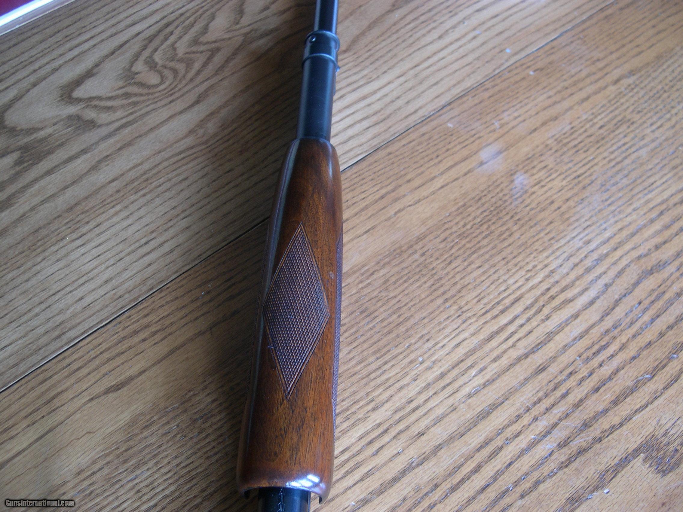 Description: With 98% Orig Blue and Wood, and 30" Solid Rib Full choke Barrel, that does not have a mark, Wood as you can see in pics, has nice figure, and Exc plus original condition. Factory solid pad, LOP 14 1/4" Very hard to find a trap made 68 years ago in this near unused orig condition, no marks on slide rods, that tells the very little use this gun has had !! A gun for the Trap gun collector or shooter!! SOLD |