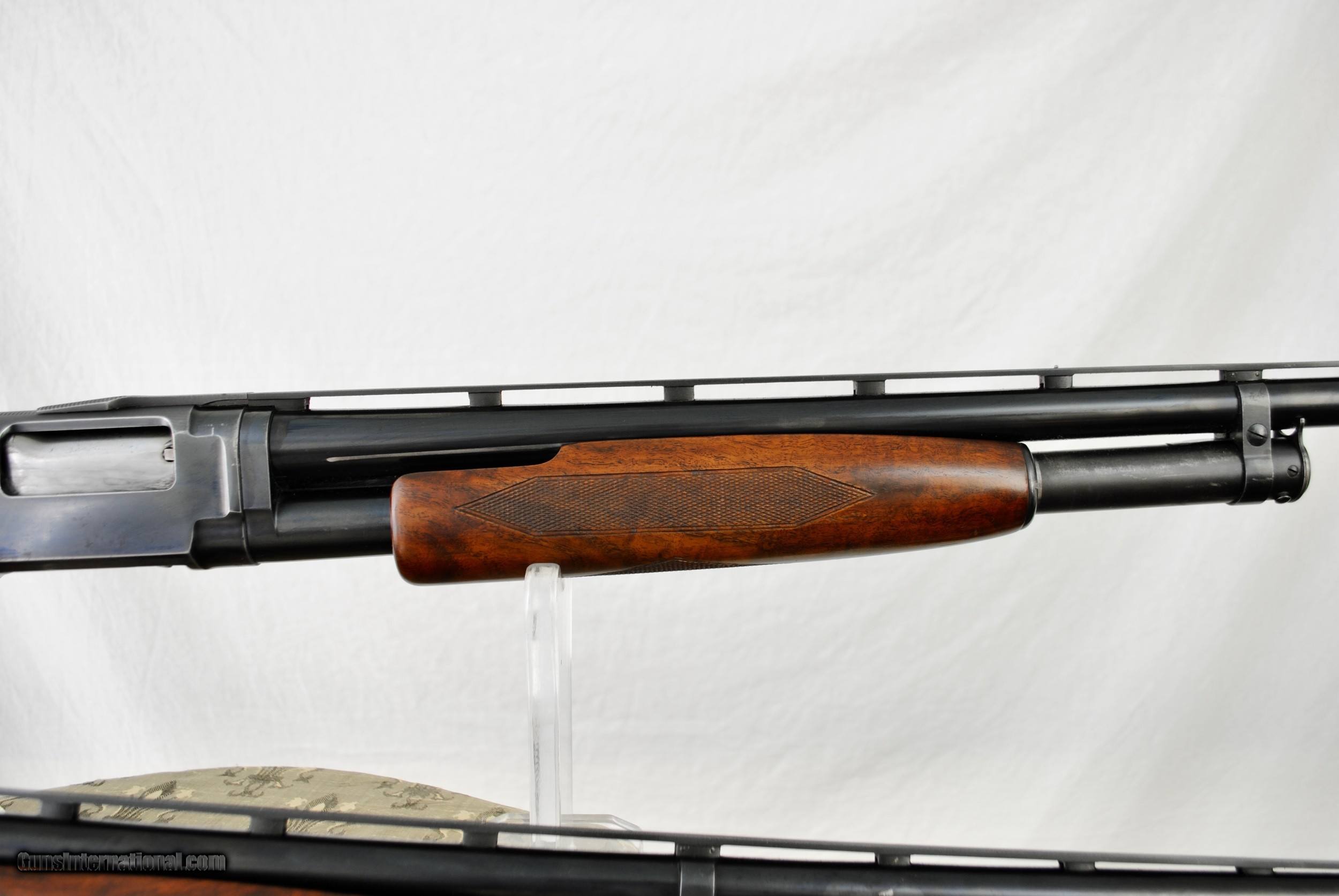Description: Winchester Model 12 Trap Grade two barrel Trap/Skeet set. Factory original with matching serial numbers on the barrel assembly. Duckbill vent rib with oval posts. Trap barrel is 30" with full choke. Skeet barrel is 26 1/2" with Skeet choke. Original finishes on wood and metal. Winchester recoil pad and grip cap. Weight with the trap barrel is 8 LBS 1 OZ., while the skeet barrel is 7 LBS 14 3/8 OZ. LOP is 14 3/8". Drop at comb - 1 7/16". Drop at heel - 2 1/16". Rare configuration. Credit cards are OK with no additional fee. Shipping is $50. SOLD Shotgun Gauge: 12 Gauge |