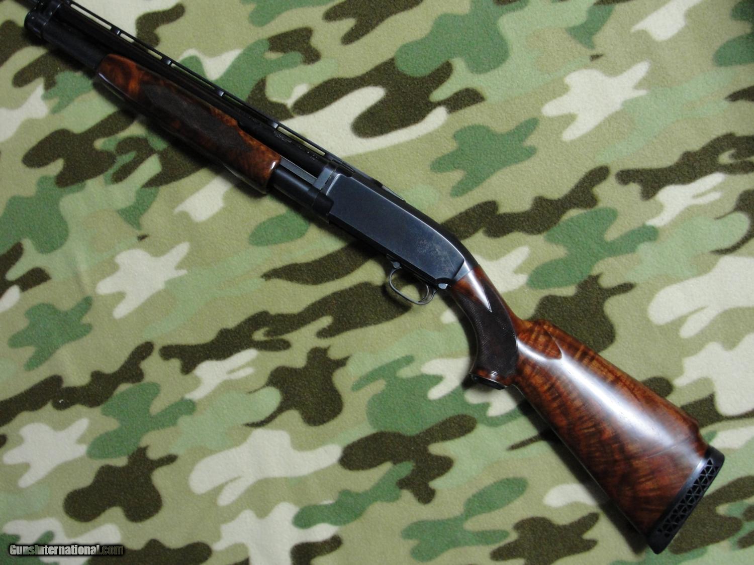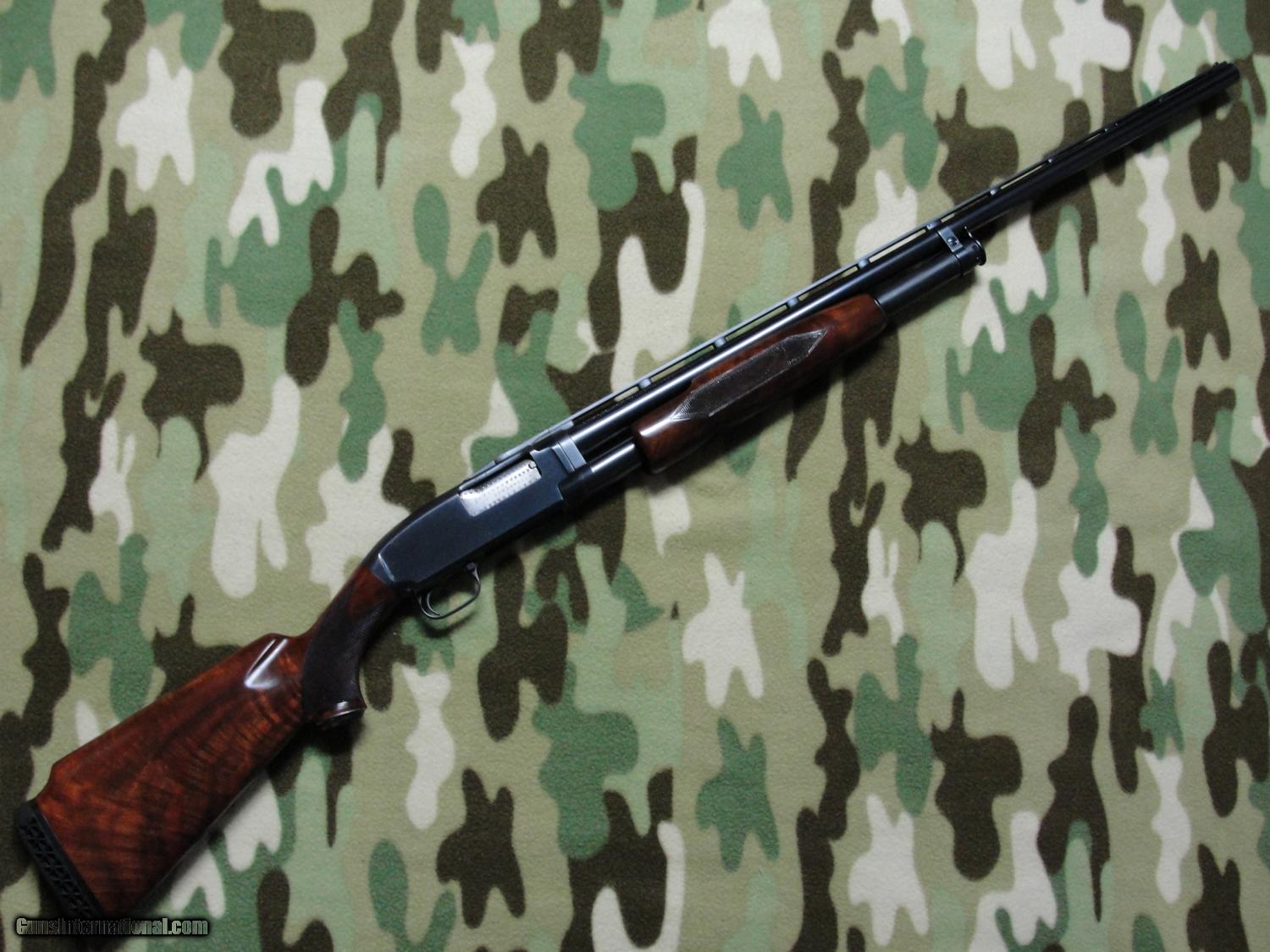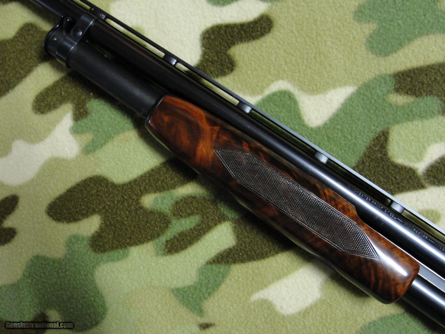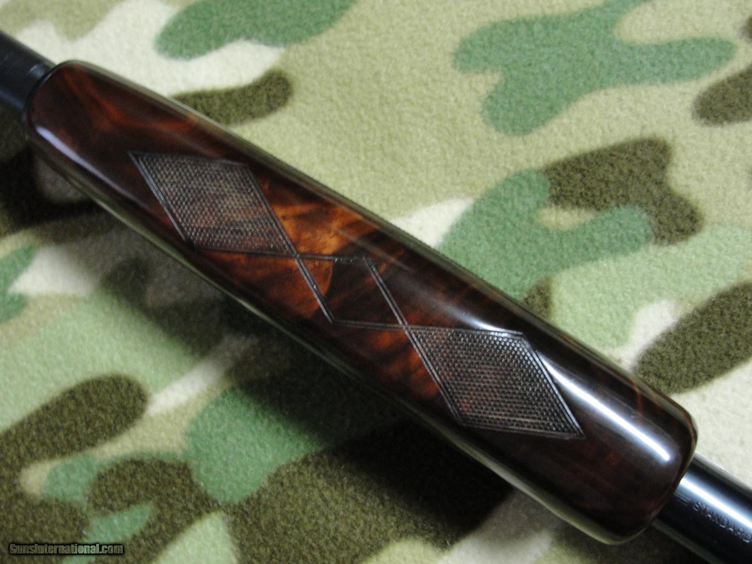 Description: This is one of those special guns that comes along and just warms our hearts. Pre war quality fit and finish, and it hasn't seen much use since. The action interior is as clean and nice as the outside finish and the 30" full choke barrel has a beautiful shiny bore from front to back. Our camera is unforgiving, and actually makes imperfections look much worse than in real life, so have a good look at the pics. Gun test fired and cycled remarkably smooth and shoots flat as can be...cover the clay and turn it to dust! Stock and fore arm are well preserved and have some of the prettiest grain we've seen. Pull is 14-1/4" over the recoil pad. SOLD Curio/Relic: Yes |