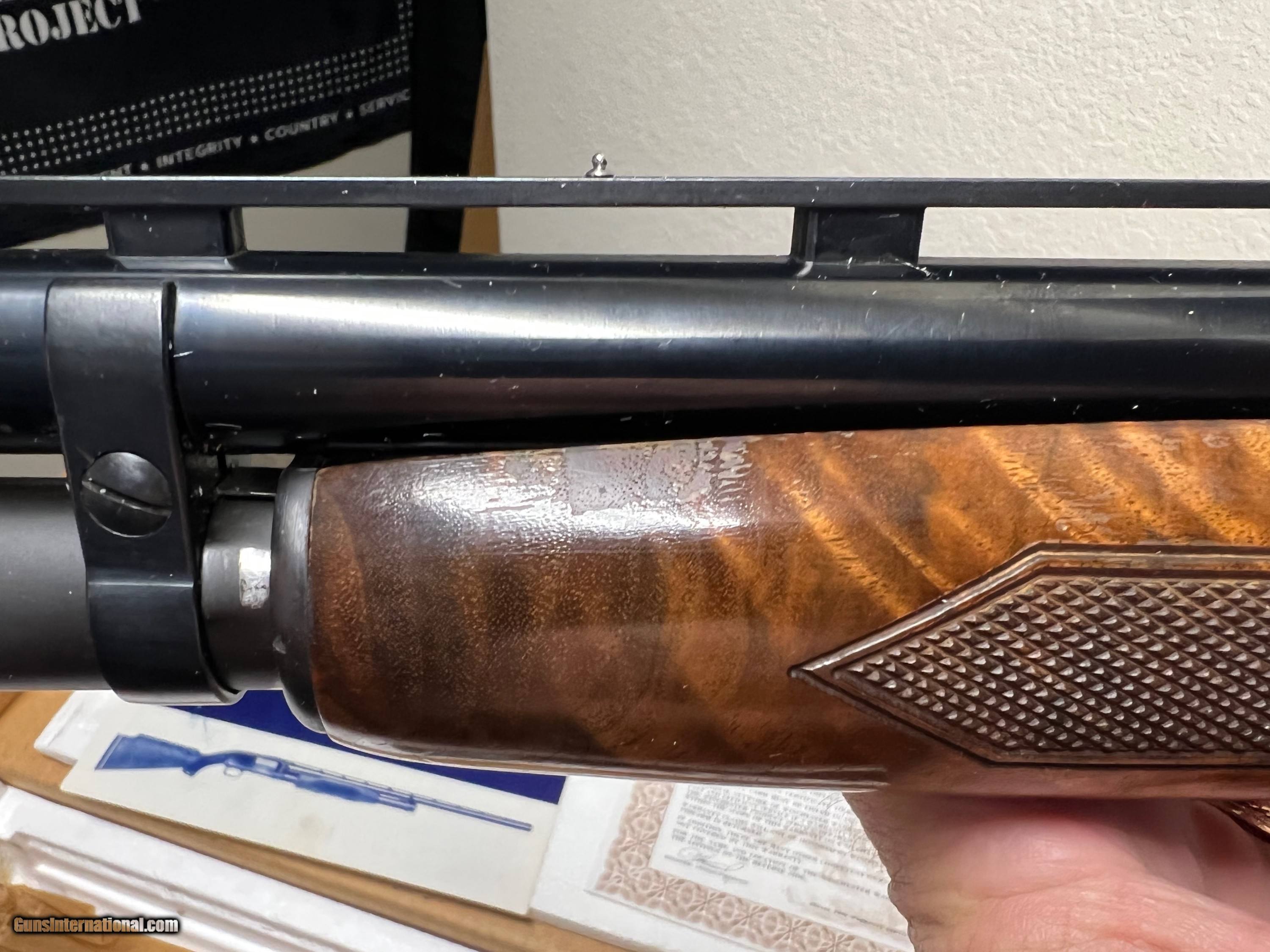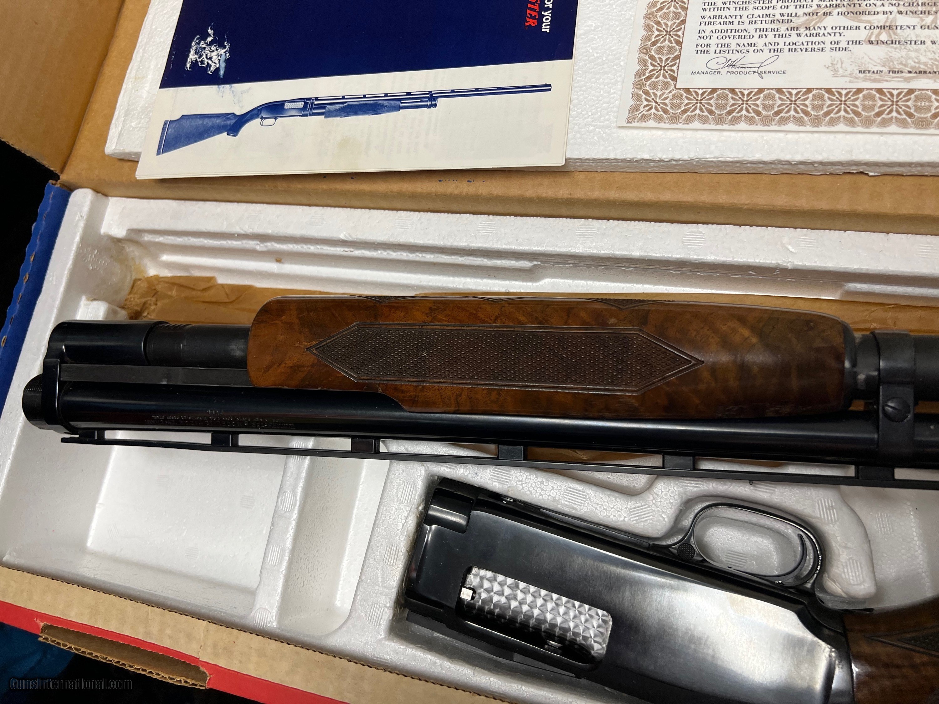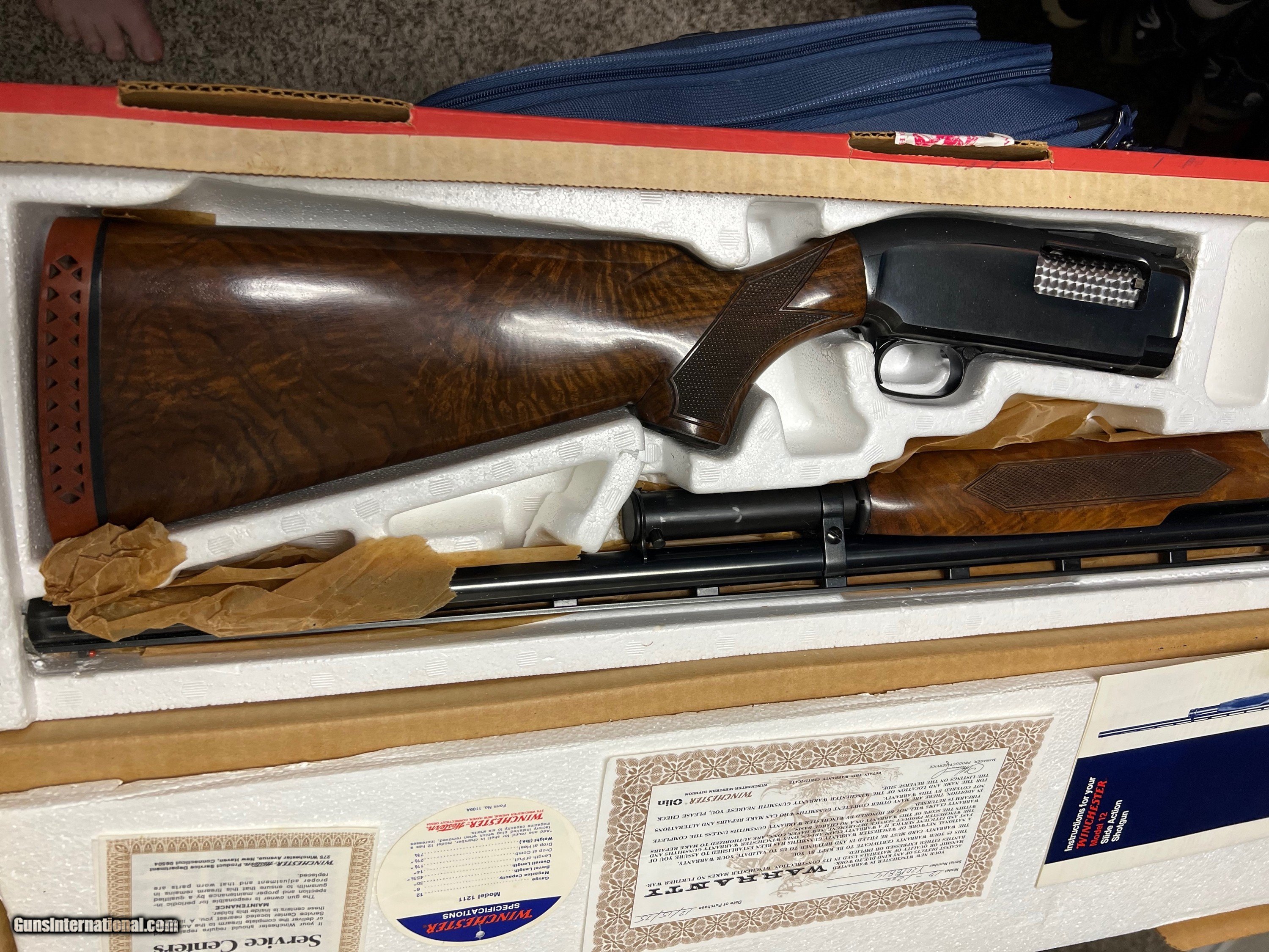 Description: New in the box with all papers warranty card with serial number matching the box and the shipping box brown cardboard has the matching lable serial number too . A great addition to anyones collection. The hard foam has rubbed a little of the clear coat off of the forearm as show in picture. But the gun has not been shot and is crisp 99.5 percent. Vent rib , jeweled reciever and ejector. The desired 30 inch barrel length. Send from my FFL to your FFL. SOLD Shotgun Gauge: 12 Gauge Manufacturer: Winchester Model: Model 12 Barrel Length: 30 Condition: Mint |