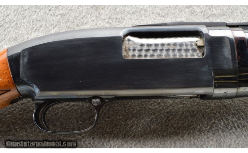 Description: This is a nice clean Winchester Model 12 Y Trap 12 gauge in great condition. The nice walnut trap stock has a few very light dings but nothing bad. The blue is very nice and the shotgun is ready for the range. SOLD Caliber Info: 12 Gauge. Chambers: Pump action repeater. Metal Condition: About new. Wood Condition: Excellent. Bore Condition: Bright and shiny Barrels: 30 inch blue with a vent rib and duck bill. Triggers: Single blue. Stock: Very nice walnut with a high trap comb, steel grip cap and checkered pistol grip. Stock Dimensions: 14 Inch LOP. Fore End: Matching checkered walnut. Butt Pad: Winchester vented red rubber butt pad. Weight: 8 Lbs 5 Oz. Sights: Mid and front beads on the vent rib. Chokes: Fixed Full. Item Location: Owatonna, MN |