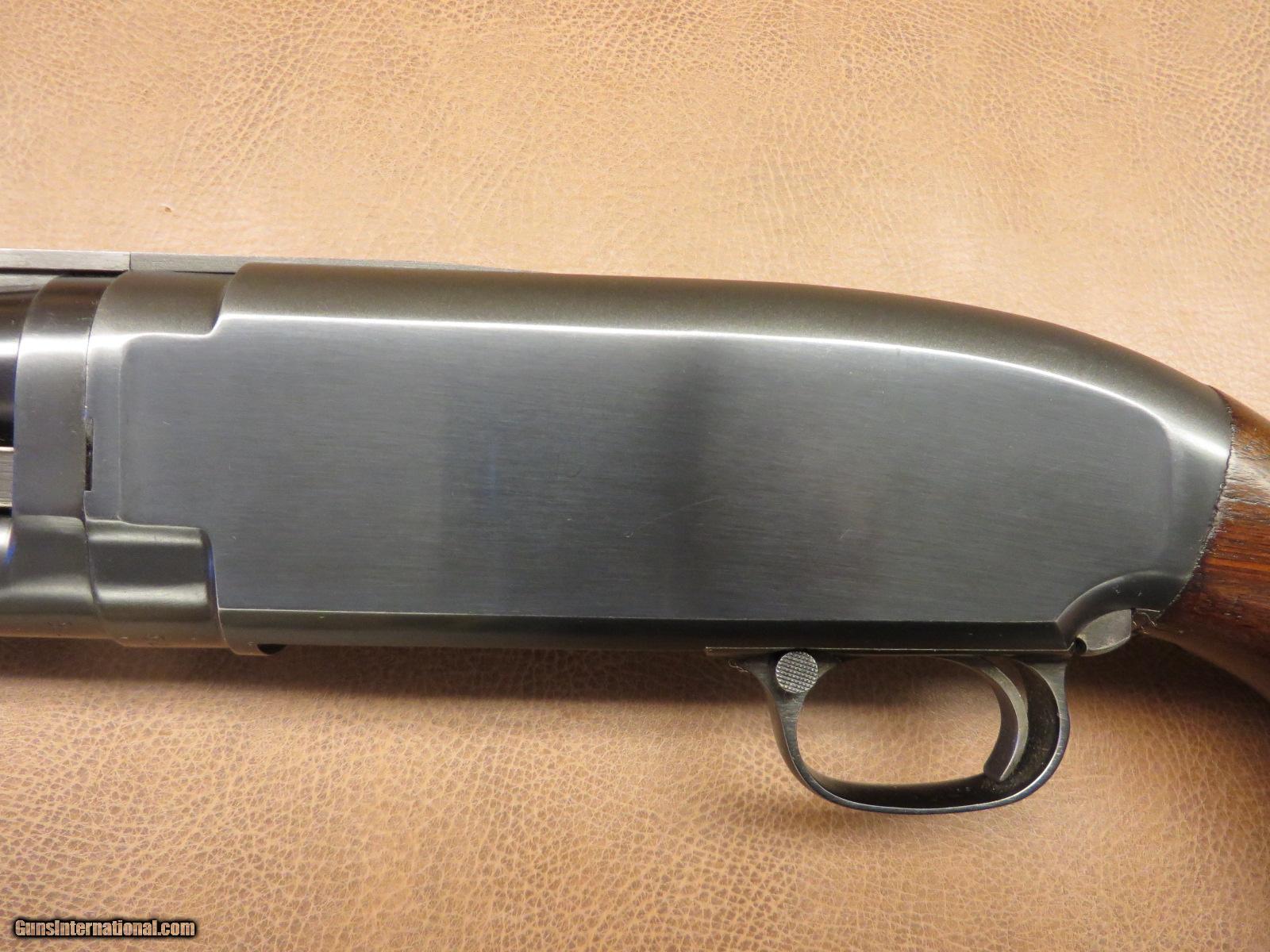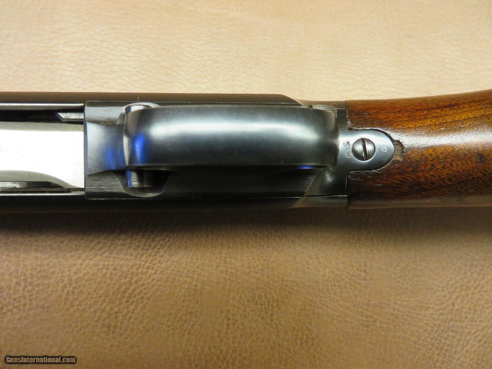 Description: 20 ga. 2 3/4 inch has 27 1/2 inch proof steel barrel with Simmons Vent Rib and vented adjustable Polychoke. Matching serial numbers 1772xxx. Refinished non checkered walnut stock has Pachmayr recoil pad with 13 1/2 inch length of pull. Forend finish is original and 98%. The blue is 95%+. SOLD |