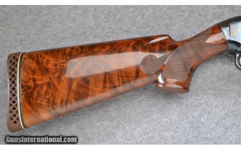 Description: Buttstock has been modified with added checkering and non-original gripcap. Recoil pad is non-original. Wood shows light use marks with areas of thinning finish. Bore and mechanical function remain excellent. No box. SOLD Manufacturer: S.N - Y200XXXX Caliber Info: 12 Ga. Chambers: 2 3/4 in. Metal Condition: Very Good Wood Condition: Very Good Bore Condition: Excellent Barrels: 30 in. Vent Rib Triggers: Original Stock: Checkered Walnut P.G. Stock Dimensions: 14 in. LOP Fore End: Checkered Walnut Butt Pad: Brown Vented Rubber Weight: 8 1/4 lbs. Sights: Red Front Bead w/Silver Mid-Bead Chokes: Full Item Location: Wheeling, WV |