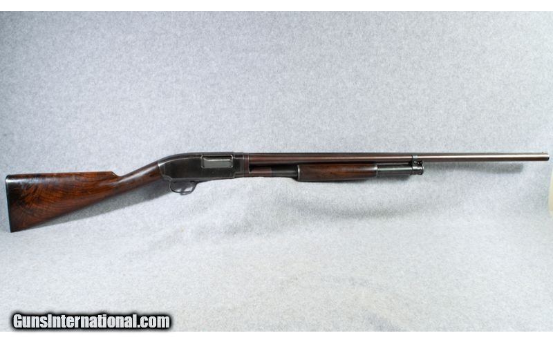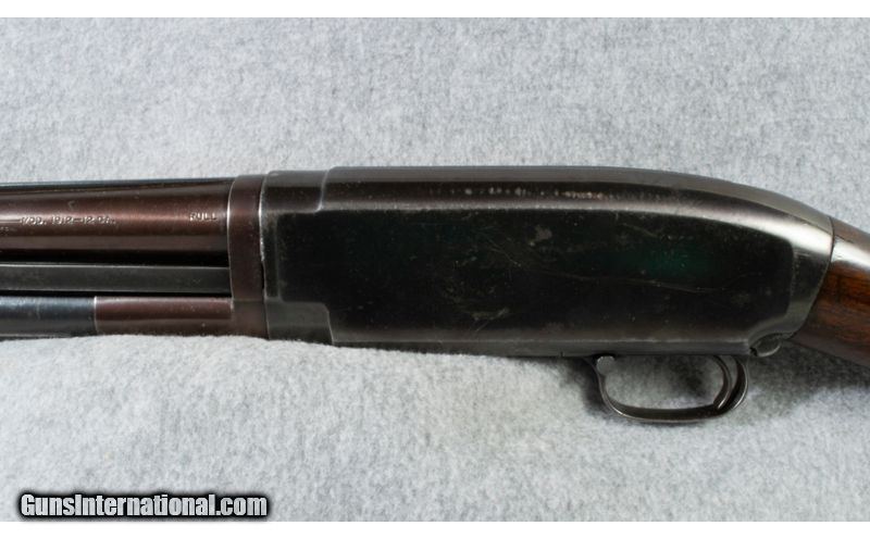 Description: Winchester Model 1912 dating to 1918. 12 Ga 30 inch barrel with full choke and solid rib. Nickel Steel Barrel has been refinished, shows a plum color. Butt plate fits well, shows some extra at the toe. Smooth wood on pump, with minor crack on bottom, does not affect function. Action is smooth 12 Gauge SOLD Chambers: 12 Ga Metal Condition: Good Wood Condition: Good Bore Condition: Bright Barrels: 30 " Solid rib Stock Dimensions: LOP 13-7/8 Fore End: Smooth walnut Butt Pad: Winchester's resin pad Sights: Bead Chokes: Full Item Location: short pump |