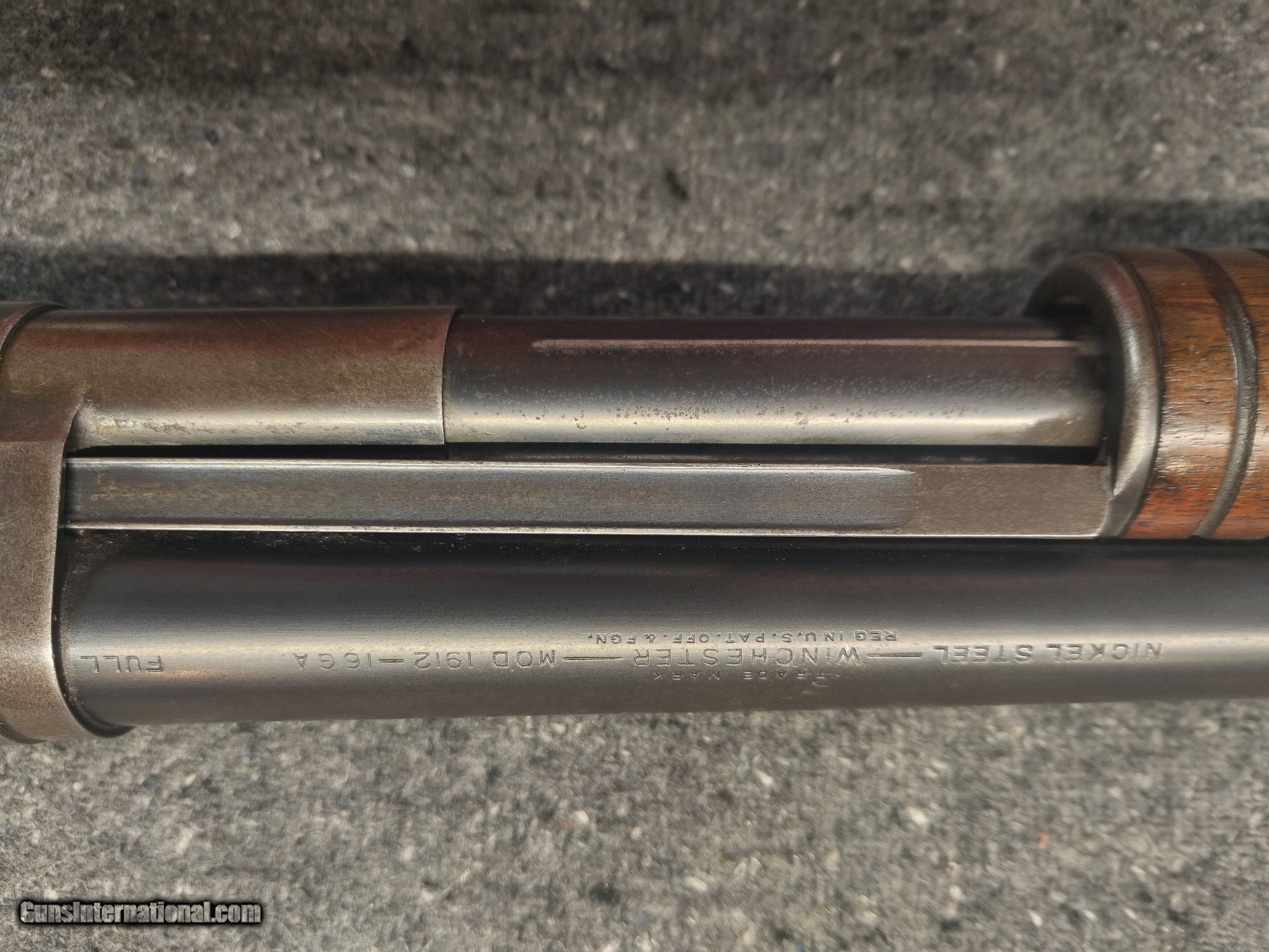 Description: Guns Listing ID: 1277669 The Winchester Model 1912, also commonly known as the Winchester 1912, Model 12, or M12, is an internal-hammer pump-action shotgun with an external tube magazine. It was designed by Winchester engineer T.C. Johnson and was based in part on the M1893/97 design by John M. Browning. The Winchester Model 1912 is primarily constructed of steel, with metal components that are machined. The furniture of the shotgun is made of wood. The condition of the gun is very good, with one noticeable scratch near the butt of the stock. SOLD Manufacturer: WINCHESTER Model: MODEL 1912 Condition: Used - Non-Certified Barrels: 24 BARREL Gauge Info: 12 GA |