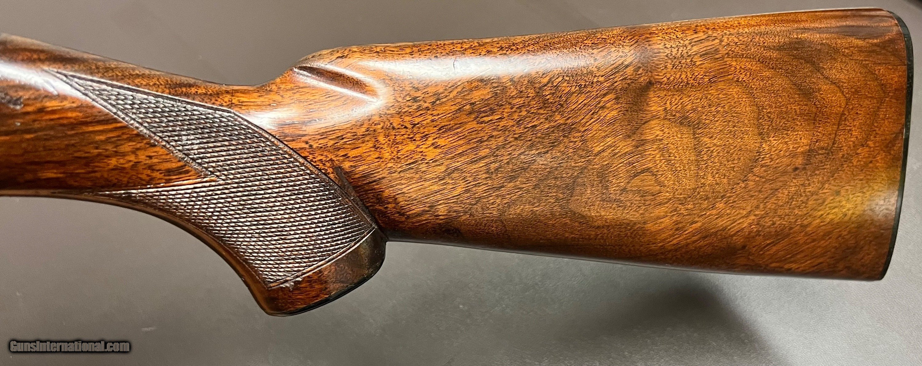 Description: Winchester model twelve 12GA skeet gun 26" solid rib barrel with mid and front beads 2 3/4" chamber Choke: WS1 Bore measurement: .730 Bore condition is excellent/as new Lockup is tight as new, crisp trigger Figured capped pistolgrip stock with checkered skeet forend LOP 14 1/8" over original Winchester buttplate DAC 1 3/8 DAH 2 3/8 Neutral cast 7lbs 9oz Built in 1952 Excellent original condition model 12 skeet gun with few light handling marks, very hard to find in this condition. Classic pump gun that will perform well on the skeet range or in the field. Curio/Relic: Yes Shotgun Gauge: 12 Gauge Price: $1,950.00 Buy Now Contact Seller |