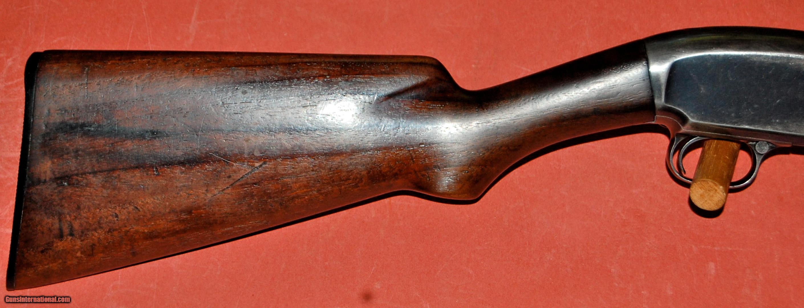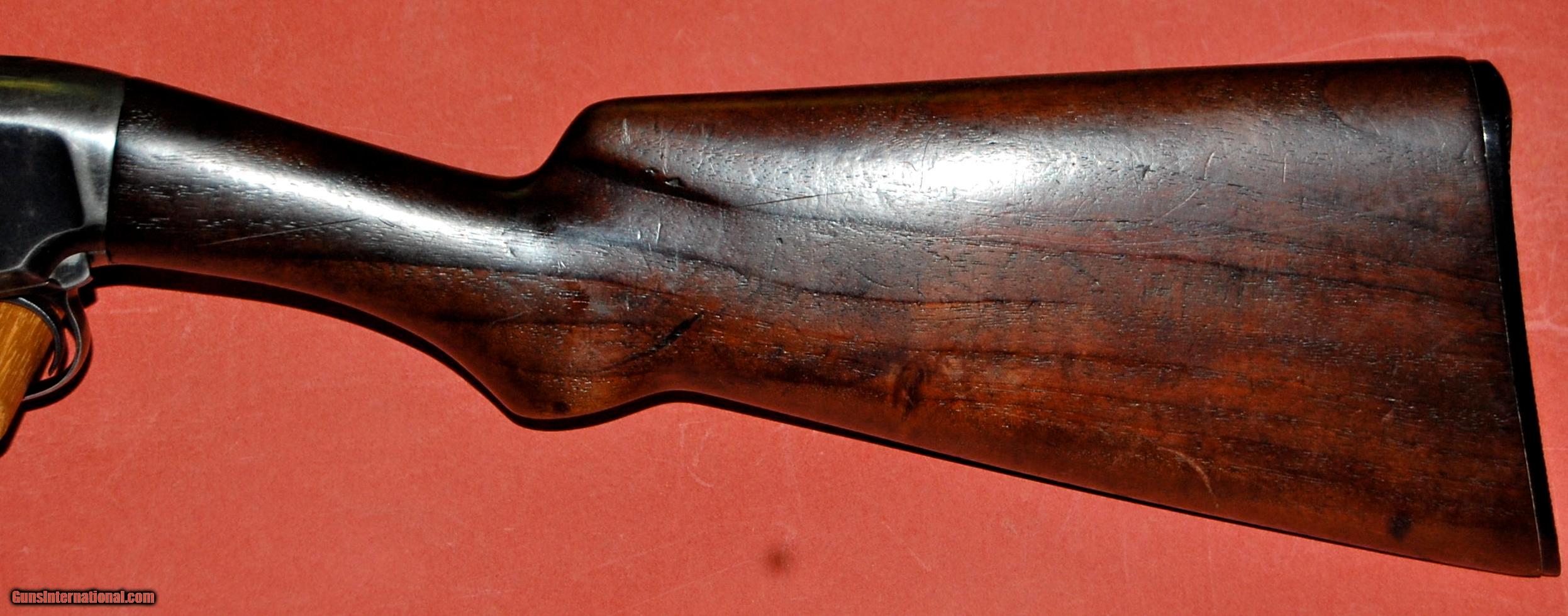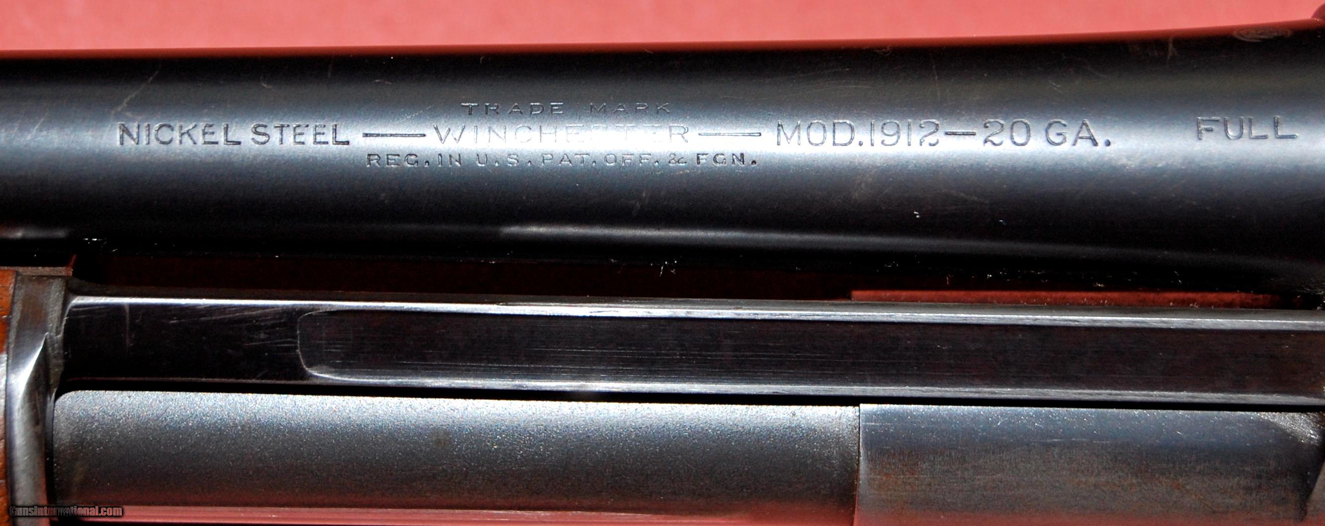 Description: Winchester model 1912 20ga.Built in the 2nd year of production,1913,this gun has a 25" nickel steel barrel choked full.The gun is very tight and sound and has a mint bore.The gun retains around 70% of the original blue finish and 80% of the original wood finish.The forend is the early style "corncob" small forend.This is a nice early model 12 that would make a fun bird gun.It is mechanically very sound and should give years of good shooting.The chamber has been professionally opened to 23/4".C&R eligible. SOLD Curio/Relic: Yes Manufacturer: Winchester Model: 1912 Serial Number: 23056 Chambers: 23/4 Metal Condition: good Wood Condition: excellent Bore Condition: excellent Barrel Type: nickel steel Action: pump Gauge Info: 20ga Manufacture Date: 1913 Chokes: full |