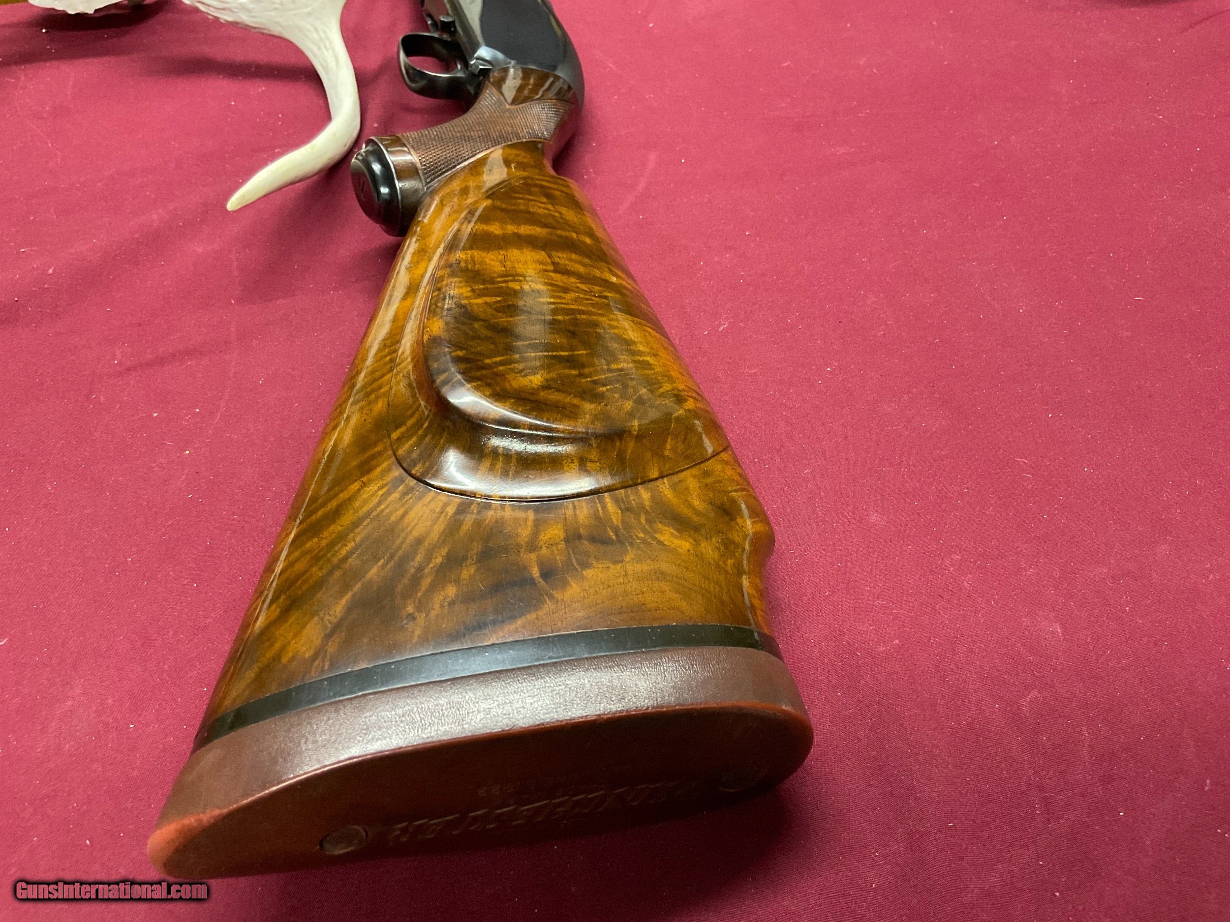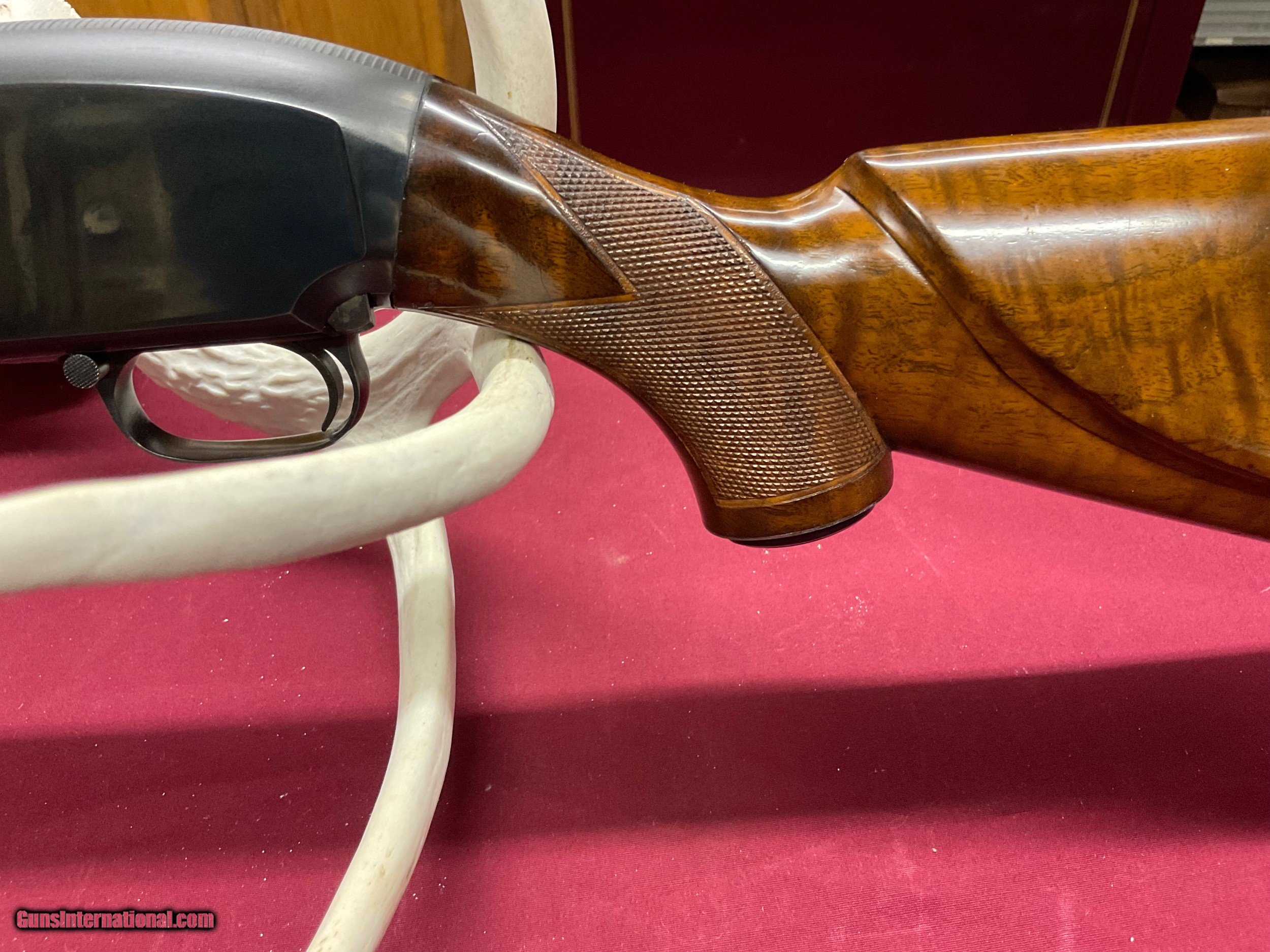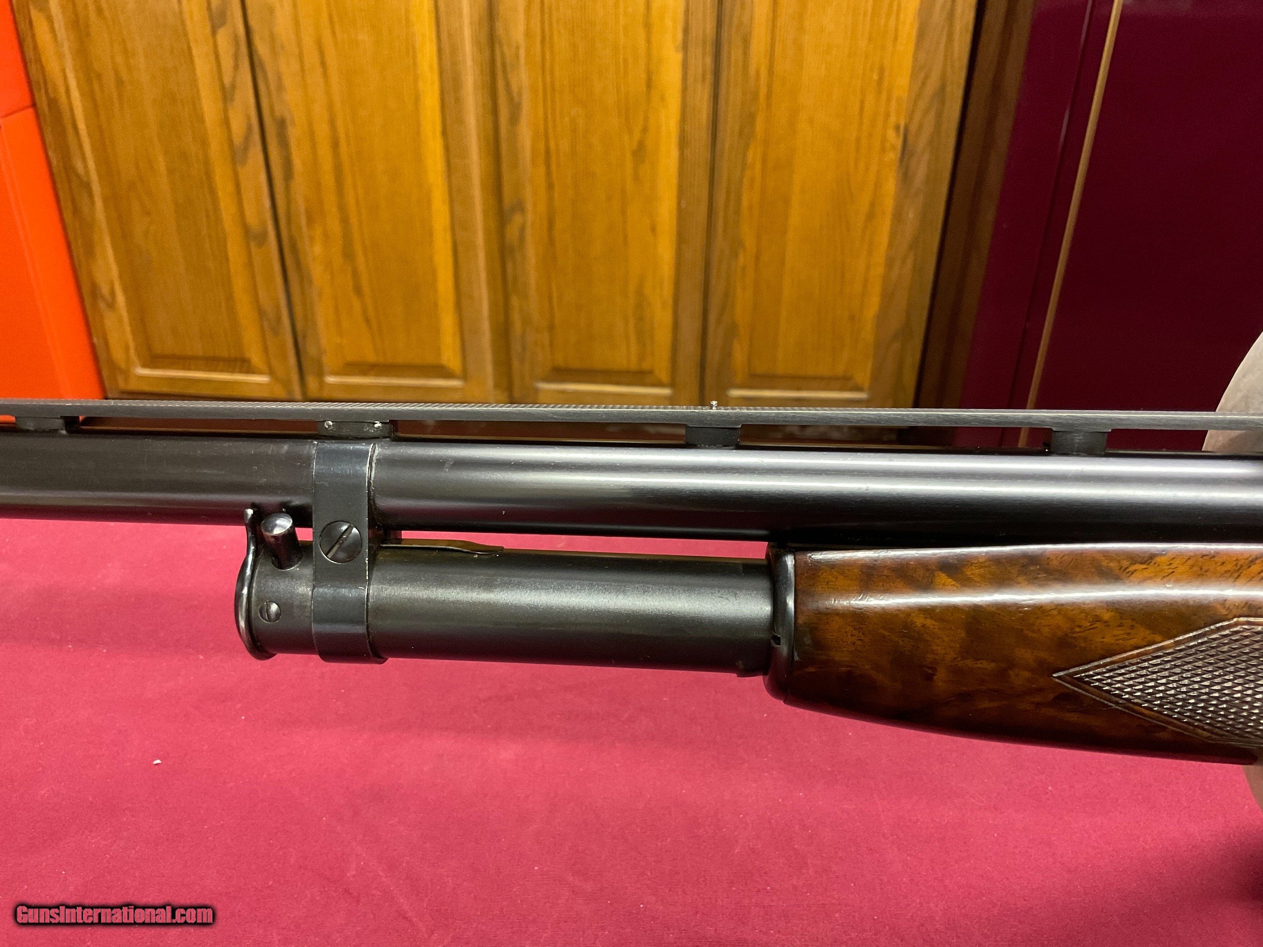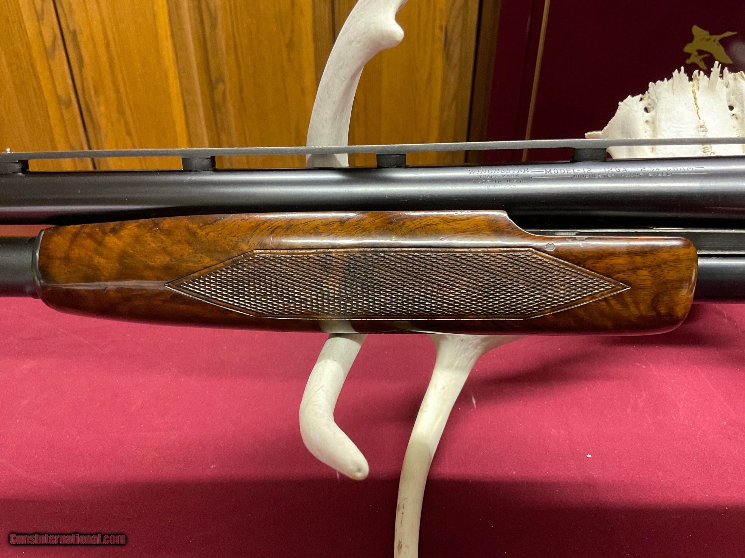 Description: Here's an extremely rare model 12. Only one I've ever seen. I've heard of two others. Now sure where they are. This gun has a FACTORY CHEEK PIECE ON PIGEON GRADE WOOD ! Also , it has the two pin milled rib. As you know, two pin milled ribs were all hand made up to 1963 then changed to soldered rib. It has a 30" full barrel. 'This model 12 is 1000% original, UNTOUCHED ! It was built in 1956 and has been in a humidity controlled room for years. I've looked inside this gun. It is as new, showing no sign of being fired .However , the previous owner said he shot it six times. He had an old box of shells with six missing. The gun condition supports that statement. Also, I trust him. It has one very small safe mark in the finish of the forearm, nothing else ! Both pieces of wood are knock down gorgeous. Thanks for reading, Ed. ( by the way, I'm 81 years old and this is the rarest gun I've ever seen) SOLD Curio/Relic: Yes Shotgun Gauge: 12 Gauge Manufacturer: Winchester Model: 12 Serial Number: 1697717 Barrel Length: 30 Condition: Mint Metal Condition: Mint Wood Condition: Mint Bore Condition: Mint Manufacture Date: 1956 Chokes: Full Extras: Factory cheek rest |