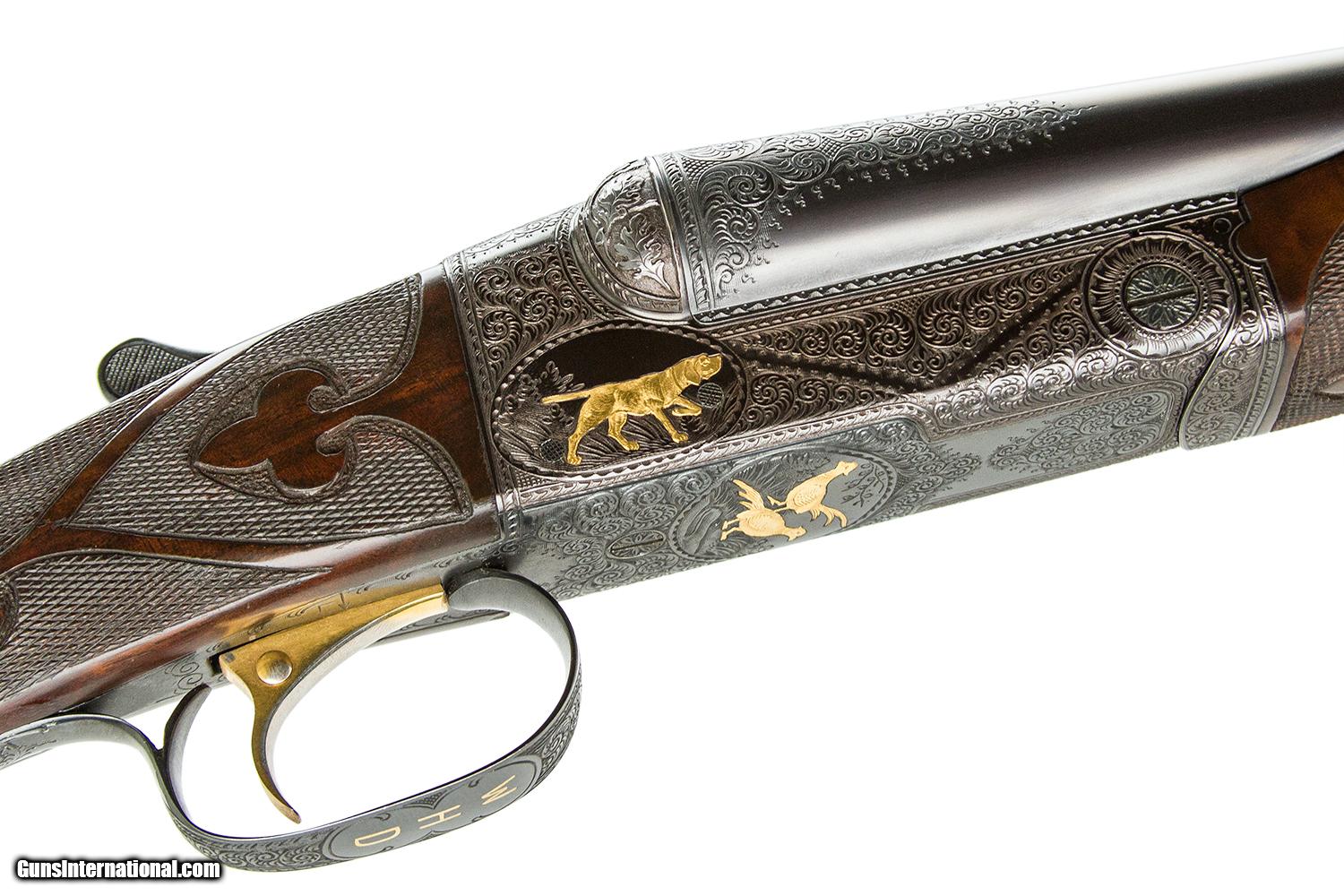 Description: 30" BARRELS, F/F CHOKED - AMERICAN BLACK WALNUT FEATHER CROTCH PISTOL GRIP STOCK - CAP MARKED GRAND AMERICAN - WINCHESTER BUTT PAD - BEAVERTAIL FOREND- B-CARVED WOOD - WINCHESTER SCROLL - VENTILATED RIB - MINOR HANDLING MARKS 8 LBS. 14 7/8" X 1 3/8" X 1 3/4 SOLD |