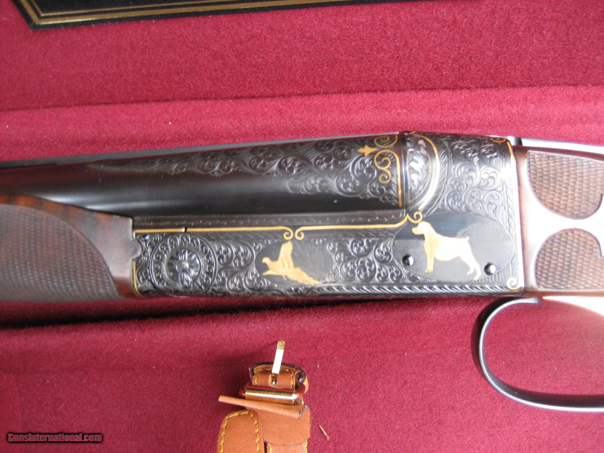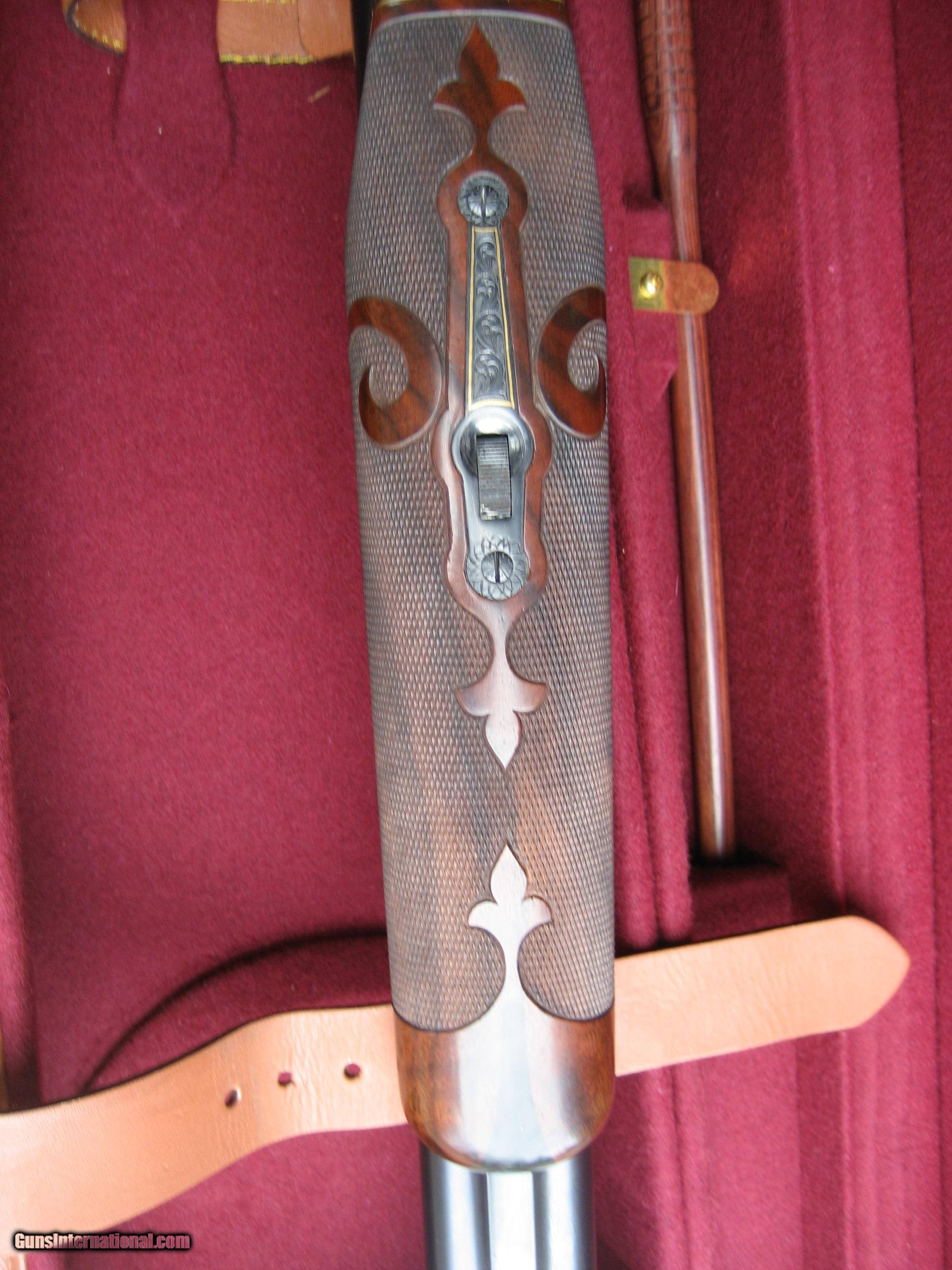 Description: Winchester C.S.M.C Model 21 Grand American 20 Gauge. It is a Super Model extensive engraving and gold inlays, one of the very best they have ever made. 28 inch barrels with engraving and gold inlays even at the end of the barrel. White beads at the end of the barrel anmd mid barrel. Checkering cut TO the fluer des leuis. Like new made in 2012 cost $25,000.00 originaly and over $29,000.00 today. Shipping $125.00 insured. Three day inspection. SOLD Shotgun Gauge: 20 Gauge Manufacturer: Winchester-C.S.M.C. Model: 21 Grand American Barrel Length: 28 Inches Condition: As New Metal Condition: As New Wood Condition: As New Bore Condition: As new Barrels: 28 Inches Triggers: Gold Stock Comb: 1 1/2 Stock Heel: 2 3/8 Fore End: Beaver Tail Butt Pad: Yes LOP: 14 1/5 Rib: Yes Weight: 7 1/2 Manufacture Date: 2012 Choke Left: SK Choke Right: SK Engraving: Yes Extras: Gold Inlays Case: Yes |
