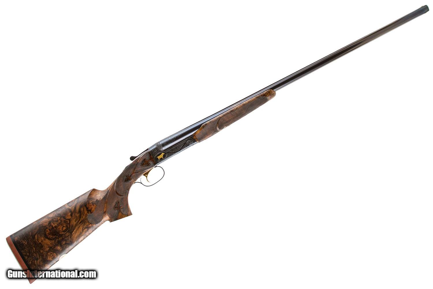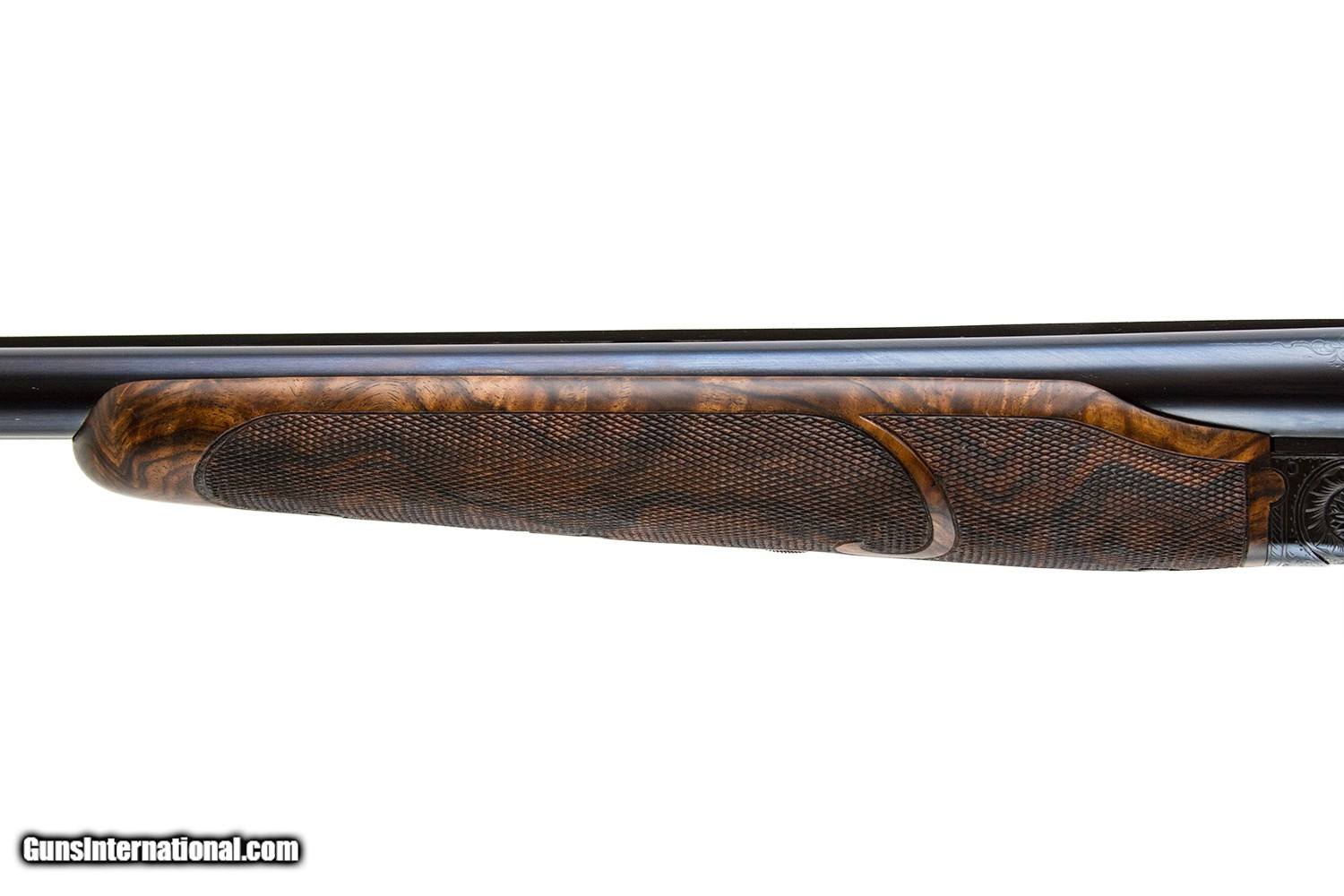 Description: 32" VENT RIB WITH BRILEY CHOKES 30" VENT RIB WITH BRILEY CHOKES SINGLE SELECT TRIGGER EJECTORS BEAVERTAIL FOREARM PISTOL GRIP CUSTOM WENIG WOOD NEW CONDITION HUEY OAK& LEATHER CASE 8LBS 1 5/8 DAH 1 3/16 DAC 15 1/2 LOP SOLD |