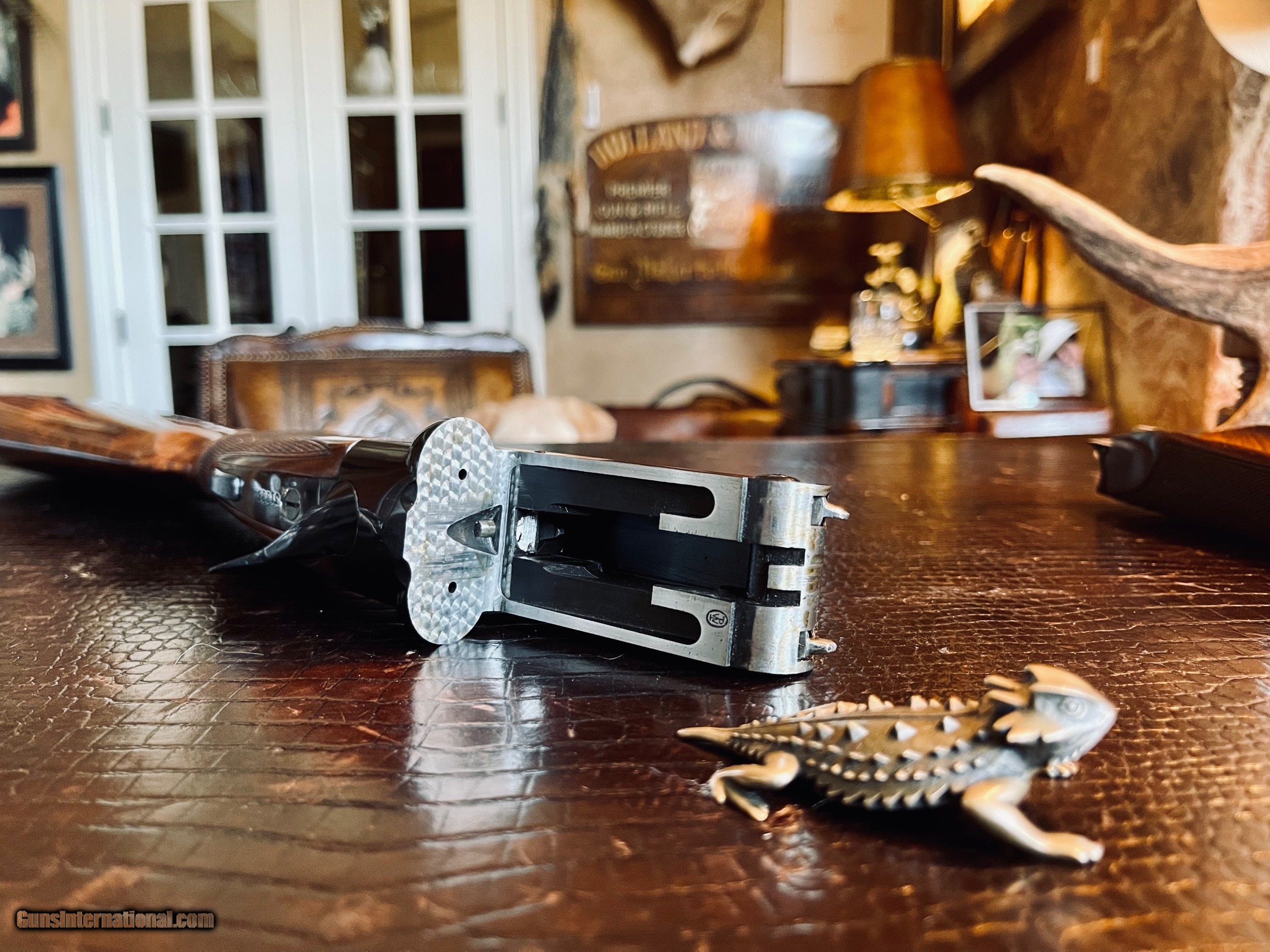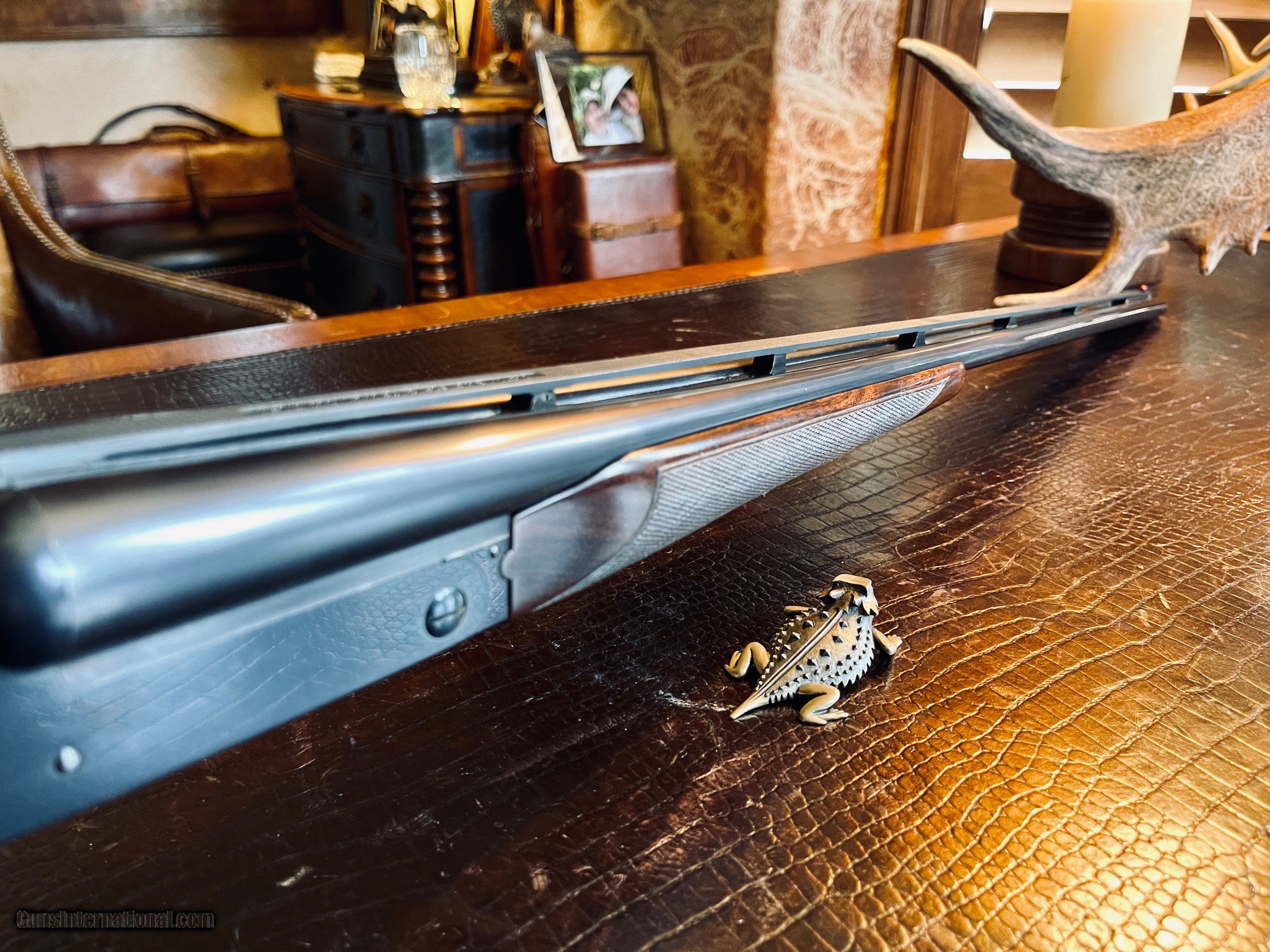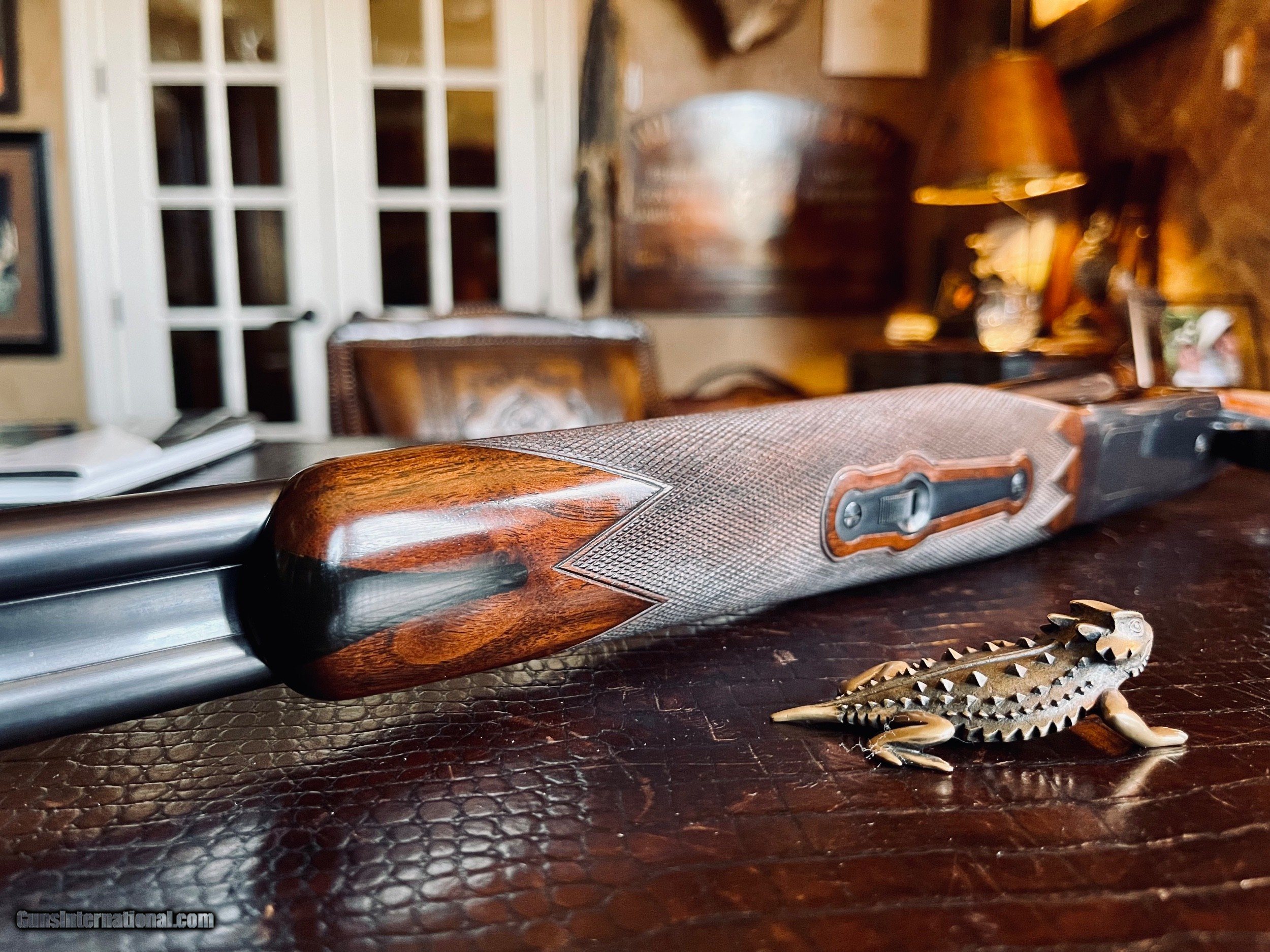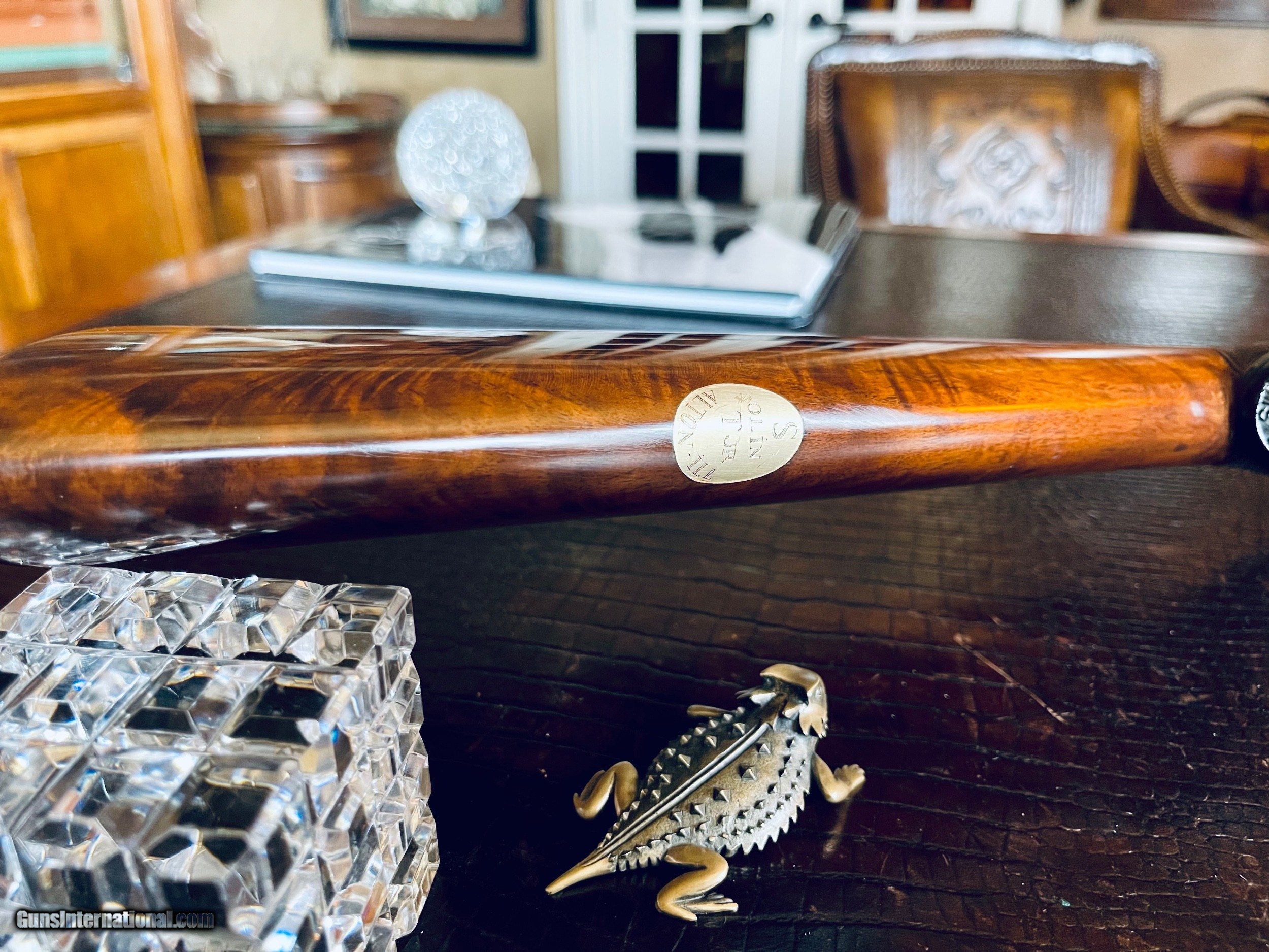Description: *****SOLD SOLD SOLD***** Winchester Model 21 - 410ga - “CUSTOM BUILT for S. TRUMAN OLIN, JR” - John Olin’s Brother - Original Magnificent Case - 99% Condition - as was typical with Mr. John Olin's ordered guns, there is no known documentation of this gun. We have reached out to Jessica at Cody to confirm - pricing will remain the same regardless of documentation availability. This is a monster piece of Winchester 21 history for the right collection. Lightning Cut Watertable and Barrel Flats - Checkered Butt - Beavertail Forend - Ebony Insert - Pistol Grip Cap - High Grade Black Feathercrotch Walnut - Rare Ventilated Rib - Rare Gold Oval Initials "S.T. Olin Jr., Alton, Illinois" - Deluxe Checkering - the WOW FACTOR is redlining the dashboard - Wow!! **scroll down for specs** Quillen & Worfe Fine Guns Disclosures and Important Information: