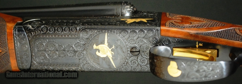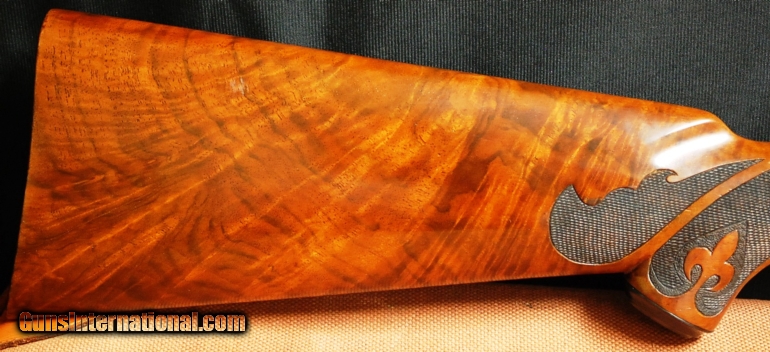 Description: WINCHESTER- Model 21 Grand American 12ga. Two Barrel Set- 28” barrels choked M/F, 28” barrels choked IC/M, gorgeous full feather crotch American black walnut capped pistol grip stock, checkered butt, two beavertail forends, B-Carve checkering pattern, single trigger, automatic ejectors, automatic safety, vent rib, beautiful Grand American engraving pattern over a blued receiver, the gun remains in as new condition, a beautiful example, cased in a leather case with a canvas cover, available for immediate delivery.