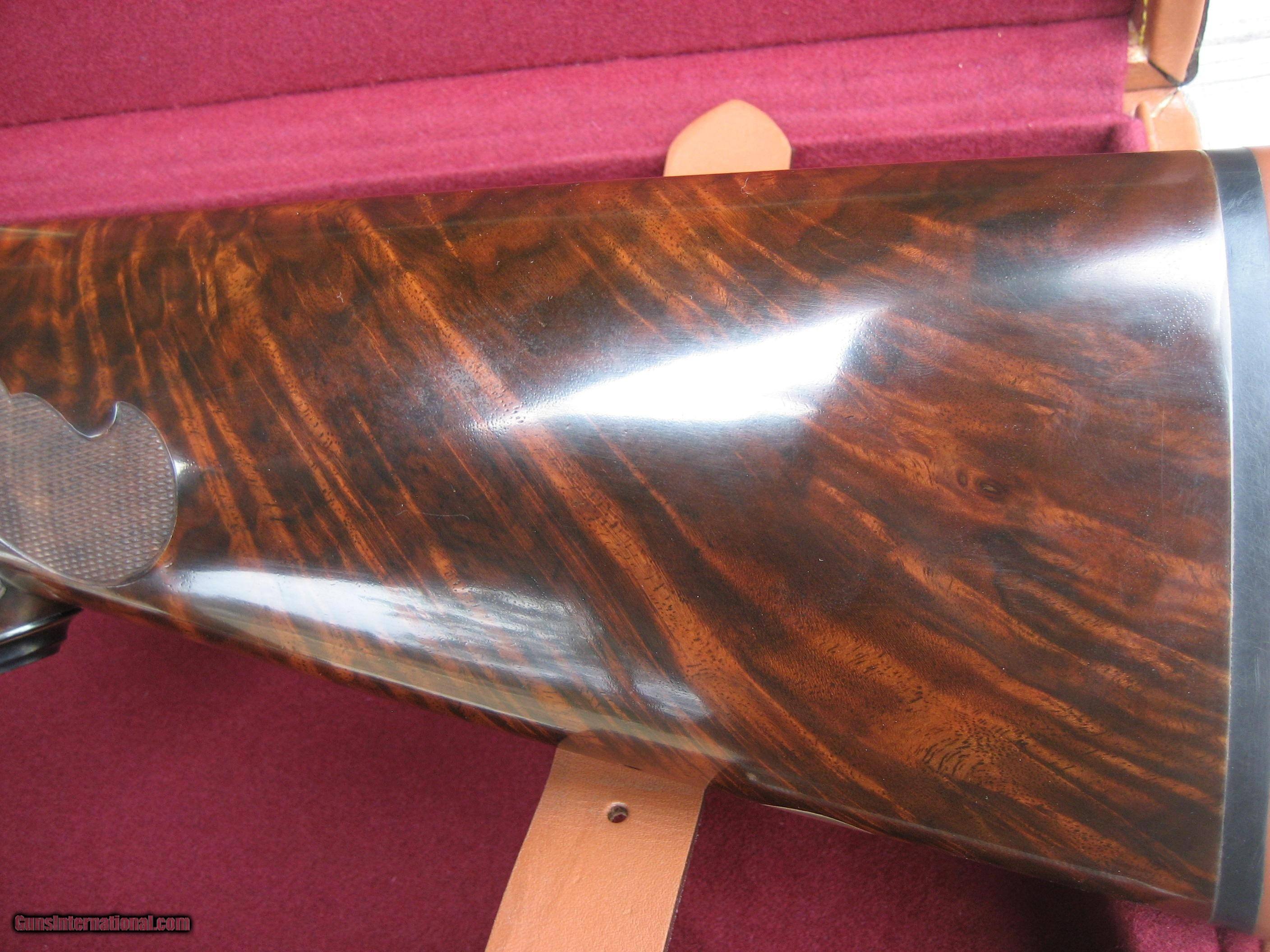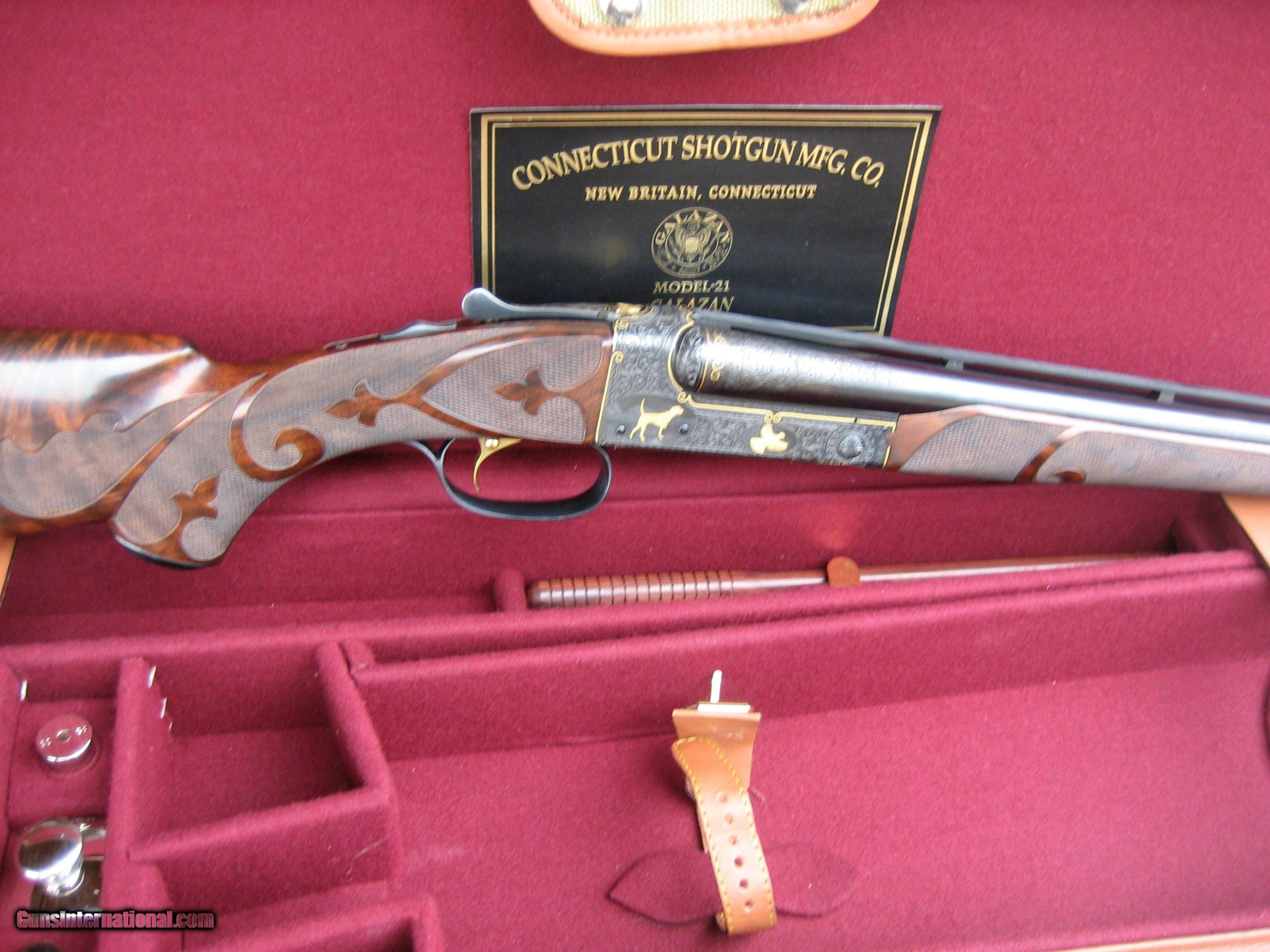 Description: Winchester Model 21 Grand American 20 Gauge CSMC. Excellent condition with engraving and gold inlays of various dogs I have hunted behind and birds hunted. Their is even a Timber Doodle in front of the release. Flur de Luis checkering WITH THE CHECKERING RUNNING TO THE fLUR DE LUIS NOT STIPPLED.. It comes in a custom case. Todays cost to make aproximatly $30,000.00 and one of the finest made by C.S.M.C. . Shipping $95.00 registered and insured. You can also call 719-687-1109 SOLD Shotgun Gauge: 20 Gauge Manufacturer: Winchester Model: 21 Grand American Barrel Length: 28 Inches Bore: Like new Chambers: 3 Inches Condition: Like new Metal Condition: Like new Wood Condition: Like new Bore Condition: Like new Action: Break Open Rib: Yes Choke Left: SK Choke Right: SK |