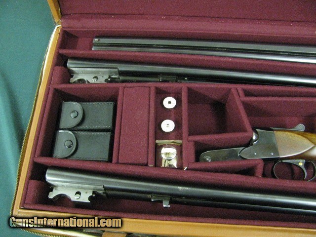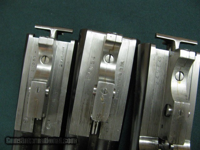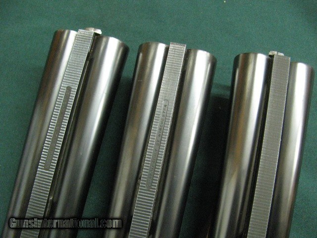 Description: 7118 Winchester 21 Custom SKEET 3 barrel 2 gauges set, 28inch barrels 20gauge WS1&WS2,26inch barrels 28 gauge sk/sk,26 inch barrels 20ga full/full 3 inch chambers, ALL SERIAL NUMBERS MATCH,ckeckered butt,AA+++FANCY WALNUT red bradley front bead, steel post mid bead, oil finishe pistol grip with cap, vent rib, CHECKERED BUTT,both 26 barrels say "Custom built by Winchester",ejectors,beavertail, single select trigger, Leather case snap caps oiler,from a Texas collector.--210 602 6360--1 1/2 x 2 1/2 x 14 SOLD Shotgun Gauge: 28 Gauge |