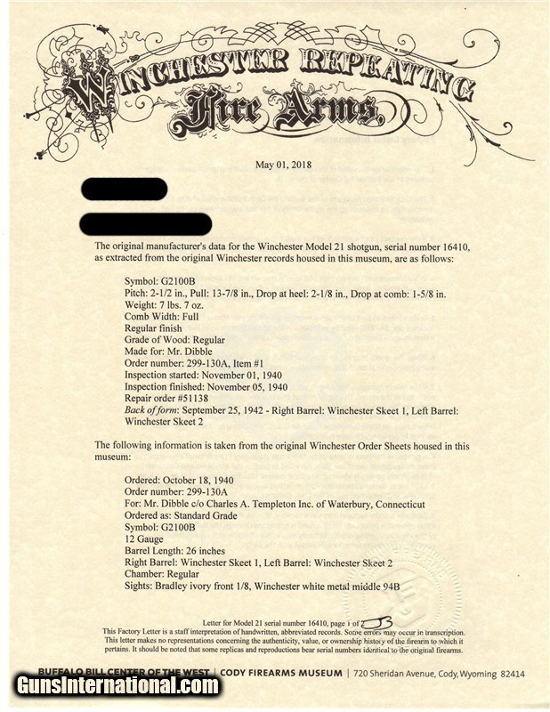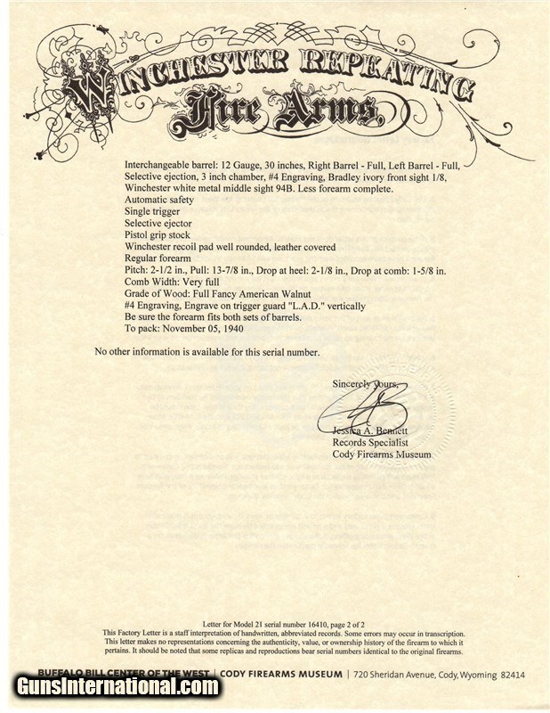 Win Mod 21 -12 ga FACTORY (Ulrich) #4 engraved, FACTORY 2 BARREL SET, 1 is 30" WITH 3" CHAMBERS, full fancy wood, completely original-1940 w/letter