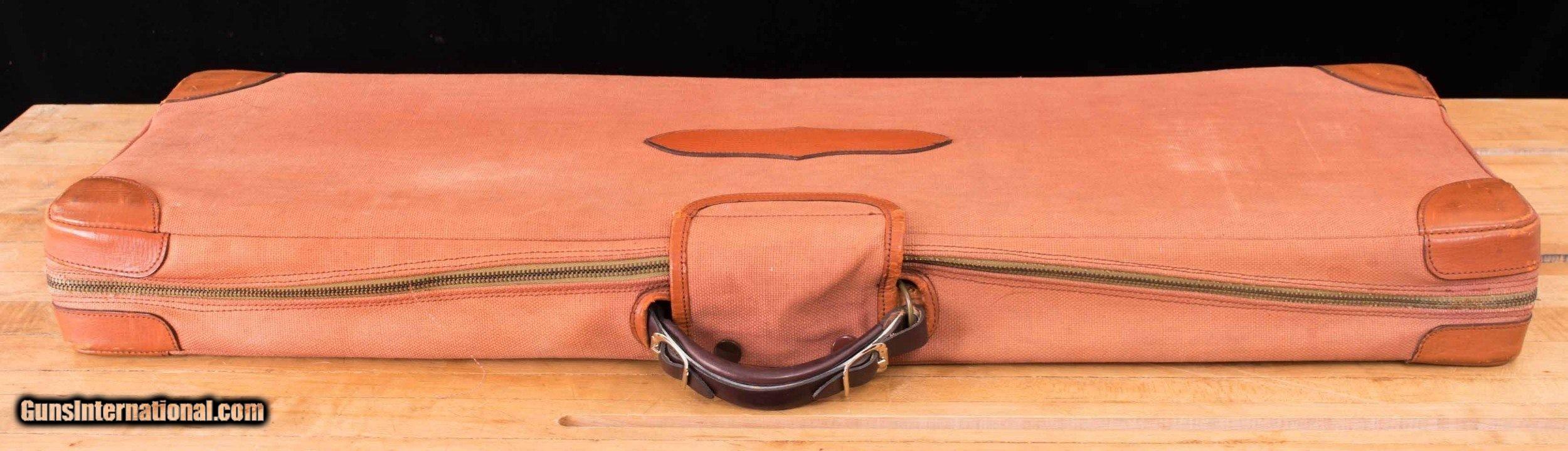 Description: SOLD- PLEASE SEE MY OTHER LISTINGS! If you know about Mod 21s you know this is a rare one, a holy grail. This pre-war sn 16410 delivered in 1940 is fully documented by the Cody Firearms Museum factory letter and Winchester order sheet. Engraved by George Ulrich in the very desirable #4 pattern (he was the only master engraver doing the high-end guns in 1940). It was ordered as a rare FACTORY TWO BARREL SET, a 26" in WS1 and WS 2 (skeet) chokes and the other a very hard to find and desirable 30" F/F with factory THREE INCH CHAMBERS. Both are serial numbered to the gun (most two barrel sets you will see are a "composed" set meaning the second barrel was ordered later, not with the gun originally). Being the strongest side by side ever built, the 21 will handle any 3 inch load you care to use. The gun is completely ORIGINAL in unadulterated factory condition. All specs match the factory letter, even the beads. The gun has been used in the field but has been well cared for. There is carry wear on the blue of the receiver and blue wear on the top lever (80% blue is on action) but the engraving is still sharp, clear and deep as Ulrich's work is. Barrel blue is 98% on 30 inch set, 95% on 26 inch set. The mechanics are excellent and it was stripped and cleaned, inspected and lubricated by VFI in 2019 and only shot once since then. Bore are shiny and bright, ribs are tight, no rust or pits anywhere. Screws are perfect and action tight and barrels tight on face. The full fancy feathercrotch wood is beautiful, no cracks or repairs anywhere. Checkering still strong. The original factory Brady case from England with cover, which Winchester would supply as an option for factory two barrel sets, is in excellent shape. This is a pre- Pearl Harbor time capsule and a testament to John Olin and all the craftsmen who made the finest, strongest shotgun that America ever produced. You wont see this package in completely original shape often (George Ulrich only engraved about 200 guns in 16 years at Winchester, mostly #4 and higher) I am pricing this gun very fairly. Barrels 26" and 30" chokes: WS1/WS2 (-.015/ .012); F/F (.032/.035) bores: all perfect bore diam: .729 (both); .729/.730 walls: .038 (both); .031/.034 % blue: 26"- 95% factory%; 30"-98% factory chambers: 2 3/4" and 3" ribs tight, factory ivory front beads Action Tight on both barrels, right of center Ejectors timed and strong screws: perfect and engraved engraving: #4 factory by George Ulrich, sharp and strong single selctive trigger crisp blue: 80% factory Stock pistol grip, splinter factory forearm Winchester leather covered pad as ordered checkering: factory perfect LOP 14" DAC 1 1/2" DAH 2 1/8" Cast 3/16" off SOLD Curio/Relic: Yes Shotgun Gauge: 12 Gauge Manufacturer: Winchester Model: 21 Serial Number: 16410 Chambers: 2 3/4 and factory 3 inch Ejectors: yes Bore Condition: Both Excellent Triggers: Single selective Stock: full fancy feathercrotch Fore End: factory game style regular Butt Pad: Win factory leather covered Manufacture Date: 1940 Chokes: F/F on 30”, Ws1 and Ws2 on 26” Engraving: # 4 factory (Ulrich) Case: factory Brady leather two barrel set case with canvas cover |