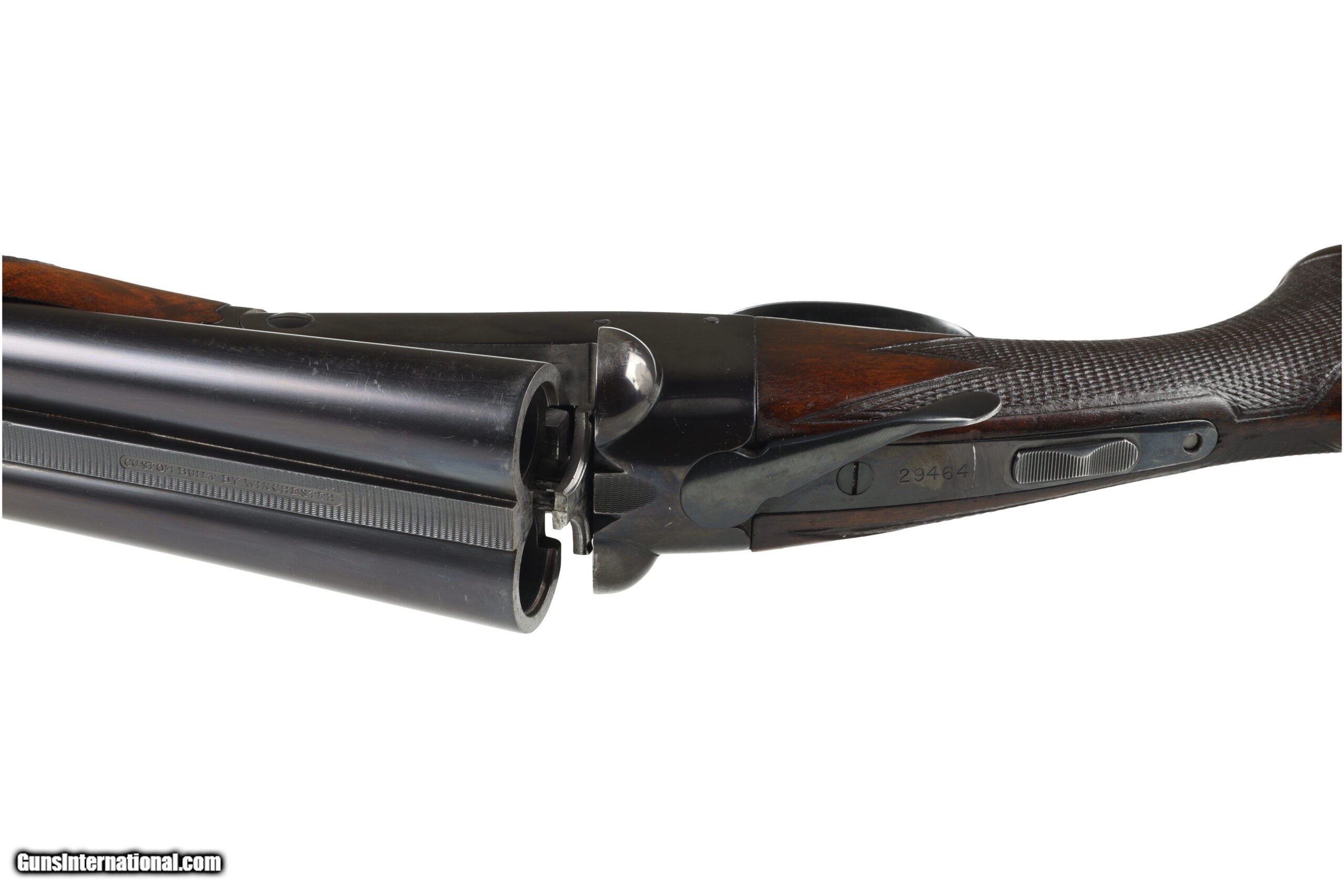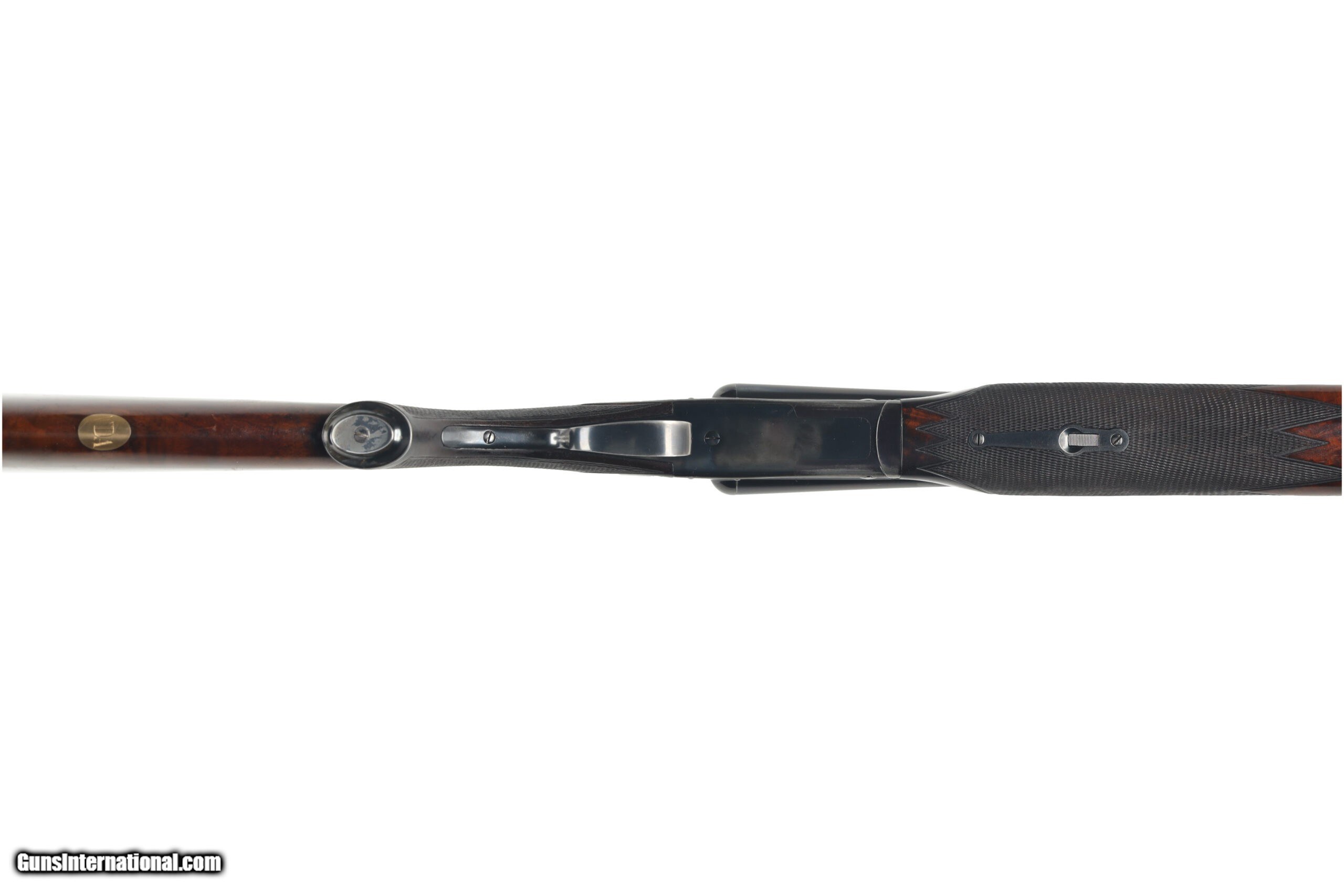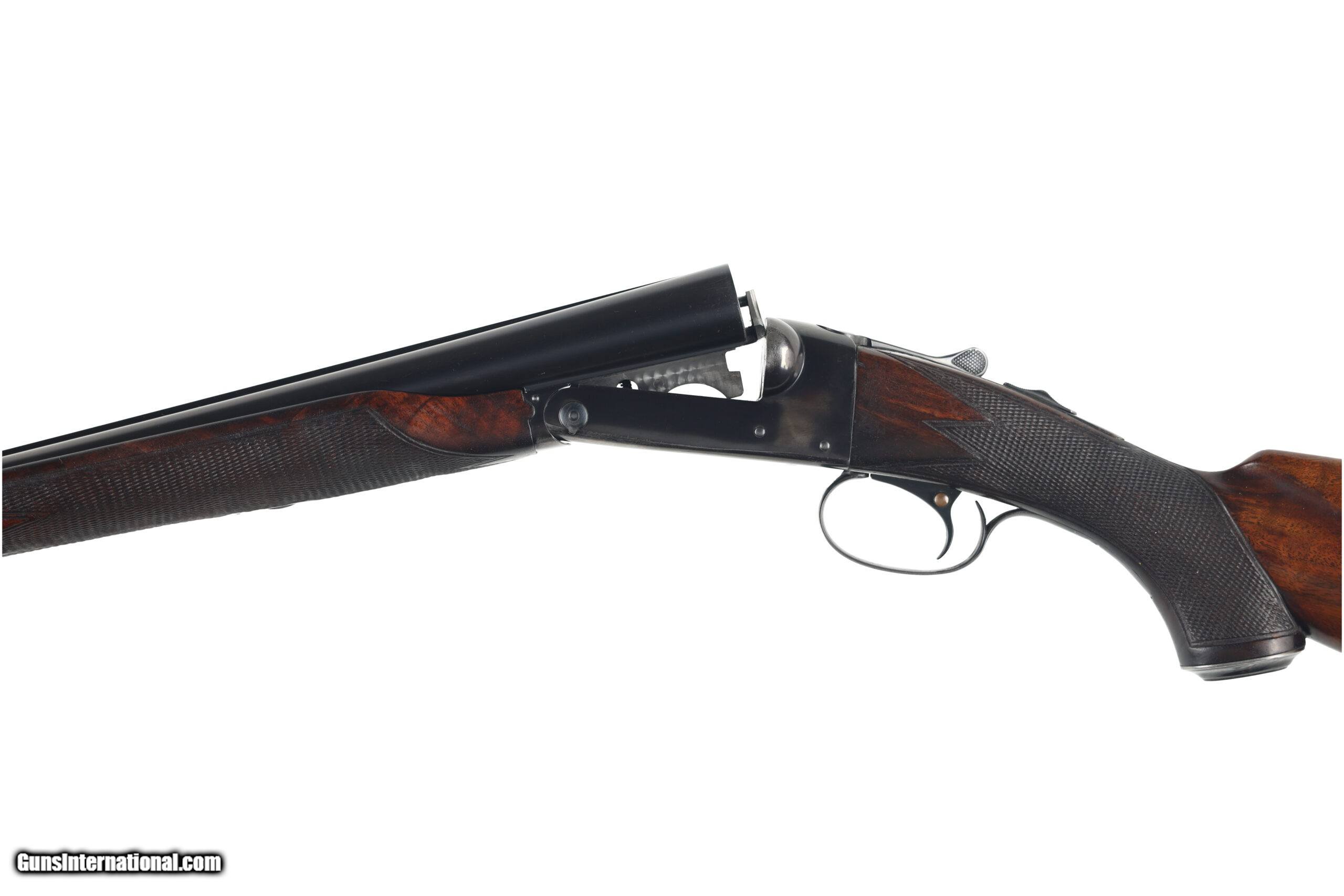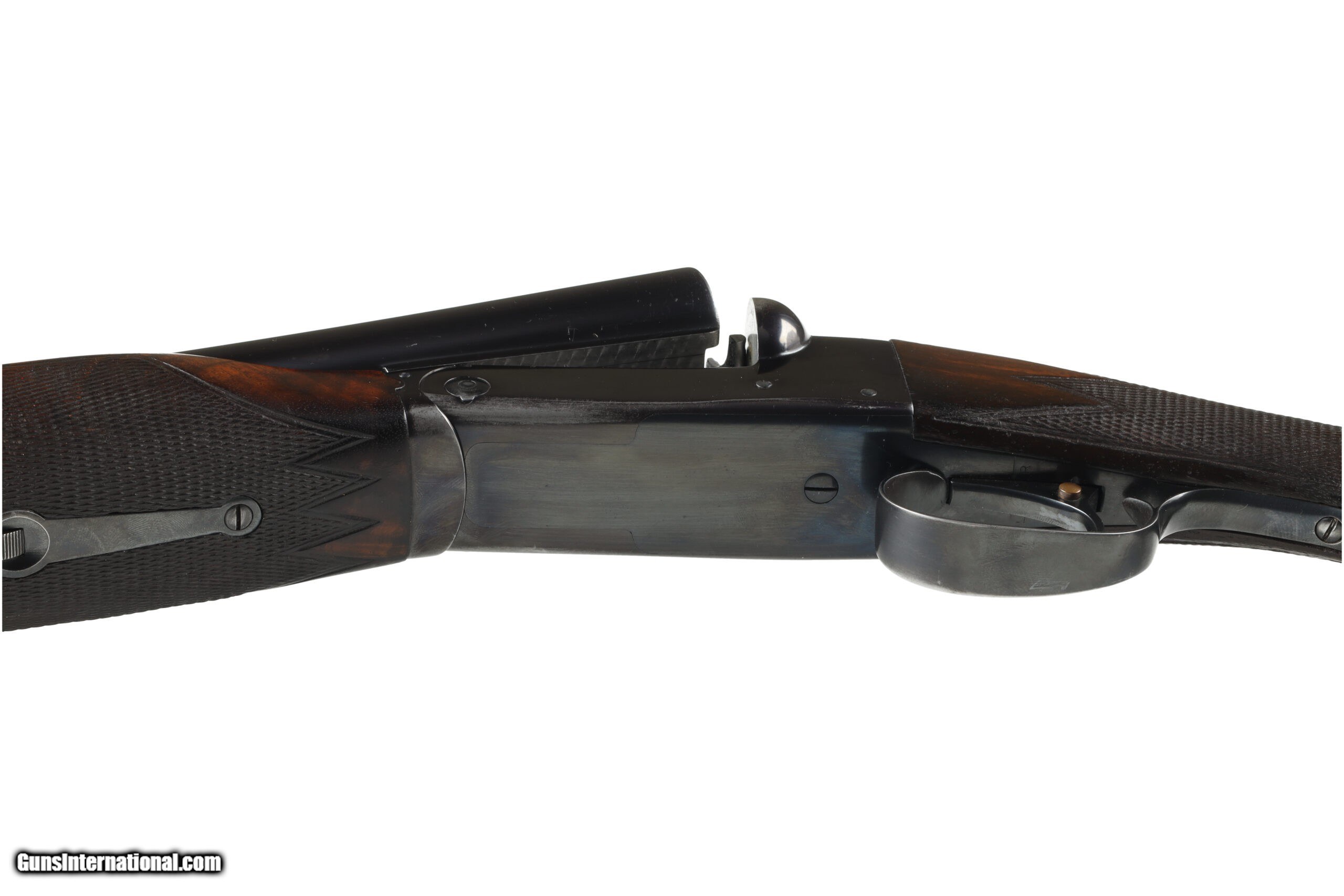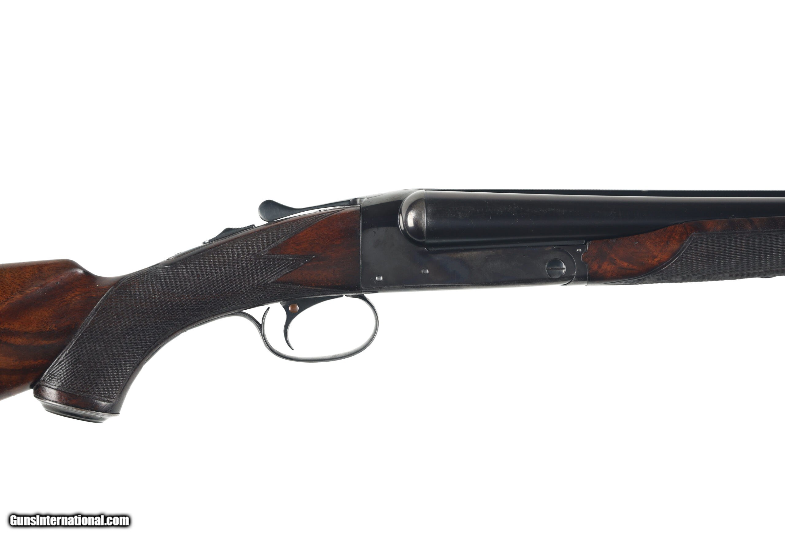 Description: The Winchester Model 21 is perhaps one of the finest side by side shotguns ever designed. This example is of a later generation, which is very difficult to determine the age of, likely being built by the Winchester custom shop. It is fitted with 30" barrels which are choked quite tightly, as well as the addition of a beavertail forend and relatively high comb stock, leads to the belief that this gun was intended for trap competition. Nevertheless, this shotgun is in good to very good overall condition, with the metal parts retaining much of the original finish and the stocks looking to have been refinished or at least re oiled. Manufactured in: USA Hand: Right Hand Action Finish: Blue Metal Finish: Original Barrel Length: 30 Inches Barrel Condition: Very Good Stock Finish: Refinished Stock Condition: Good Type of Butt: Leather Covered Pad Pad Thickness: 1 Inch Grip: Pistol Forend: Checkered Beavertail Cast Amount: 1/8" SOLD Manufacturer: Winchester Model: 21 Chambers: 2 3/4 Ejectors: Yes Condition: Preowned Metal Condition: Very Good Action: Side by Side Triggers: Single Selective Gauge Info: 12 Gauge Stock Comb: 1 3/8 Stock Heel: 2 1/8 Stock Cast: Off Fore End: Checkered Beavertail Butt Pad: 1 Inch LOP: 14 7/8 Rib: Flat Matte Finish: Original Weight: 7.8 lbs Chokes: IM/F Case: Leather Motor Case |