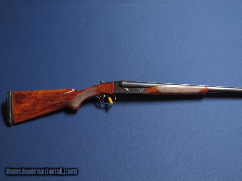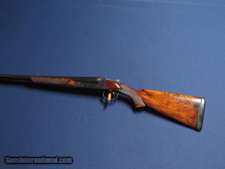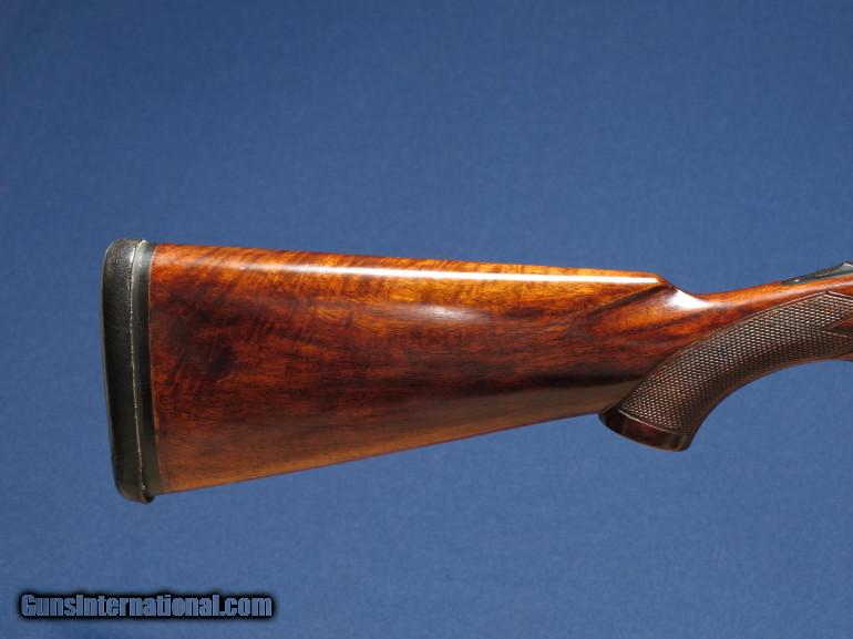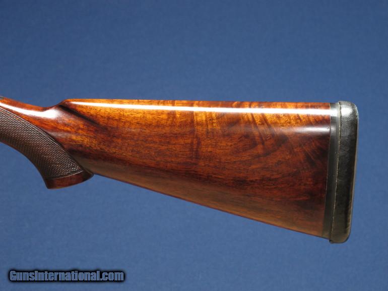 Description: Winchester 21 12ga. 28in barrels. Briley screw chokes (6). Single selective trigger. Automatic ejectors. Beavertail forearm. 14 5/8 LOP leather covered pad. 97%. Excellent bores. SOLD |