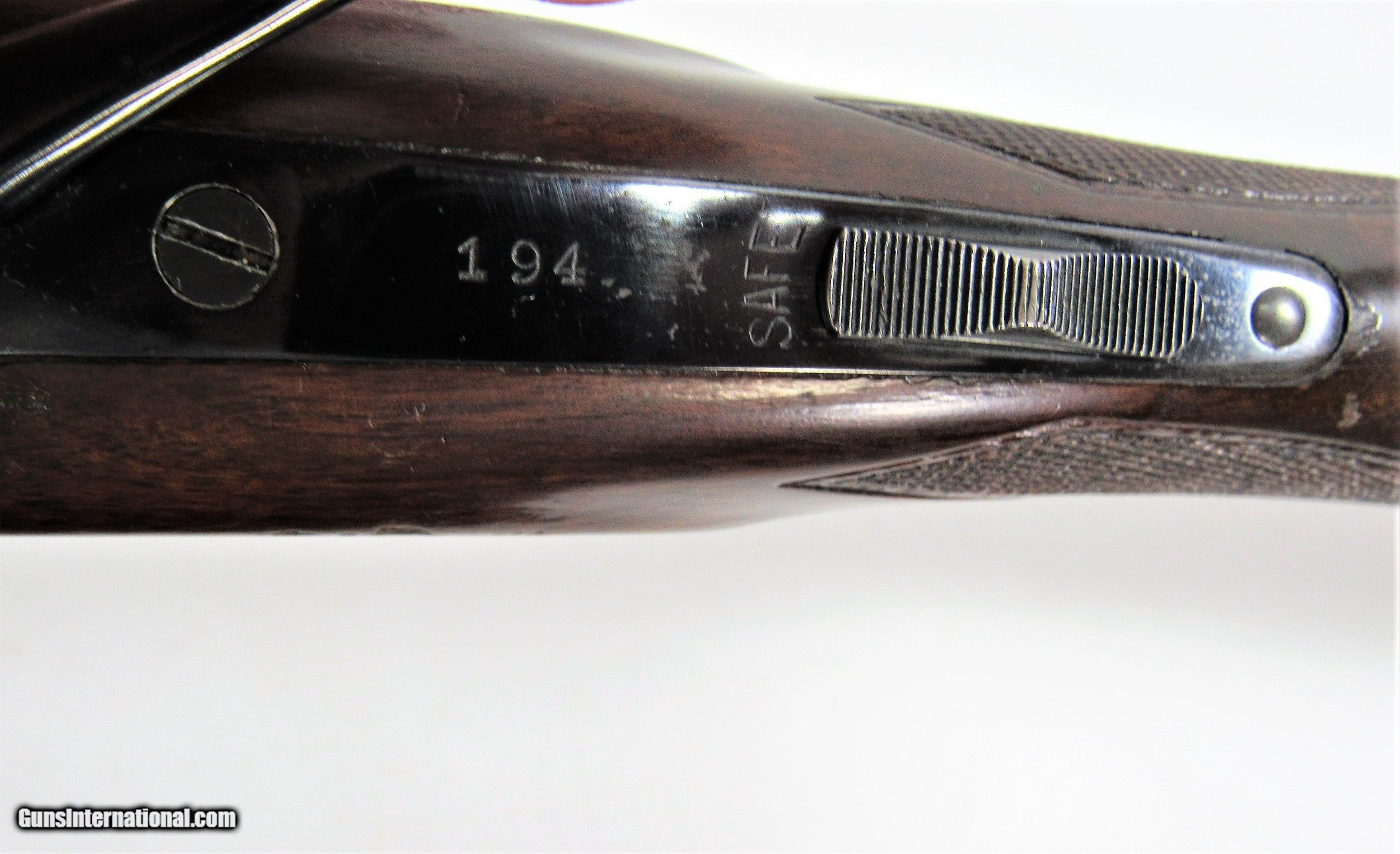 Description: WINCHESTER 21 12GA 30” IC/IM (OPENED FROM F/M) PISTOL GRIP, SPLINTER, DOUBLE TRIGGERS, EXTRACTOR, SERIAL NUMBER “194”, 95% REFINISHED BARRELS, 85% RECEIVER, NICE WOOD AND BORES, ETJ ENGRAVED ON THE TRIGGER GUARD, NICE LOW NUMBER SOLD Curio/Relic: Yes Shotgun Gauge: 12 Gauge |