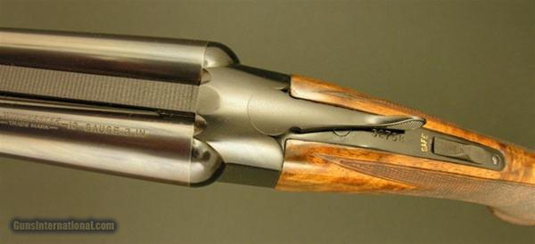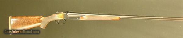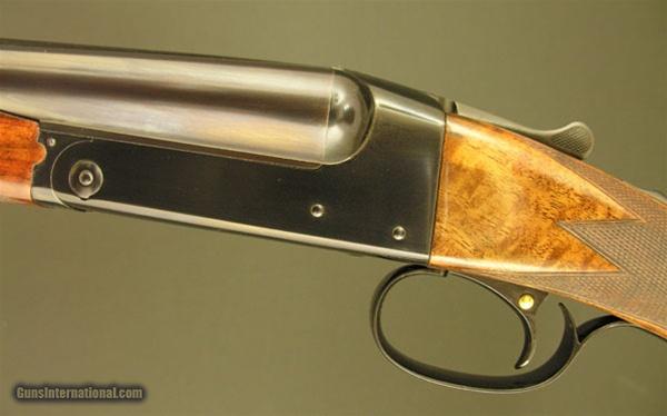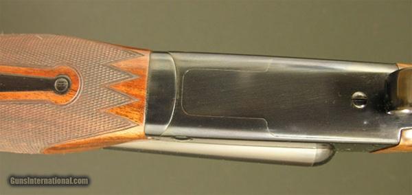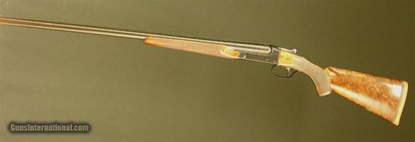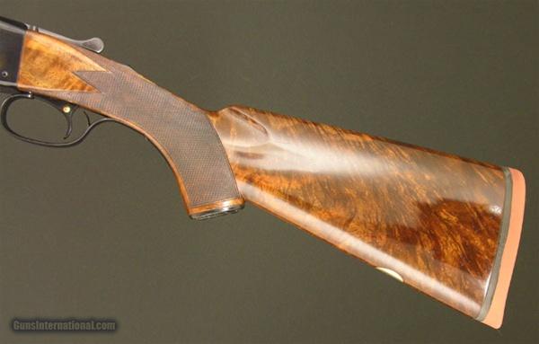Description: Winchester 21 12ga, 32” F/F, early flat side custom grade gun in an extremely rare configuration, 3” magnum gun, factory vent rib, 3 point custom checkering, beavertail forend with black ebony inset, capped pistol grip, gold oval, Winchester pad, magnificent full fancy feathercrotch black walnut, single selective trigger, auto ejectors, jeweled barrel flats, receiver and forend outstanding transitional gun, a wonderful item highly sought after, the very best. SOLD |