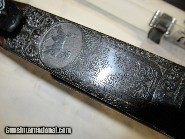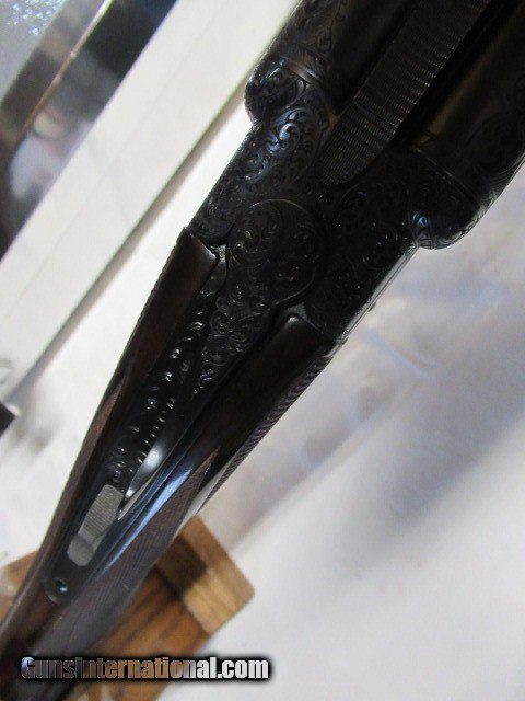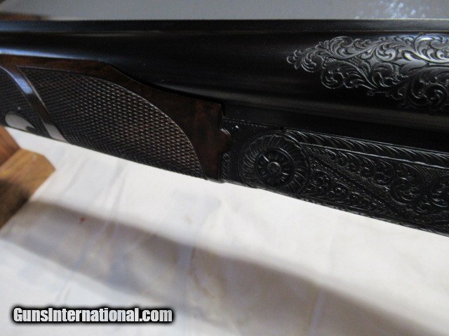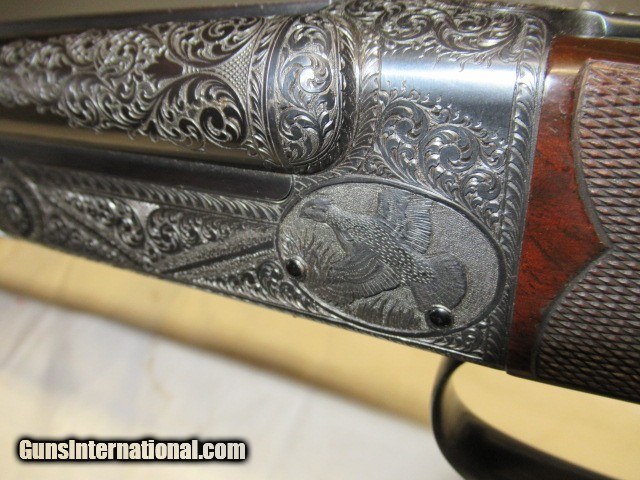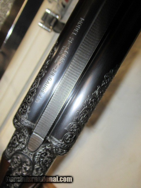 Description: Bought this from the original owner who said he never fired it, 28", Imp Cyl & Mod, Jeweled, Scalloped Receiver, Fancy Pistol Grip Walnut stock with engraved cap, Beautiful A Carved Checkering with thin black pad, Beautifully engraved receiver, Gold Single Trigger, Ejectors, Dimensions are 14 3/8" X 1 1/4" X 2", Weight is 6lbs 15oz, Beautiful Shotgun comes in nice metal case, Buyer pays 100.00 shipping Pa residents add 6% sales tax SOLD |
