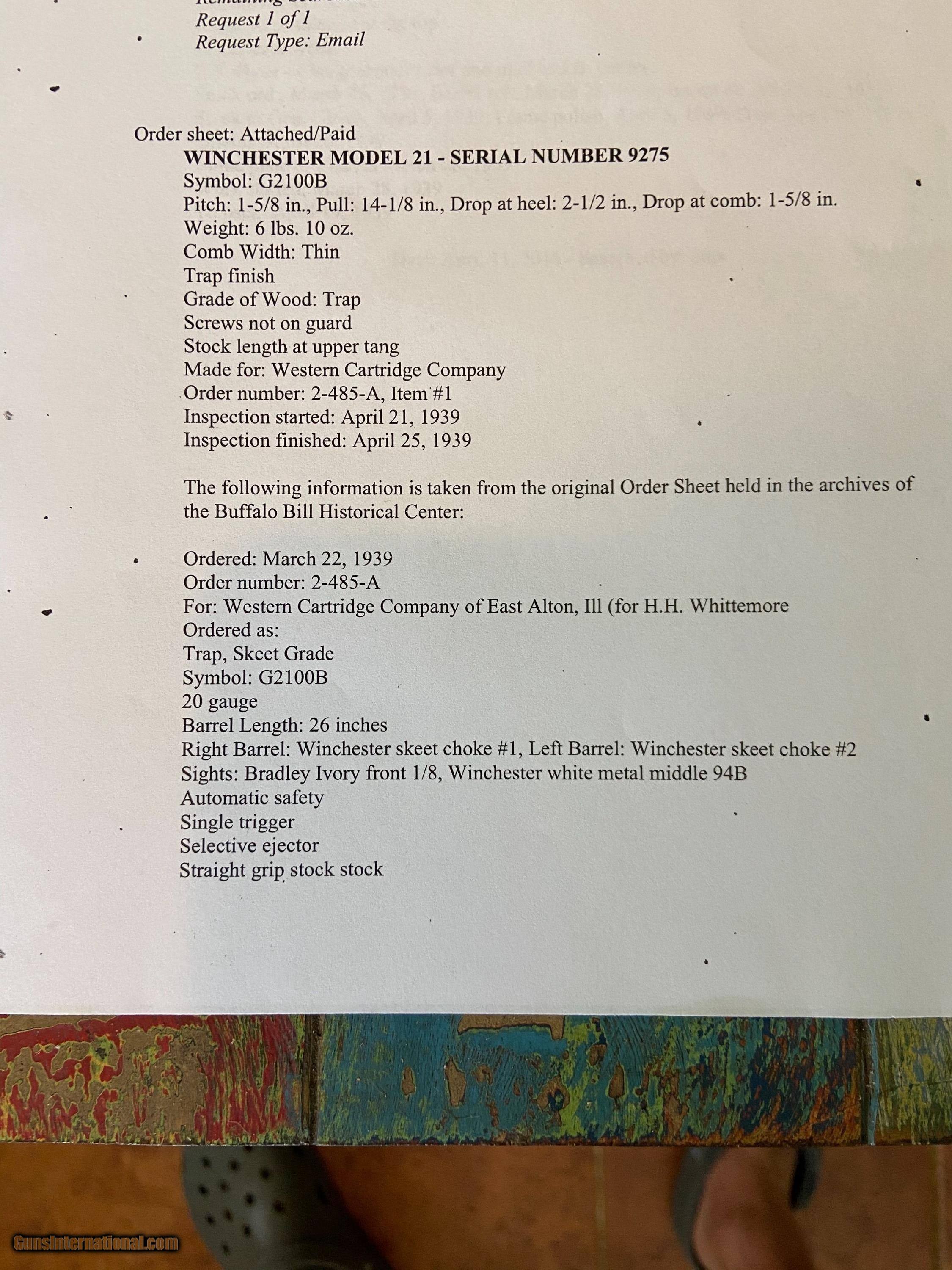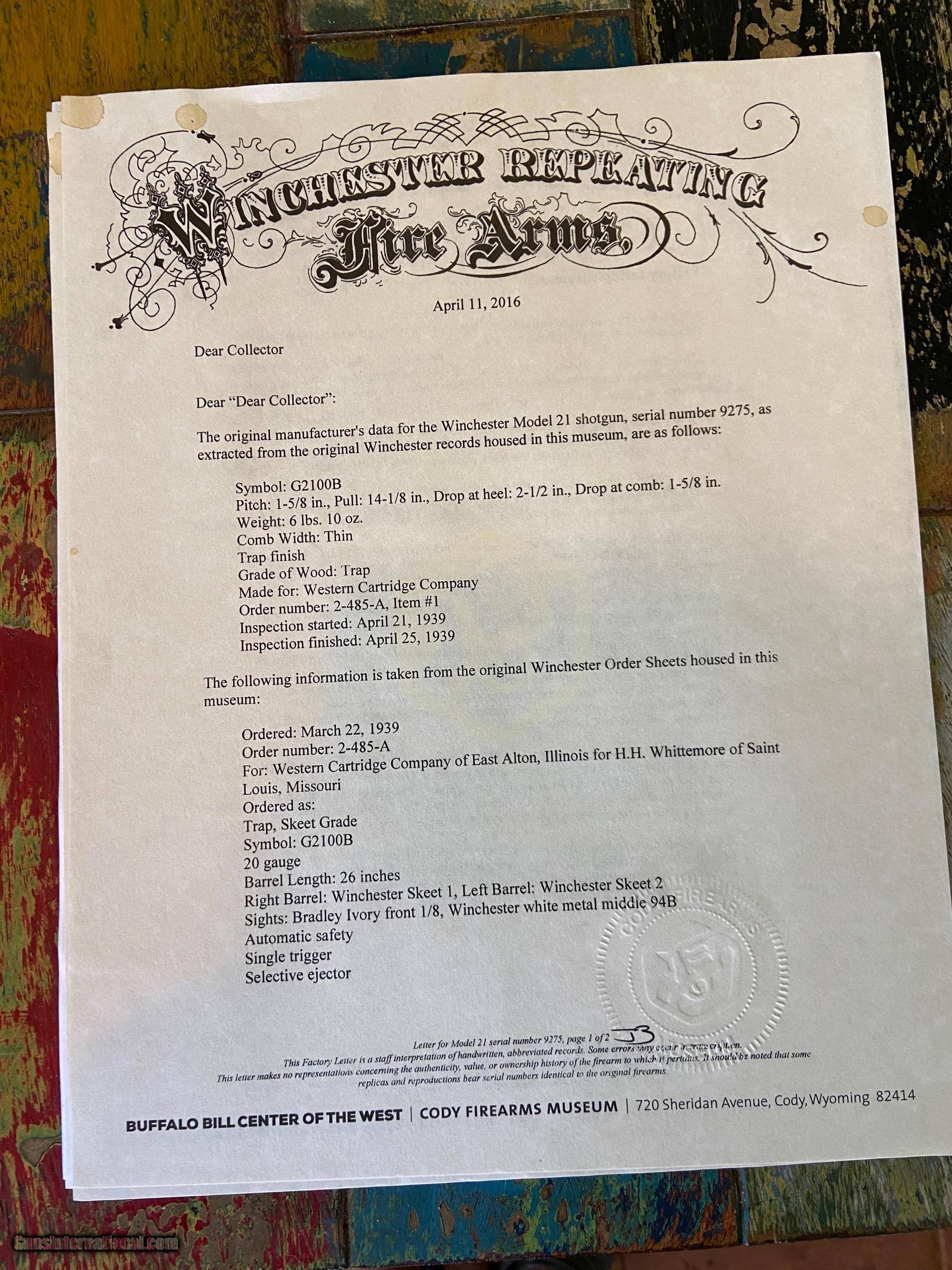 Winchester 21 Pre War Special Order For Head of Western Cartridge