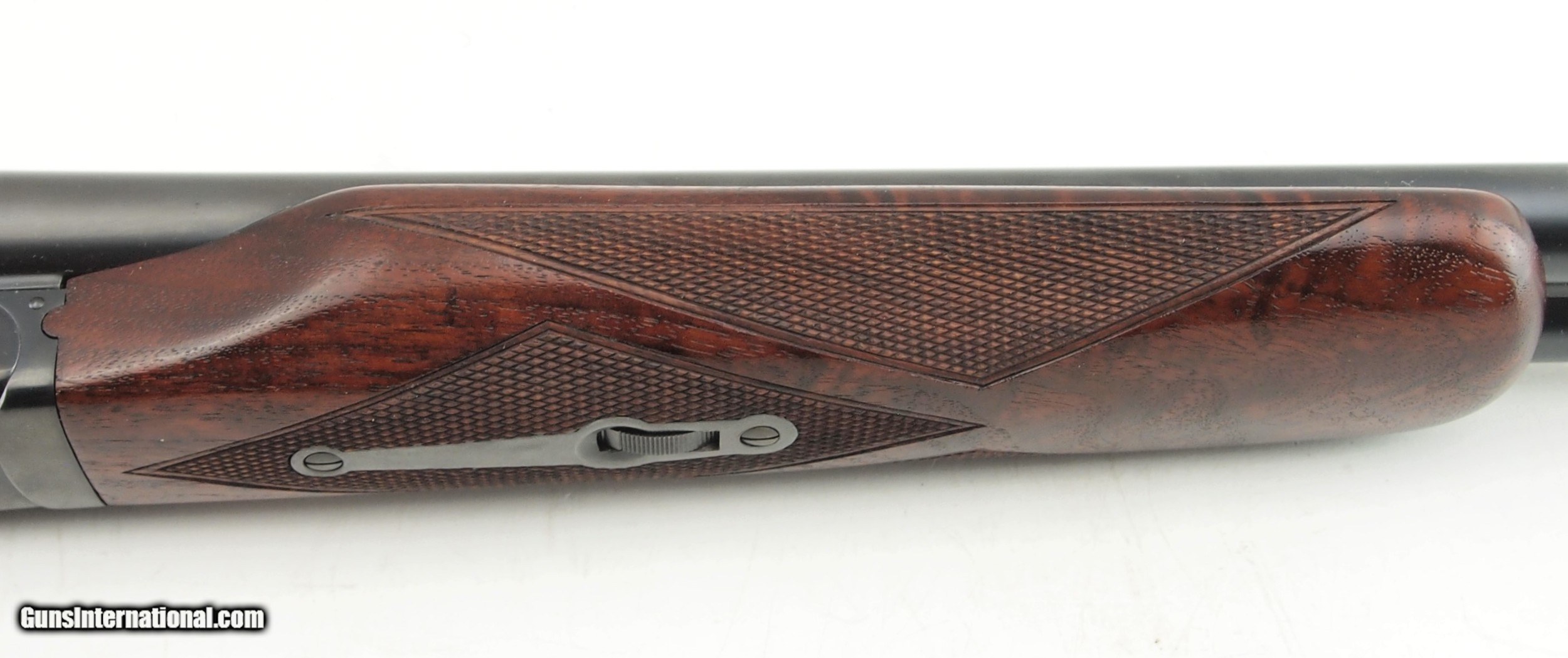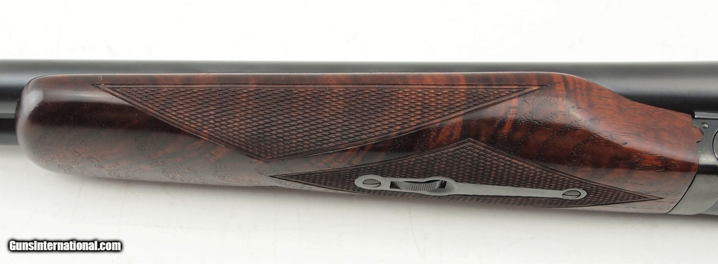 Description: Beautiful Winchester 21 Skeet 12 GA, 28" bbls, 2 3/4" chambers, mirror bores, right bbl is MOD choke (opened from Full), left bbl is IMPCYL choked, right is .744-.724=.020, left is .742-.732=.010, white front and mid beads, single selective trigger, auto safety, auto ejectors, Beavertail forend, straight grip stock, stock shortened and 1 1/2" Silvers Pad added, stock and forend finish has been restored. LOP - 14 1/4", DAC - 1 1/2", DAH -- 2" Metal Finish - 98% with mirror bores Wood Finish - 100% - Restored Serial# 16868 Circa 1940 Add 3% for Credit Card Shipping $40.00 SOLD |