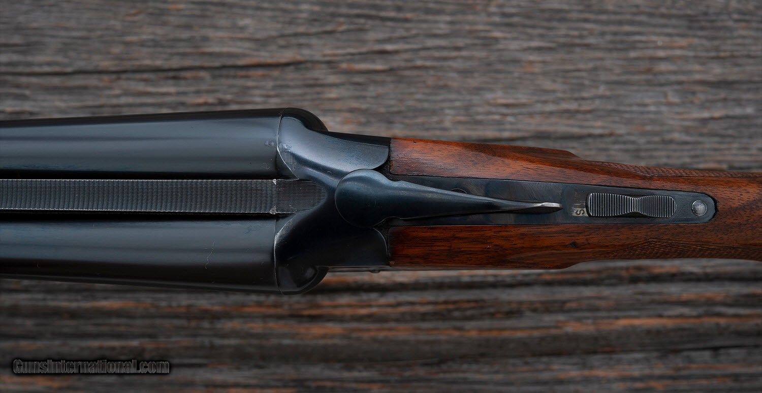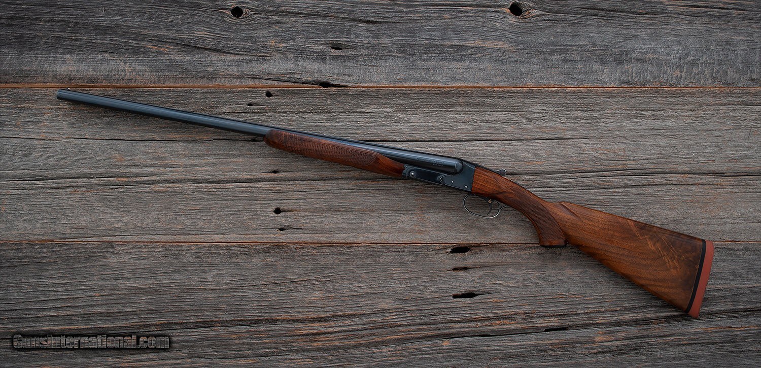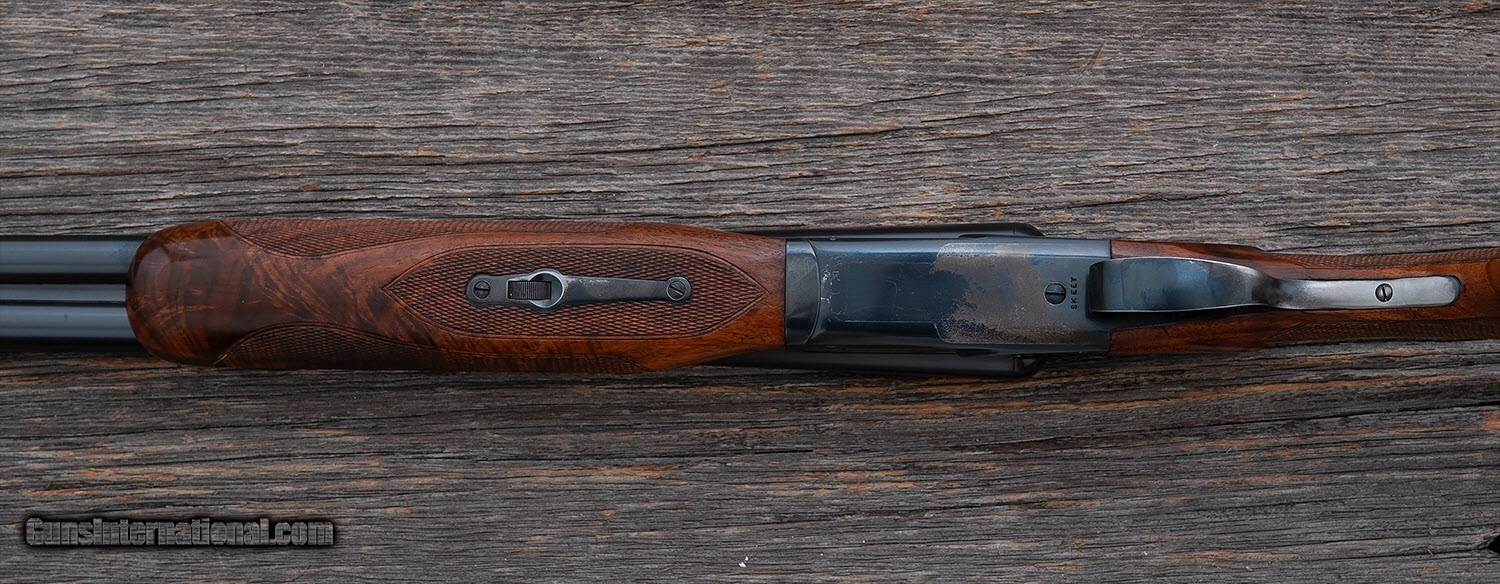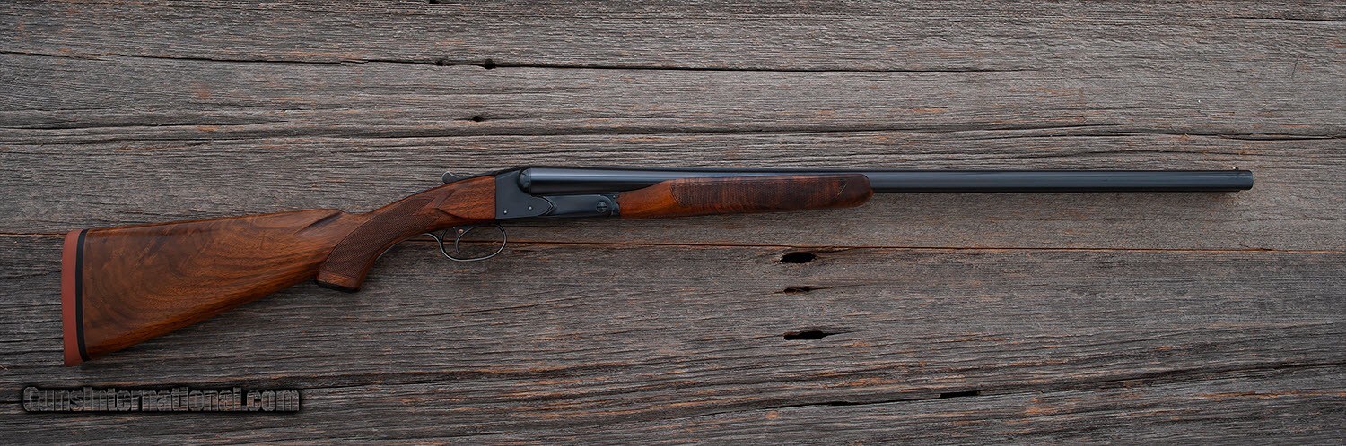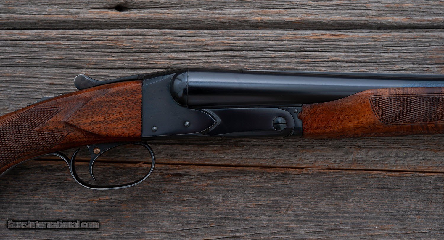 Description: Winchester - 21 Skeet Grade - 12 ga - Item Number: WIN24668 Shotgun type: SxS Action: Boxlock Ejectors: Yes Trigger: Single Grip: Pistol Grip Forend: Checkered Lop: 14 3/4 " Pad thickness: 0.75 " Type of butt: Factory Drop comb: 1 5/8 " Drop heel: 2 1/2 " Cast amount: 1/8 " Cast: OFF Weight: 7 lbs, 10 oz Manufactured in: USA Finish: Blue Overall condition: Very Good Stock condition: Very Good Metal condition: Very Good Stock: Original finish Metal: Original finish Type of Case: none Extra barrels: 0 Barrel info: Gauge: 12 ga Chamber: 2 3/4 " Length: 28 " Chokes: Skeet 1 and 2 Rib type: Concave Comments : Gun has some blue loss on bottom of receiver and a small crack in the forend. SG-111 SOLD |