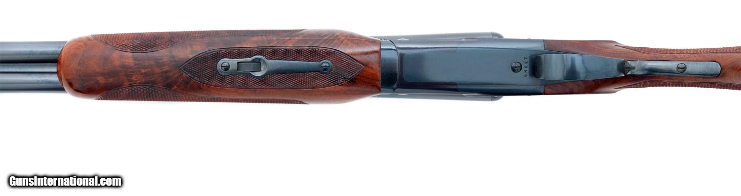 Description: Winchester - 21 Skeet Grade - 20 ga - Item Number: WIN8915 Shotgun type: SxS Action: Boxlock Ejectors: Yes Trigger: Single Grip: Pistol Grip Forend: Checkered Lop: 14 " Pad thickness: " Type of butt: Checkered Wood Drop comb: 1 1/2 " Drop heel: 2 1/4 " Cast amount: 1/8 " Cast: Off Weight: 7 lbs, oz Manufactured in: USA Manufacture Year: Finish: Blue Overall condition: As New Stock condition: As New Metal condition: As New Stock: Original finish Metal: Original finish Type of Case: Non-Original Plastic Case Extra barrels: 0 Barrel info: Gauge: 20 ga Chamber: 2 3/4 " Length: 28 " Chokes: Skeet 1 and 2 Rib type: Ventilated Comments : Gun is in as new condition, unfired. WS 1 & 2 SG-23 SOLD |