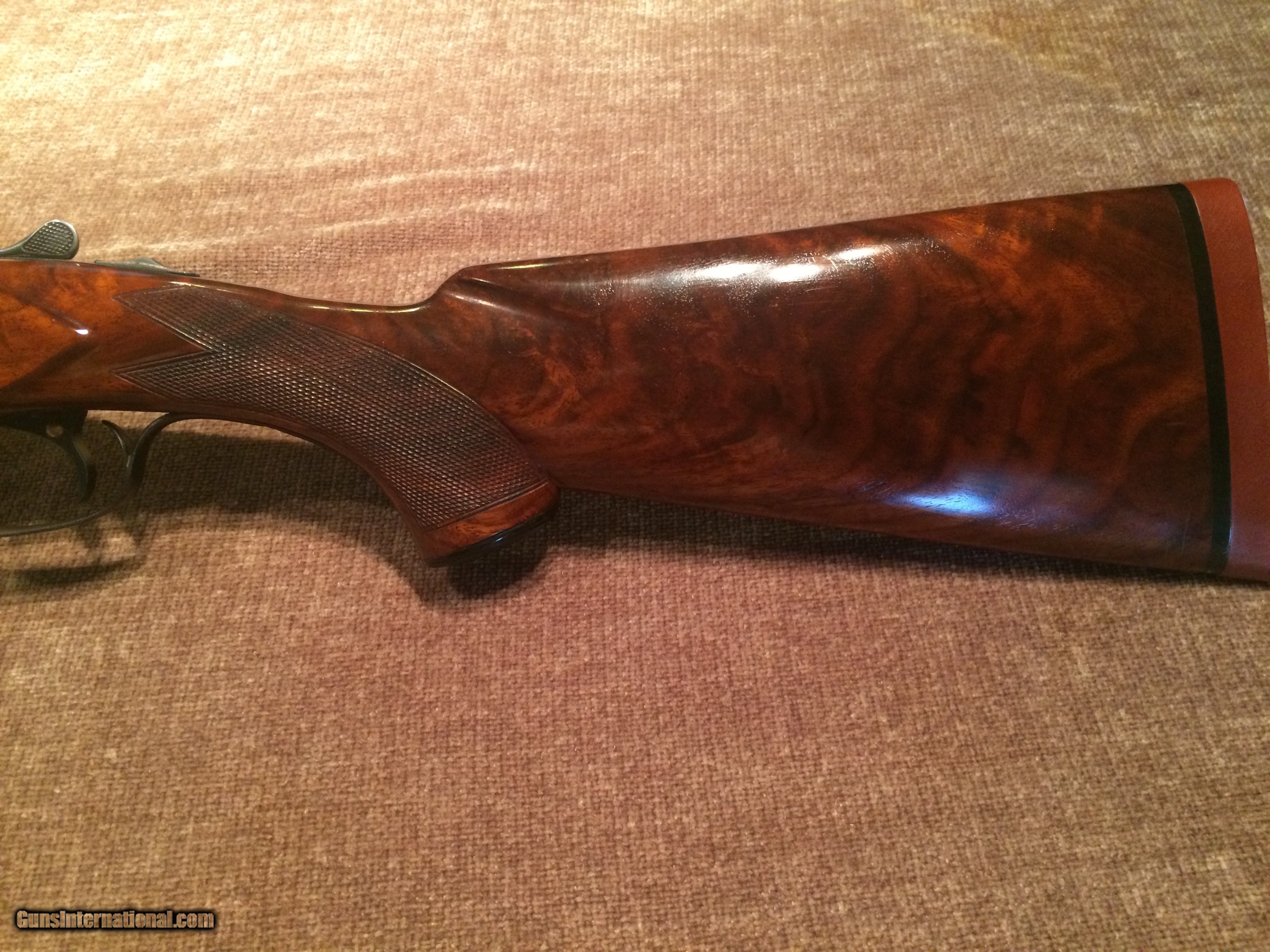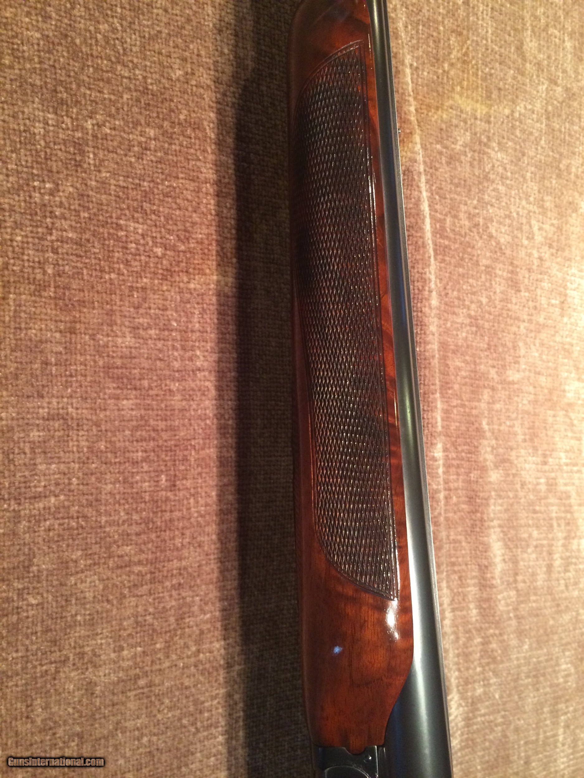 Description: Winchester M-21 Skeet Grade, 16ga w/28" IC/M, solid rib, SST, BTFE & P/G stock to Winchester Pad. Gun shows little use, w/perfect bores, excellent wood & only very minor blue wear on bottom of receiver. #232XX, cir. 1948, LOP - 13 7/8". $6900.00 PHONE ONLY PLEASE - JOHN 443-952-7165 FREE SHIPPING. SOLD |