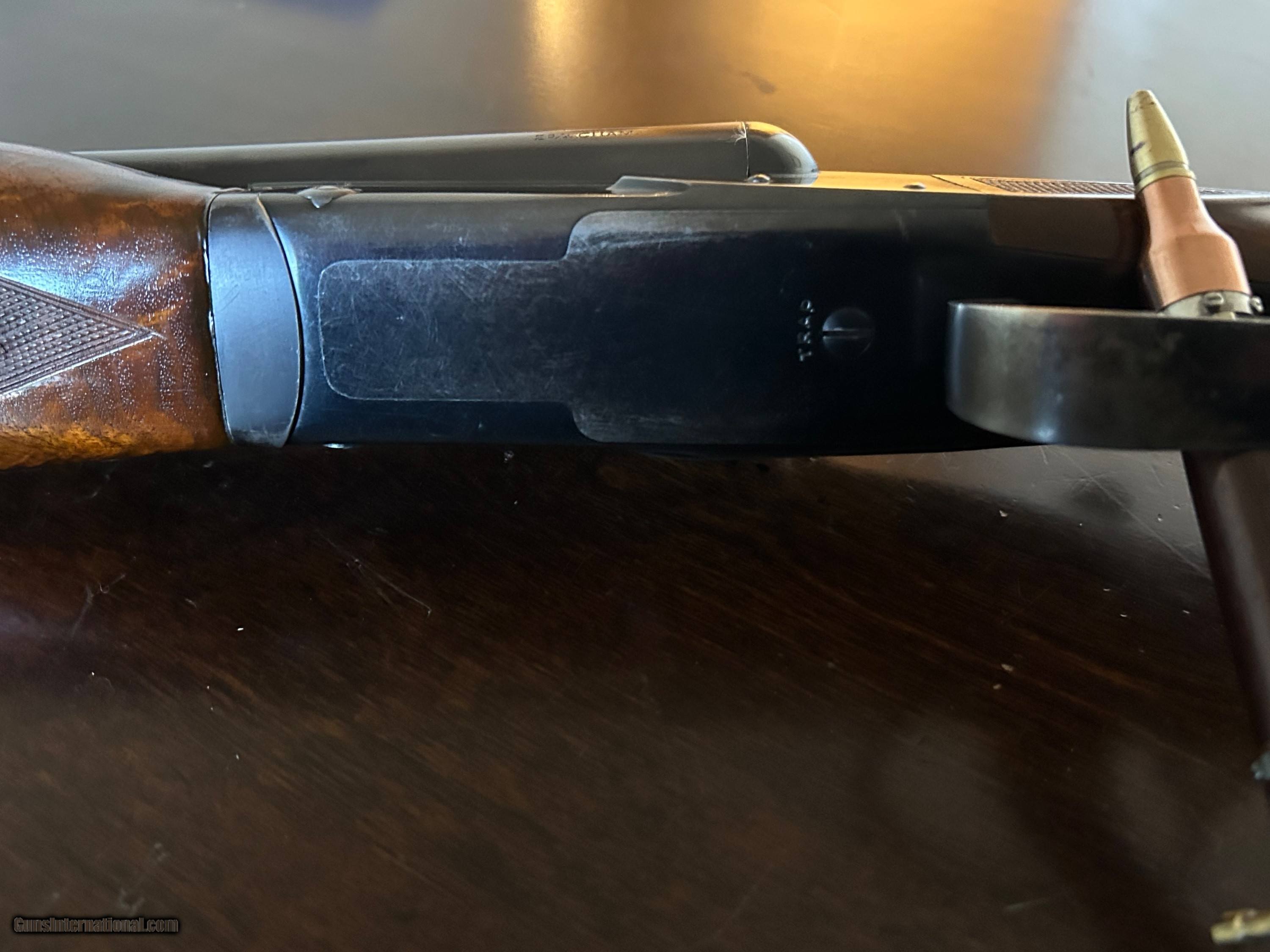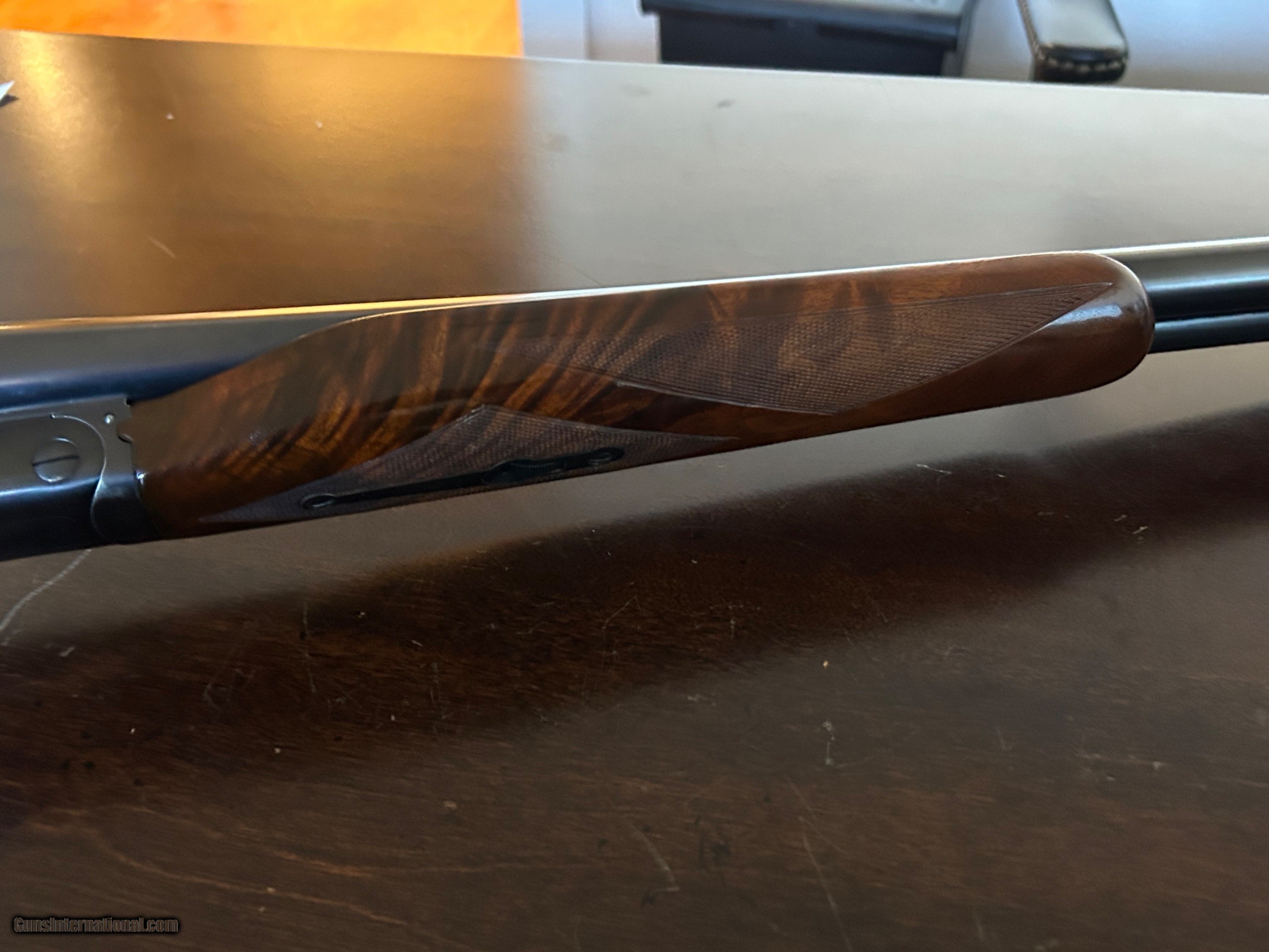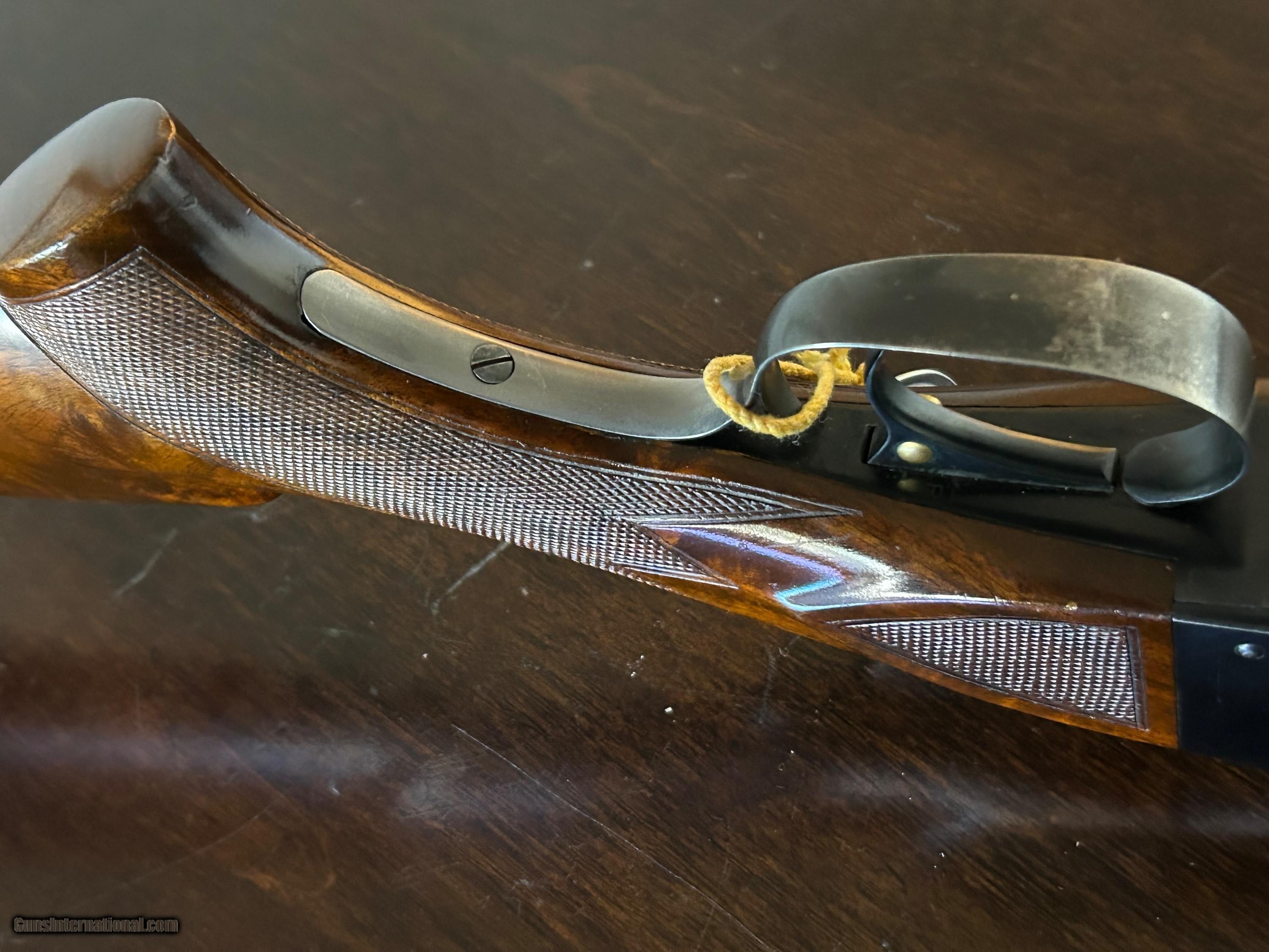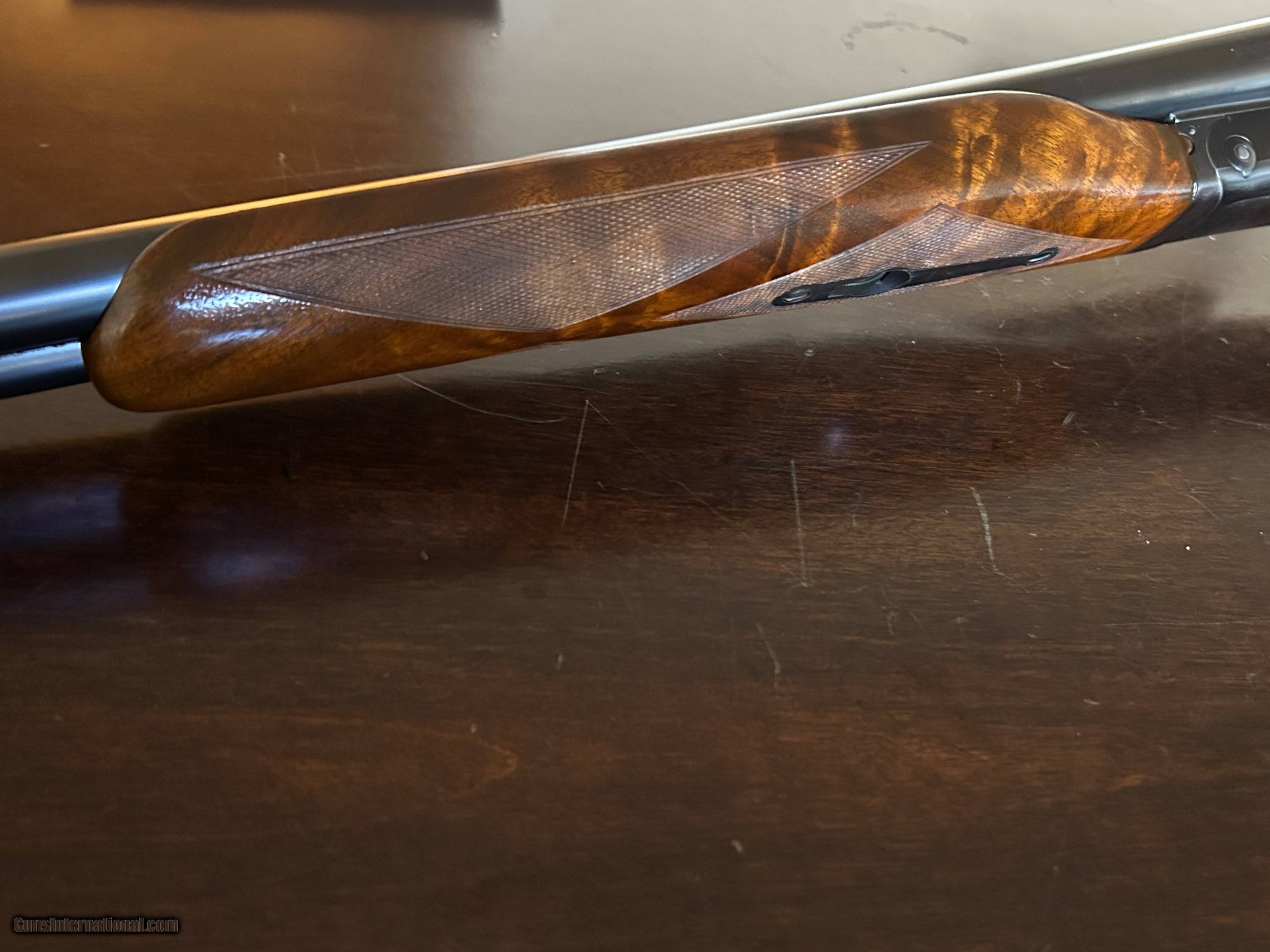 Description: Overall a nice Model 21 Trap Grade 12ga Solid Rib 28 inch Mod/Full 2 3/4 in very pretty wood normal wear Locks up tight. Tight on face Shotgun Gauge: 12 Gauge Manufacturer: Winchester Model: 21 Serial Number: 3221 Barrel Length: 28 Chambers: 2 3/4 Ejectors: yes Condition: Good Metal Condition: Good Wood Condition: good- handling marks Bore Condition: Good Action: side by side Triggers: single Stock: PG LOP: 14 1/2 Rib: solid Price: $3,995.00 Contact Seller |