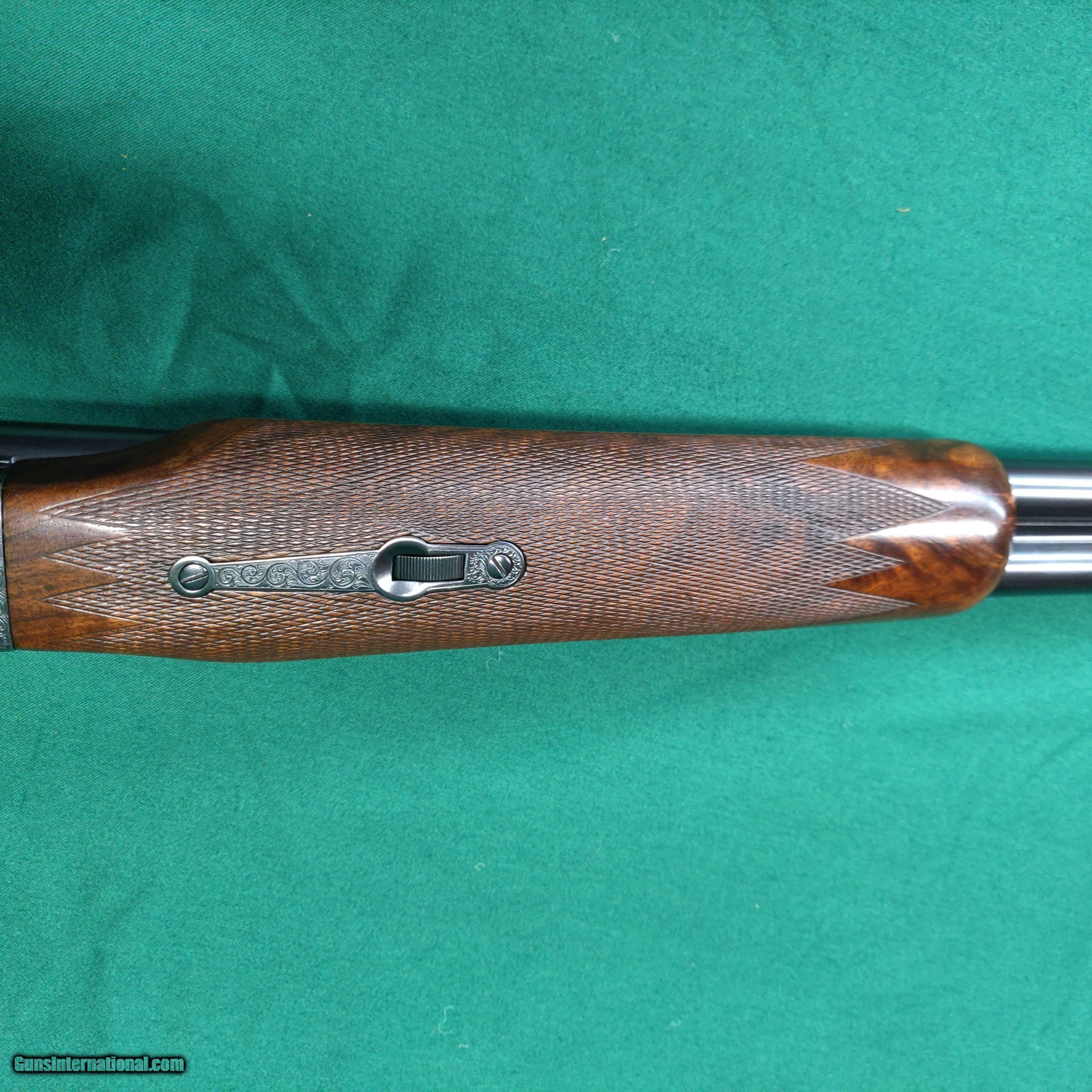 Description: Winchester model 21, Tournament Skeet, 12 gauge, custom engraved by Mike Duber with gold inlay and wire work. The barrels are 26 inches long and choked WS-1, WS-2. Single trigger, ejectors, two sight beads, beaver tail forend, straight grip, Winchester red pad. LOP is 14 inches. This shotgun is in excellent condition. Please examine the photos as to condition. No international or California sales. Thanks for your consideration. SOLD Shotgun Gauge: 12 Gauge Manufacturer: Winchester Model: 21 Tournament Skeet Serial Number: 2557 Barrel Length: 26 Bore: mint Chambers: 2.75" Ejectors: yes Condition: excellent Chokes: WS-1 and WS-2 |